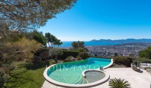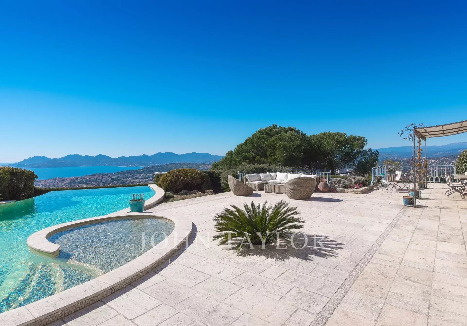 Auf den Höhen von Cannes, schöne und große klimatisierte Villa von 350 m2 Wohnfläche auf 2.000 m2 Grundstück mit schönem Panoramablick auf die Bucht von Cannes und das Massif de l'Esterel.