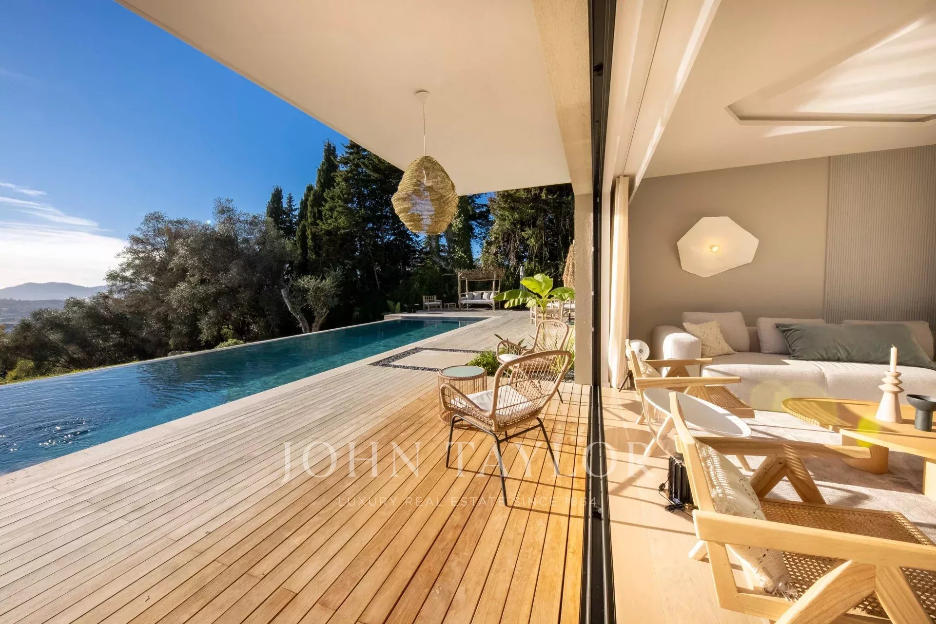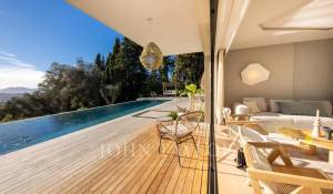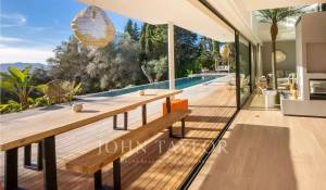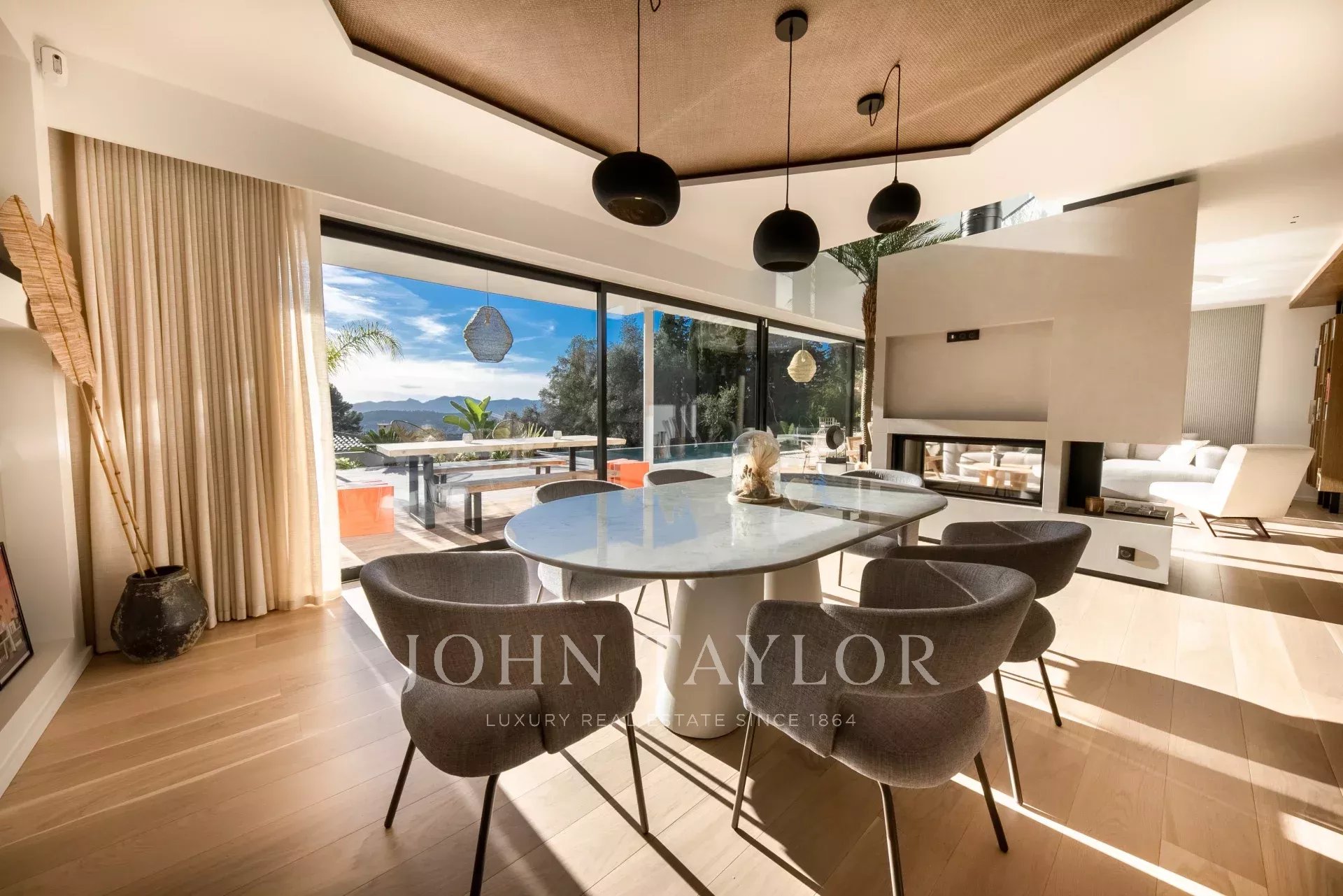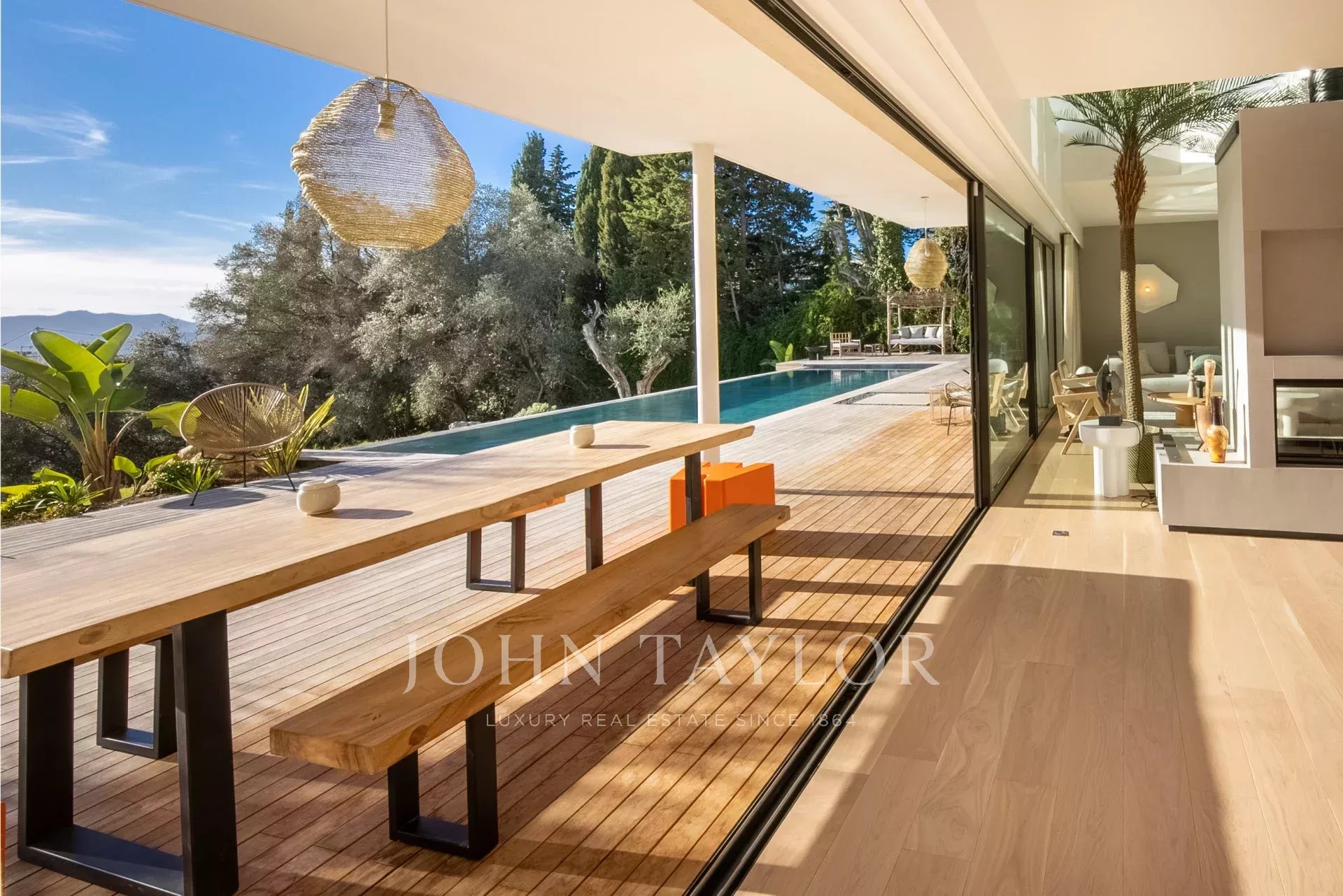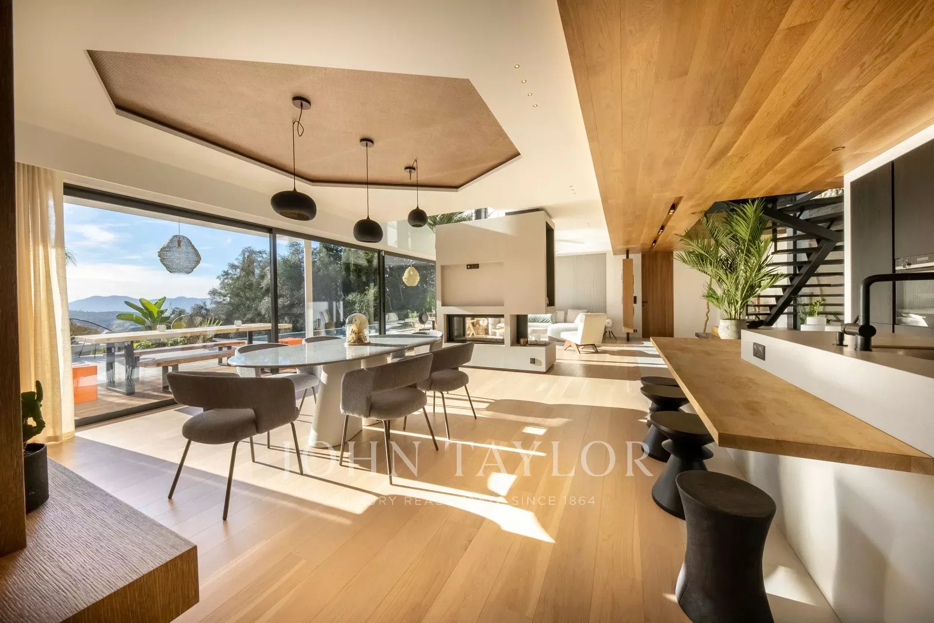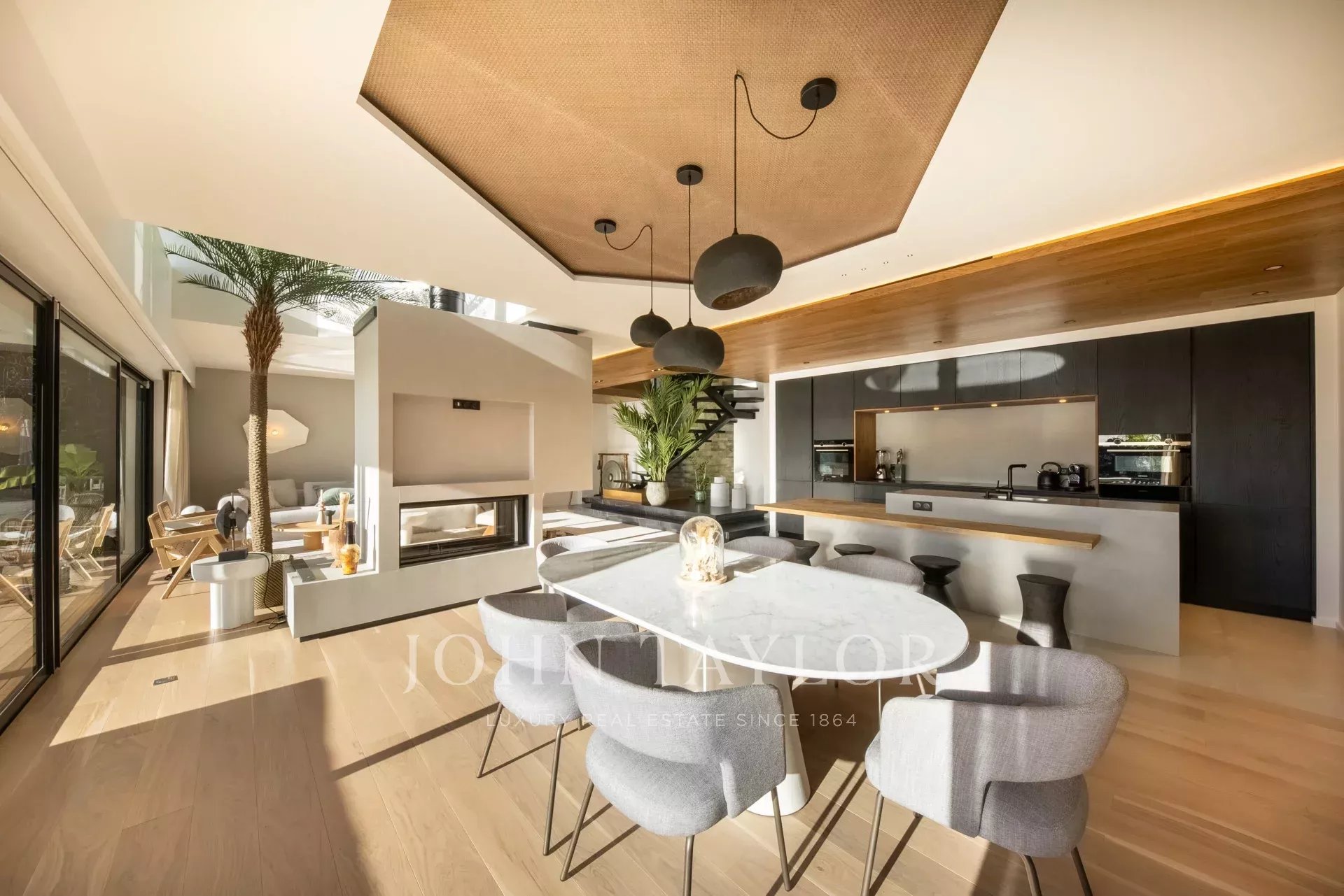 Nahe dem Zentrum von Cannes, in einem ruhigen Viertel von Le Cannet, besticht diese moderne Villa auf zwei Ebenen von 220 m2 durch ihre schönen Leistungen und ihre Zen- und minimalistische Dekoration.