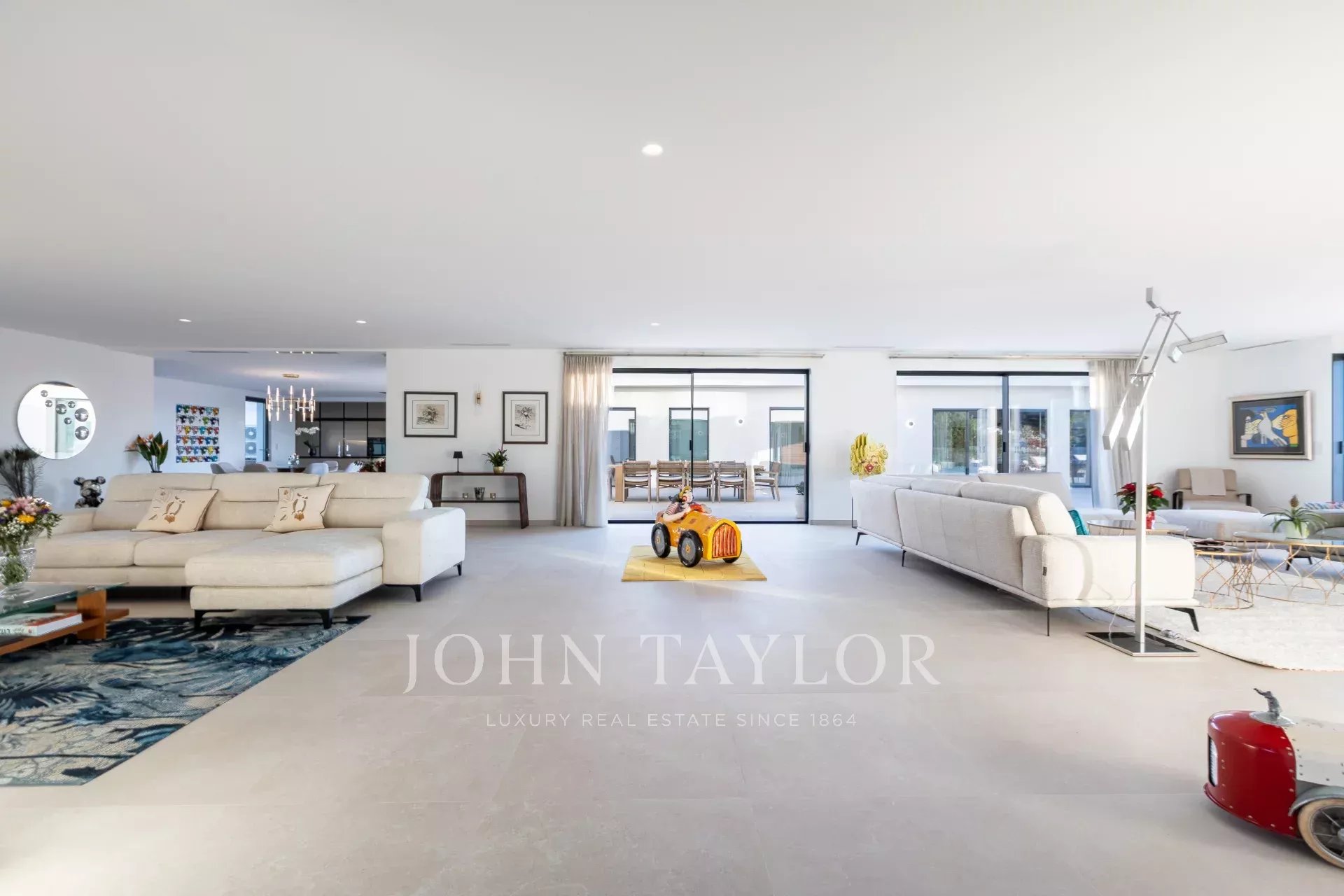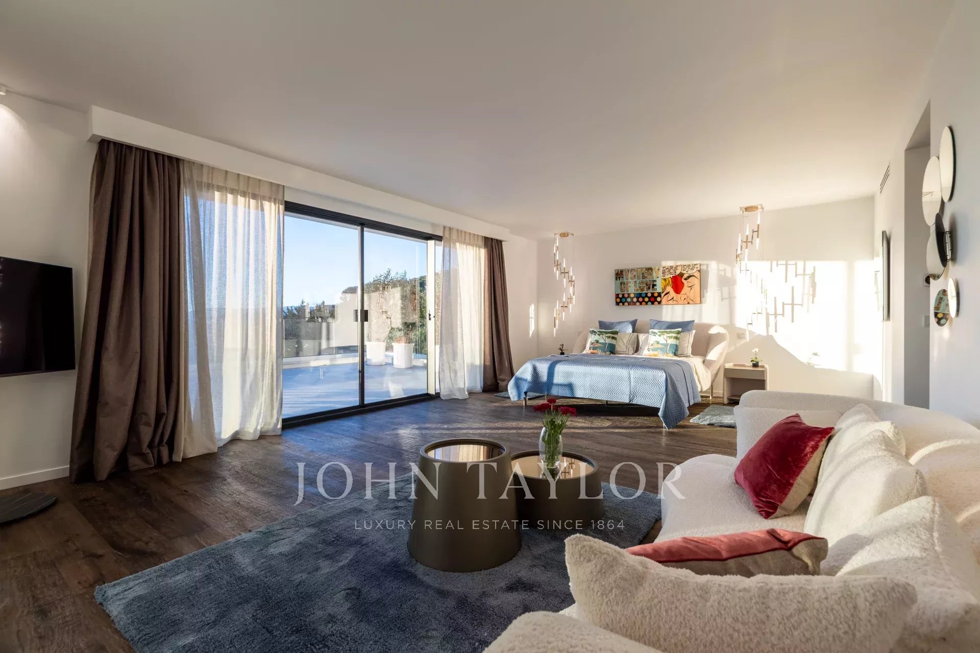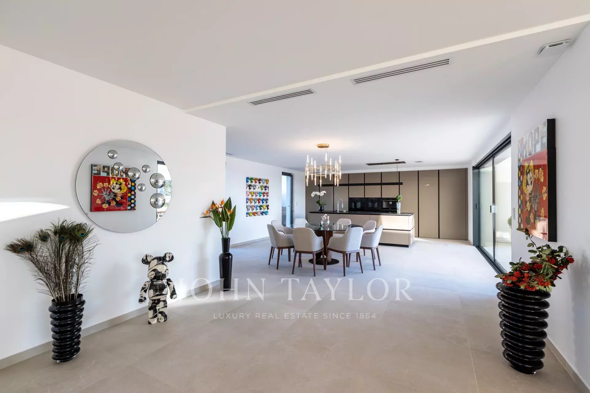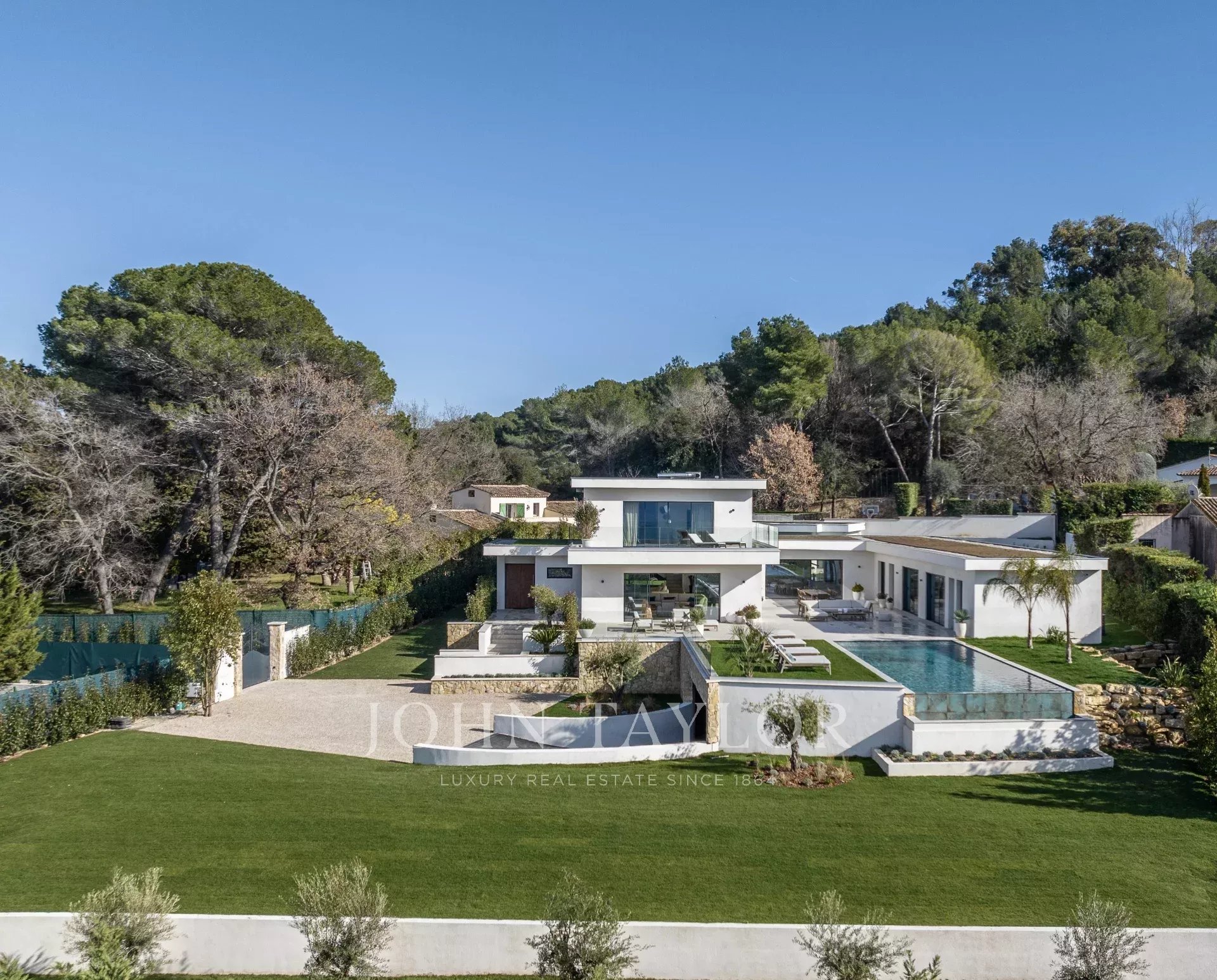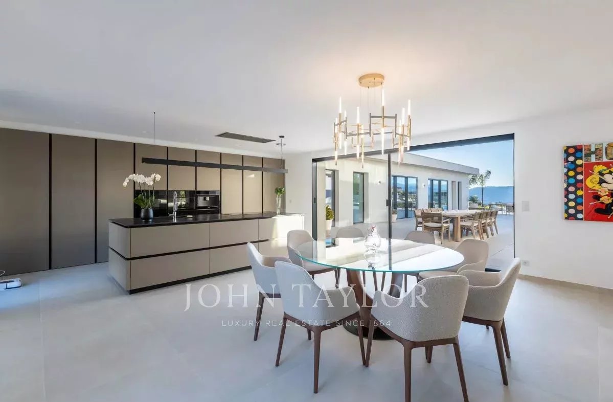 In ruhiger Lage, nur 10 Minuten von La Croisette entfernt, und mit einem schönen Panoramablick auf die umliegenden Hügel, bietet dieses geräumige, neue Anwesen im zeitgenössischen Stil eine Gesamtfläche von 861 m² auf einem 3.080 m² großen Grundstück mit beheiztem Pool.