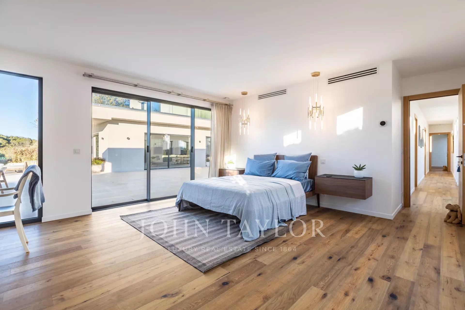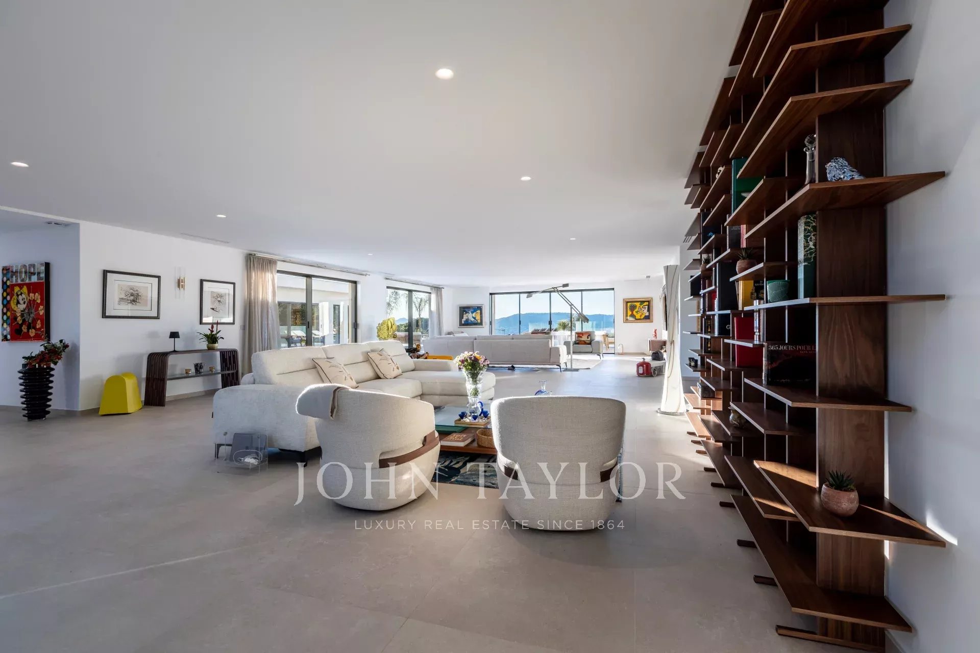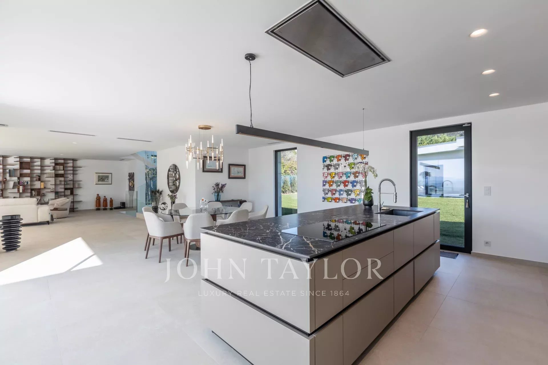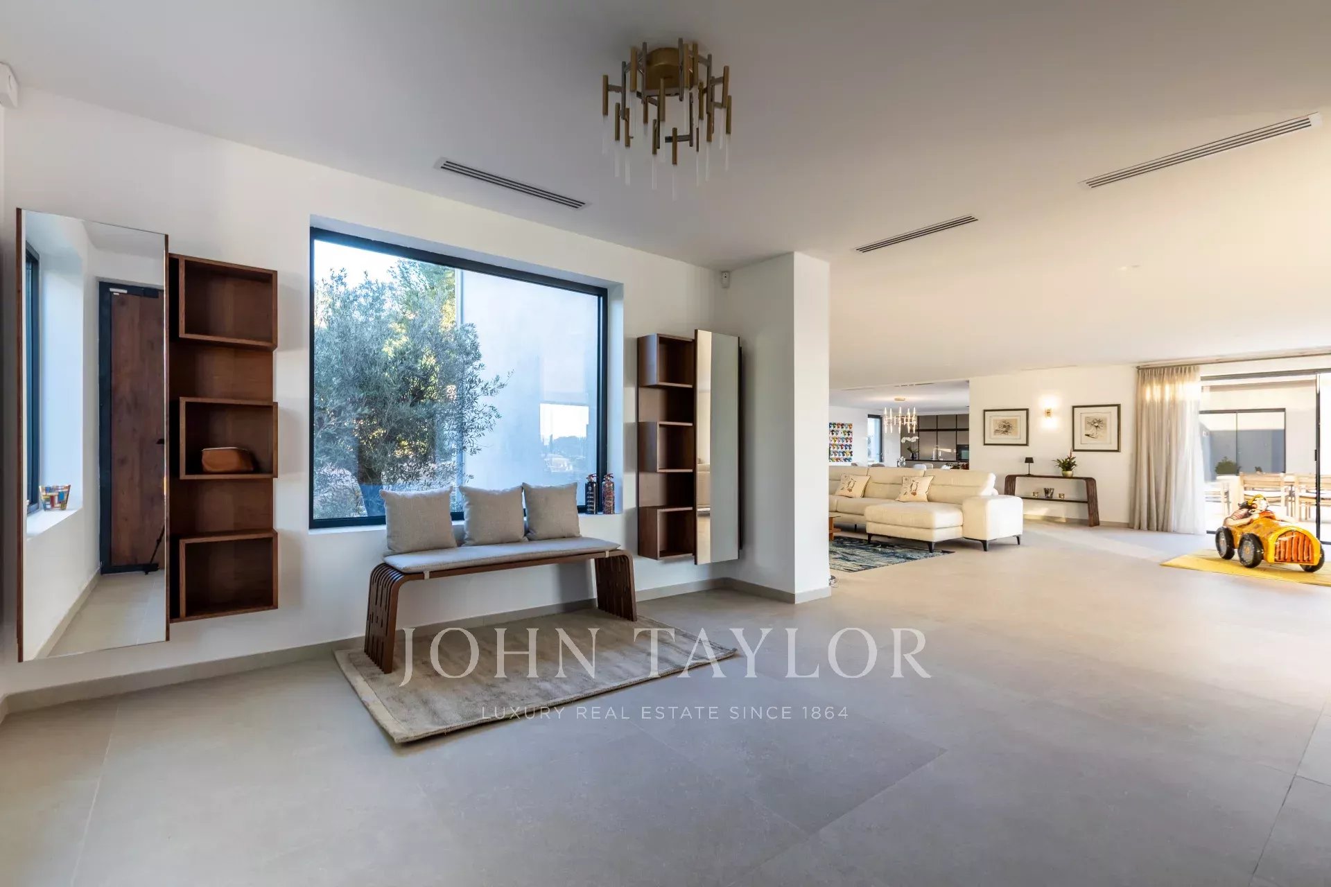 In ruhiger Lage, nur 10 Minuten von La Croisette entfernt, und mit einem schönen Panoramablick auf die umliegenden Hügel, bietet dieses geräumige, neue Anwesen im zeitgenössischen Stil eine Gesamtfläche von 861 m² auf einem 3.080 m² großen Grundstück mit beheiztem Pool.