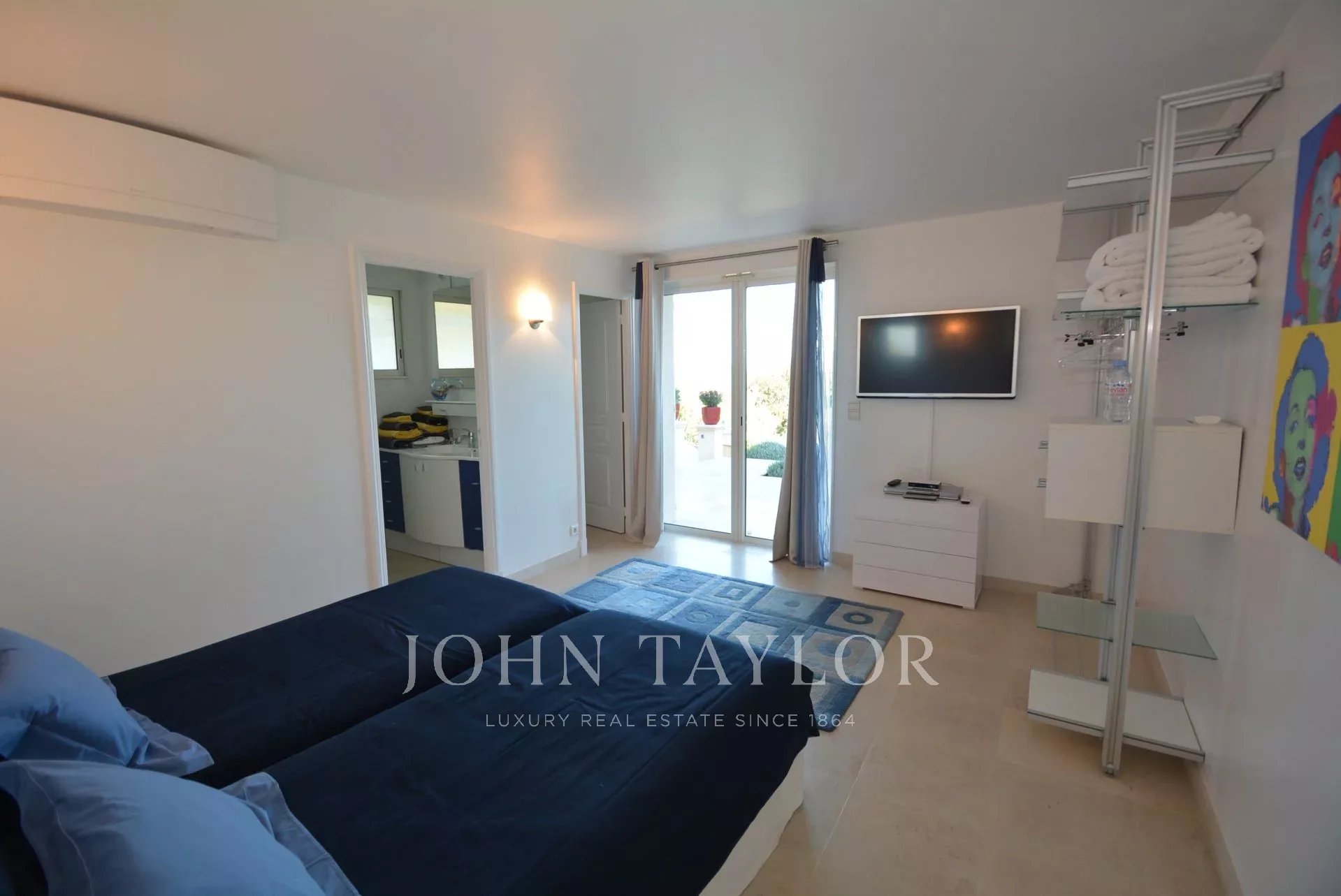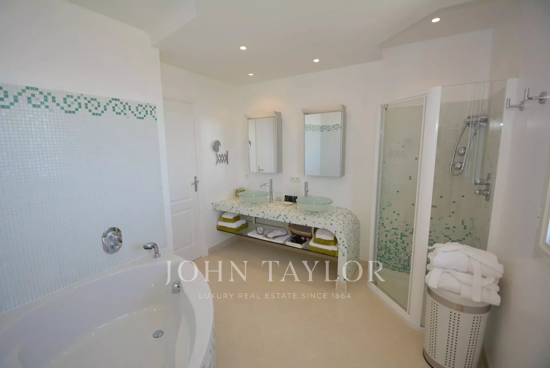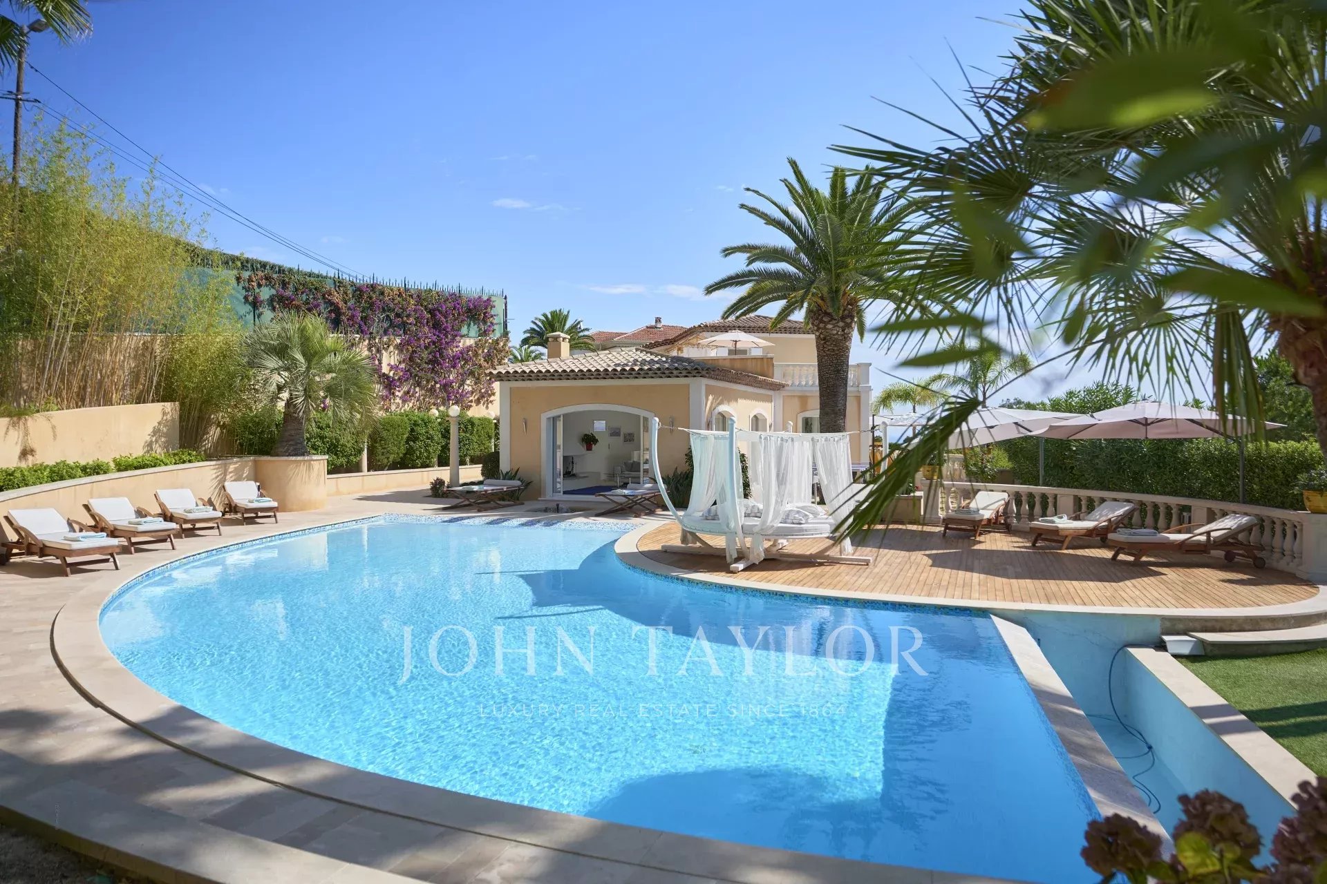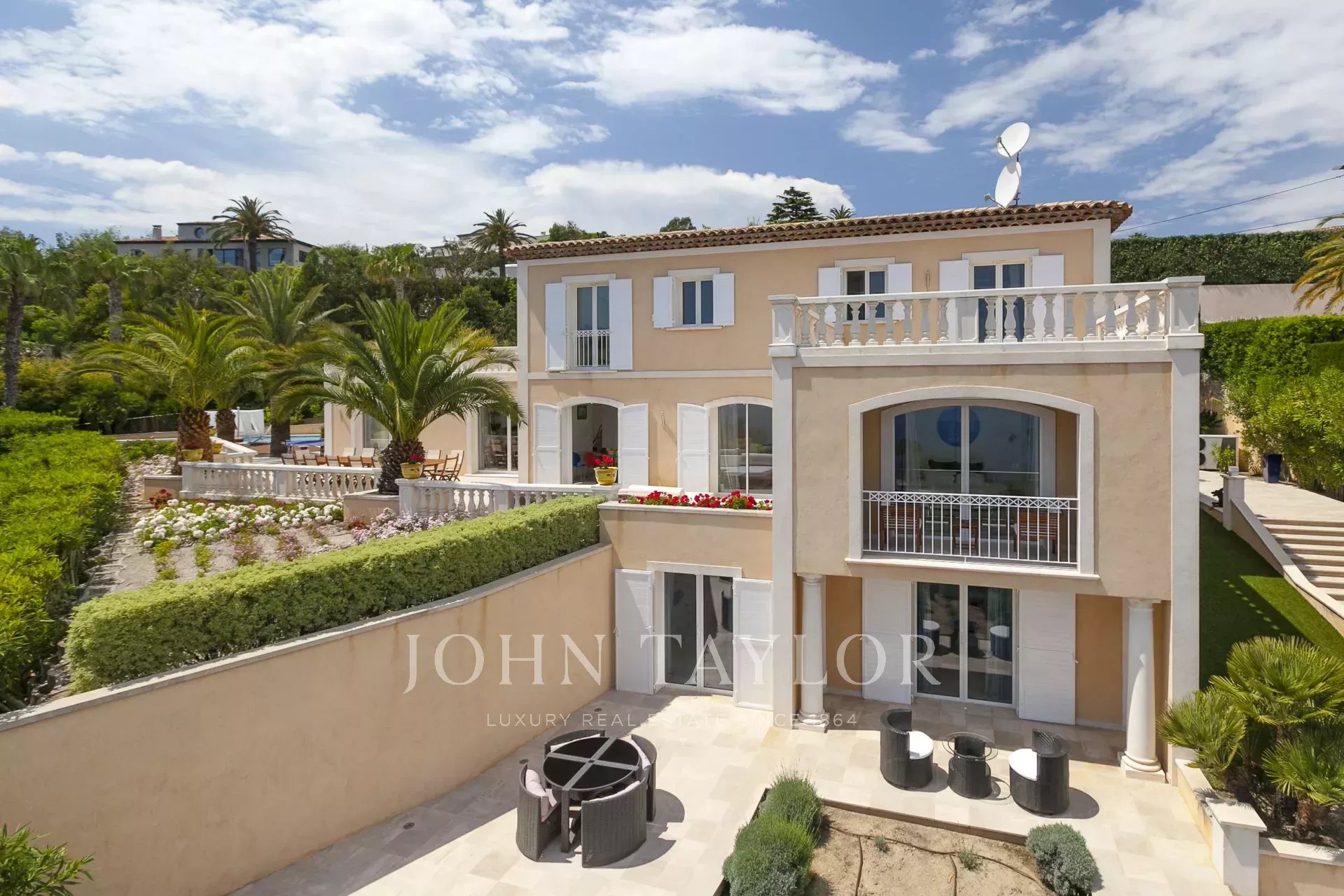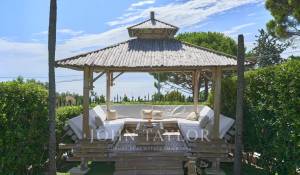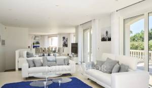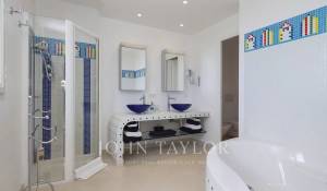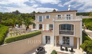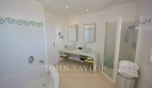 Neu gebaute Villa im neo-provenzalischen Stil mit einer ausgesprochen zeitgenössischen Dekoration. Diese 400 m2 große, voll klimatisierte Villa befindet sich im Viertel "Super Cannes" und genießt einen herrlichen Meerblick von der Spitze des Cap d'Antibes bis nach Cannes und den Lérins-Inseln.