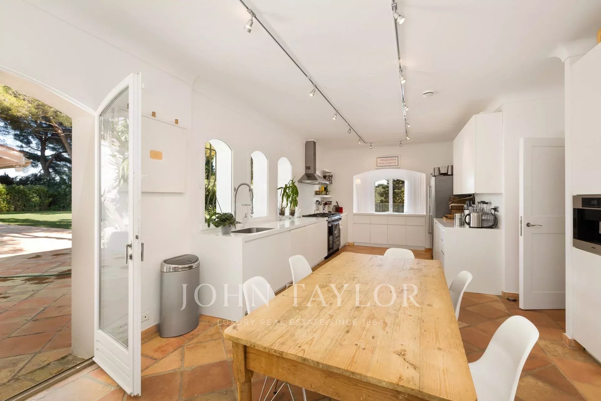 Perfekt ausgestattete Küche, die ebenfalls von einem eigenen Eingang profitiert.