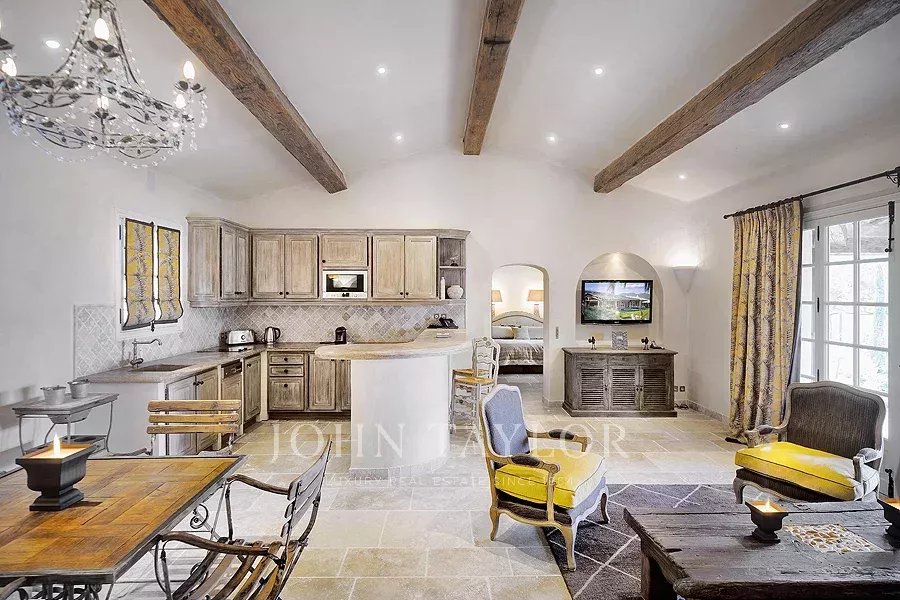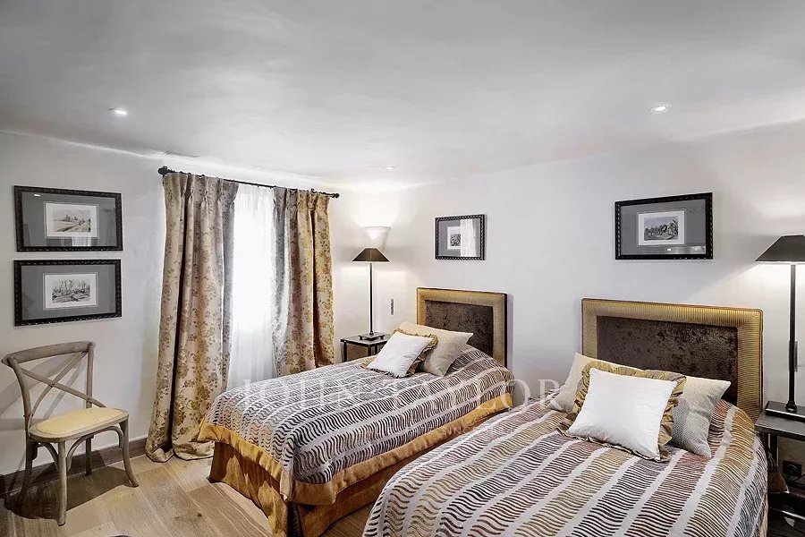 Dieses erstaunliche Anwesen befindet sich in einem 30 Hektar großen Park, der mit Olivenbäumen und Lavendel bepflanzt ist. Es ist nur 20 Minuten von La Croisette, 10 Minuten vom Flughafen Cannes Mandelieu und 30 Minuten vom internationalen Flughafen Nizza Côte d'Azur entfernt. Das Anwesen kann mit dem Hubschrauber erreicht werden und ist ideal für einen Urlaub in absoluter Privatsphäre. Eine wahre Oase der Ruhe inmitten einer grünen Umgebung.
