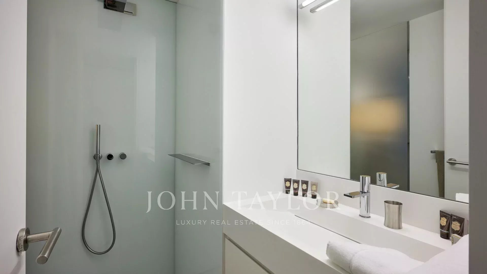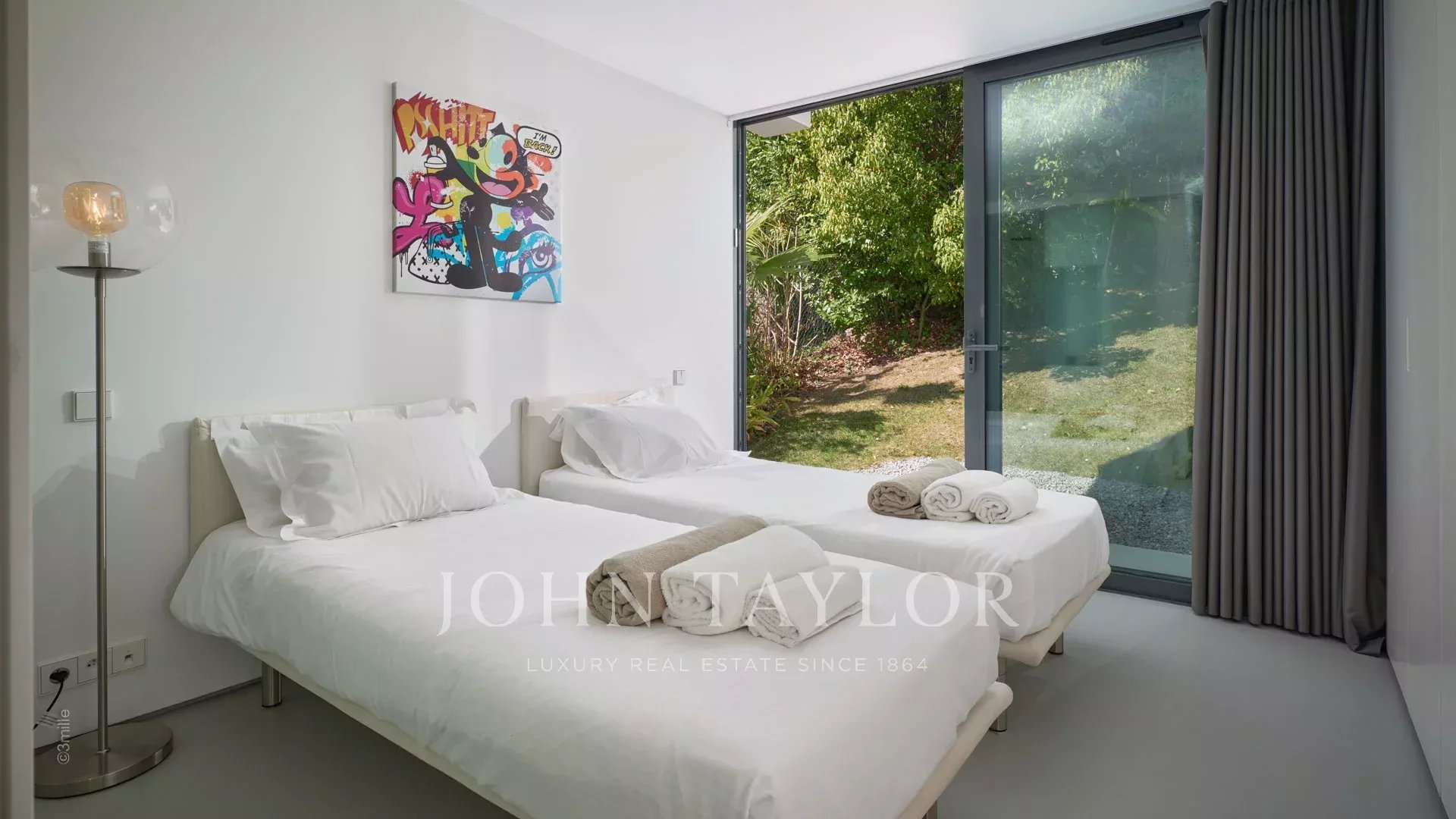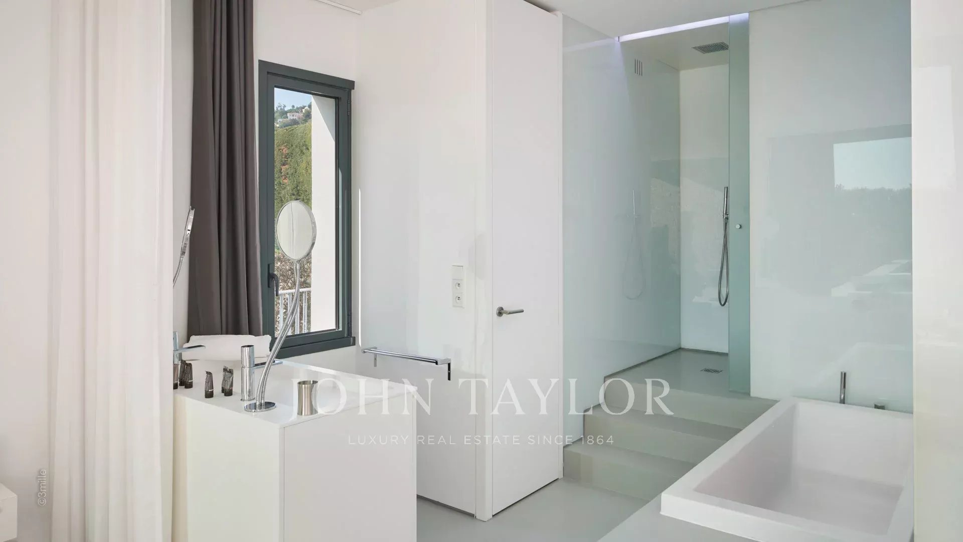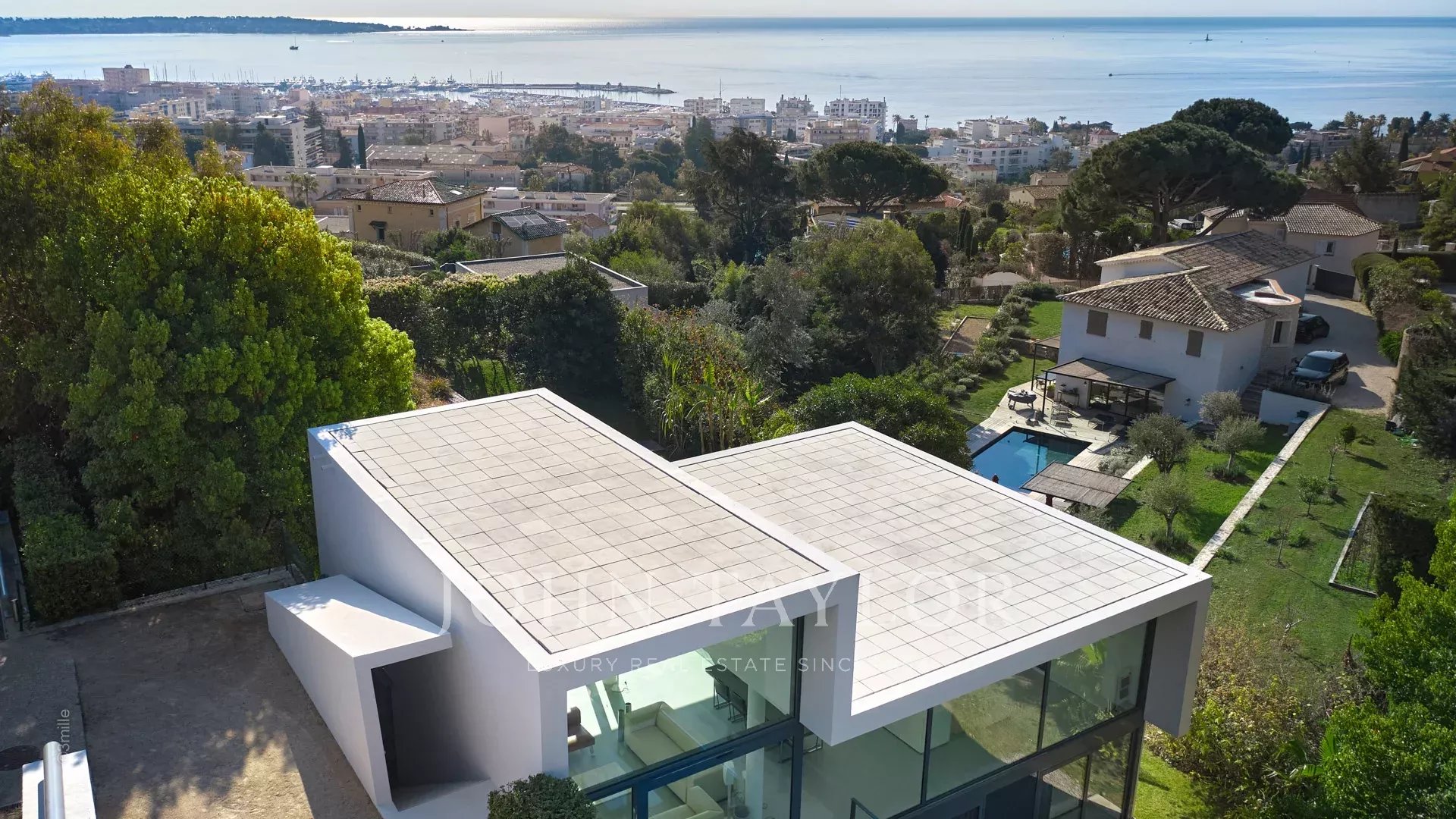 Auf den Höhen von Golfe-Juan und voll klimatisiert, ist dieses schöne Anwesen von moderner Architektur auf 2 Ebenen gebaut und setzt sich wie folgt zusammen: