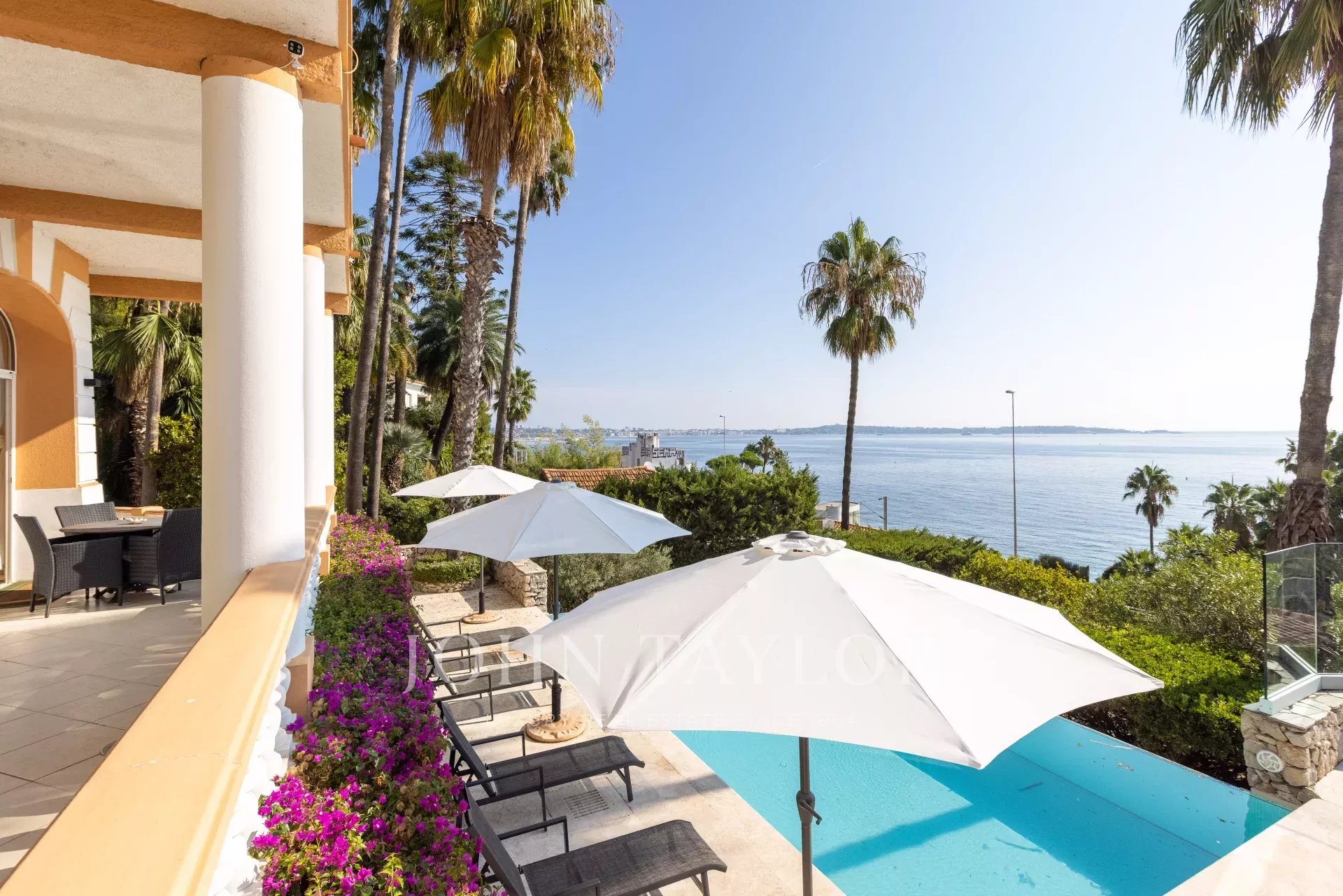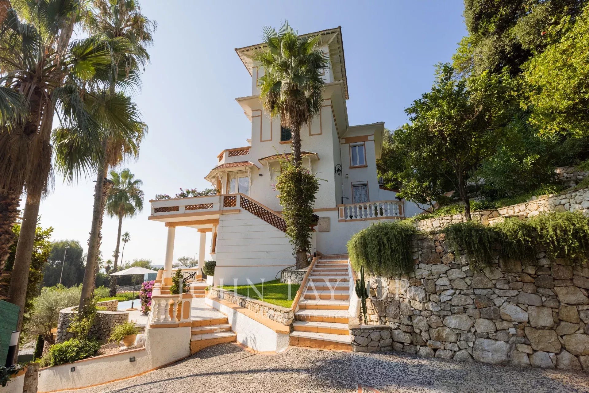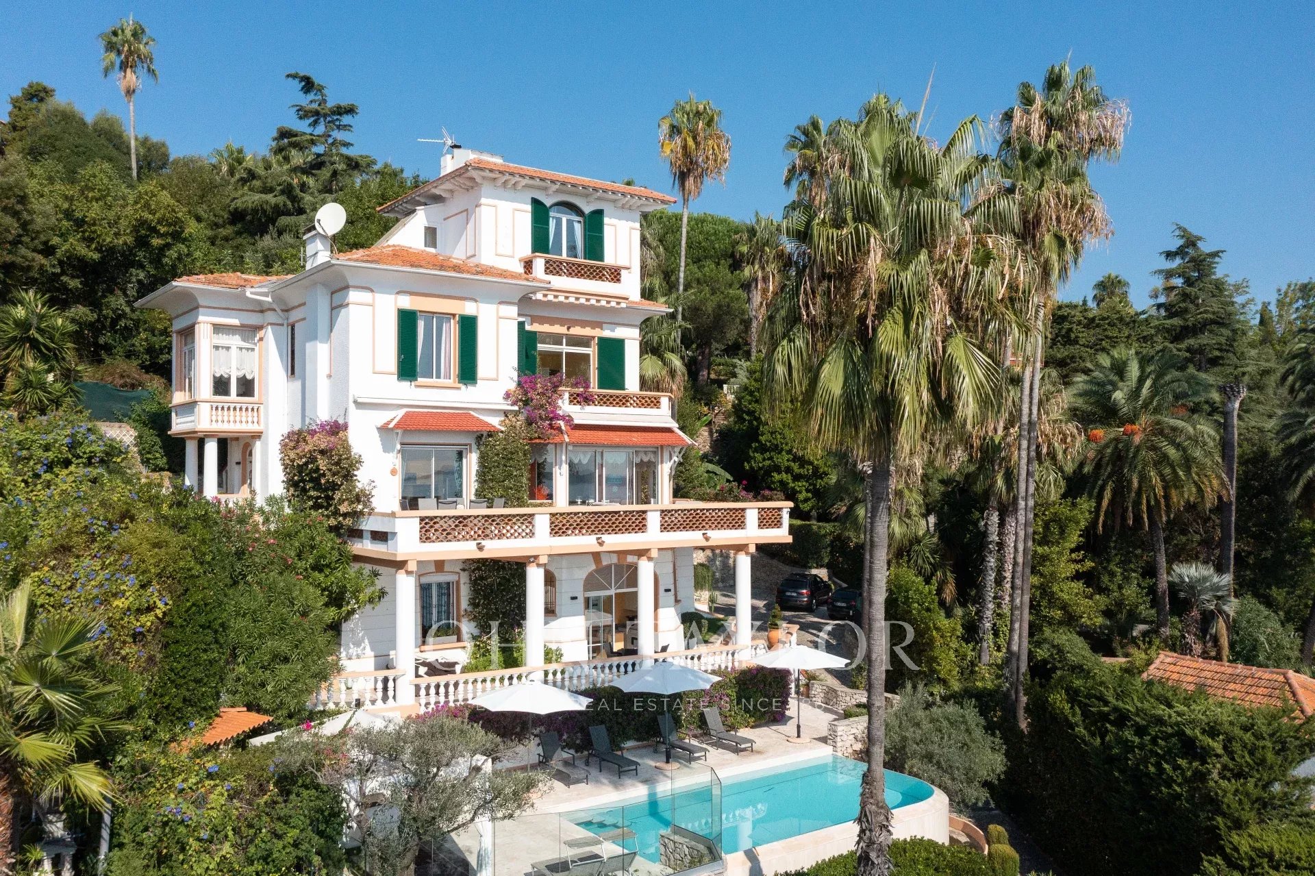 In der Nähe von Cannes und ideal am Meer gelegen, Belle Epoque Villa inmitten eines angelegten Grundstücks von ca. 1000 m². Herrlicher Blick auf das Meer und das Cap d'Antibes
