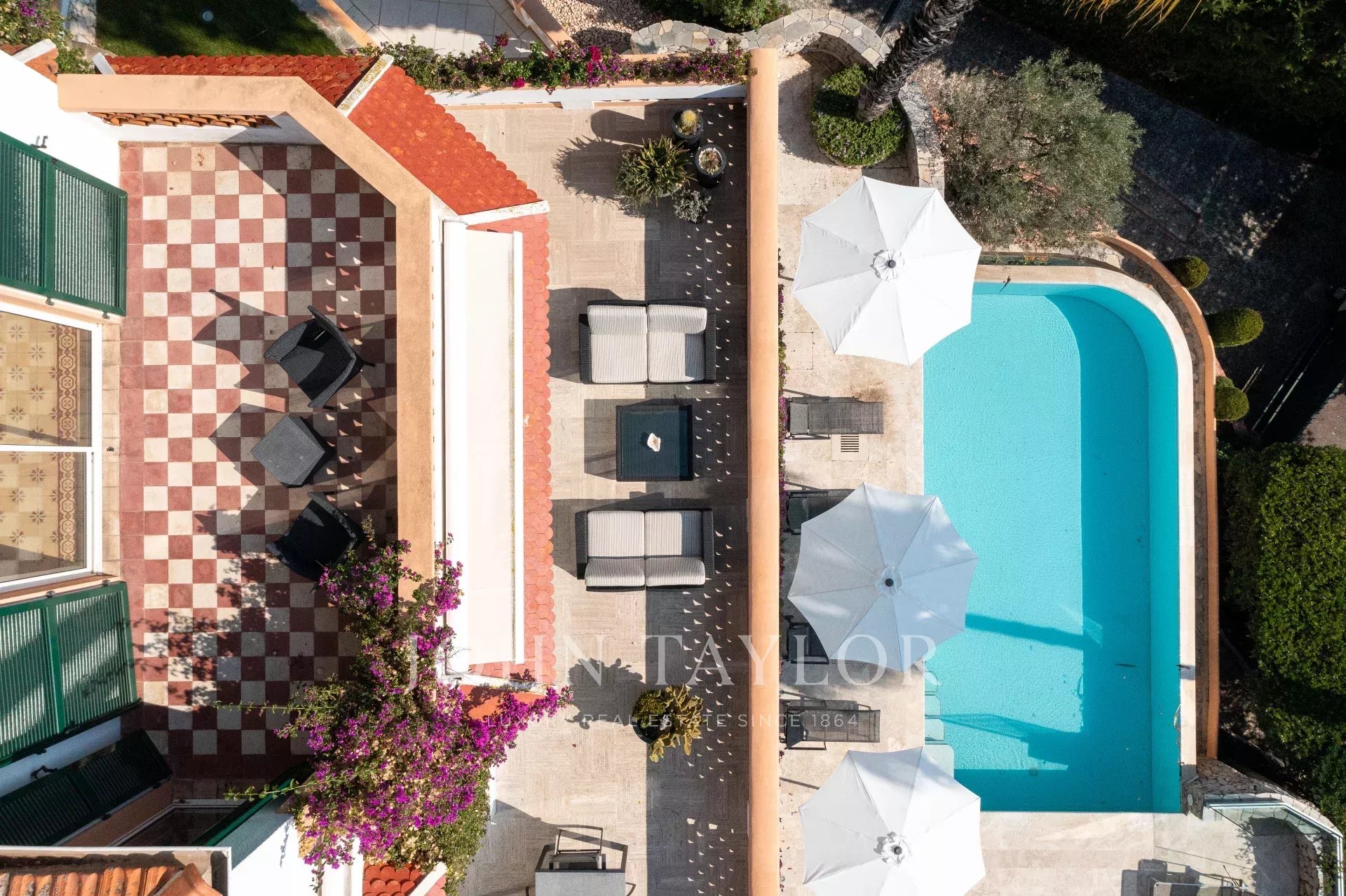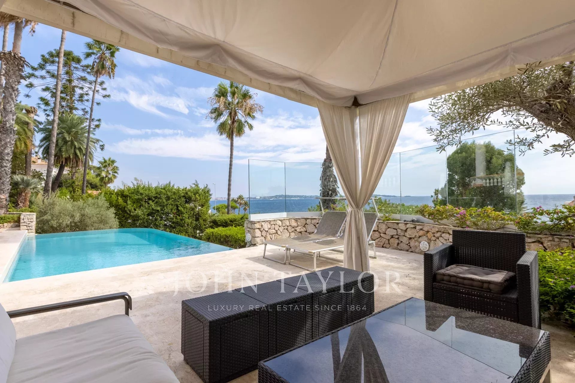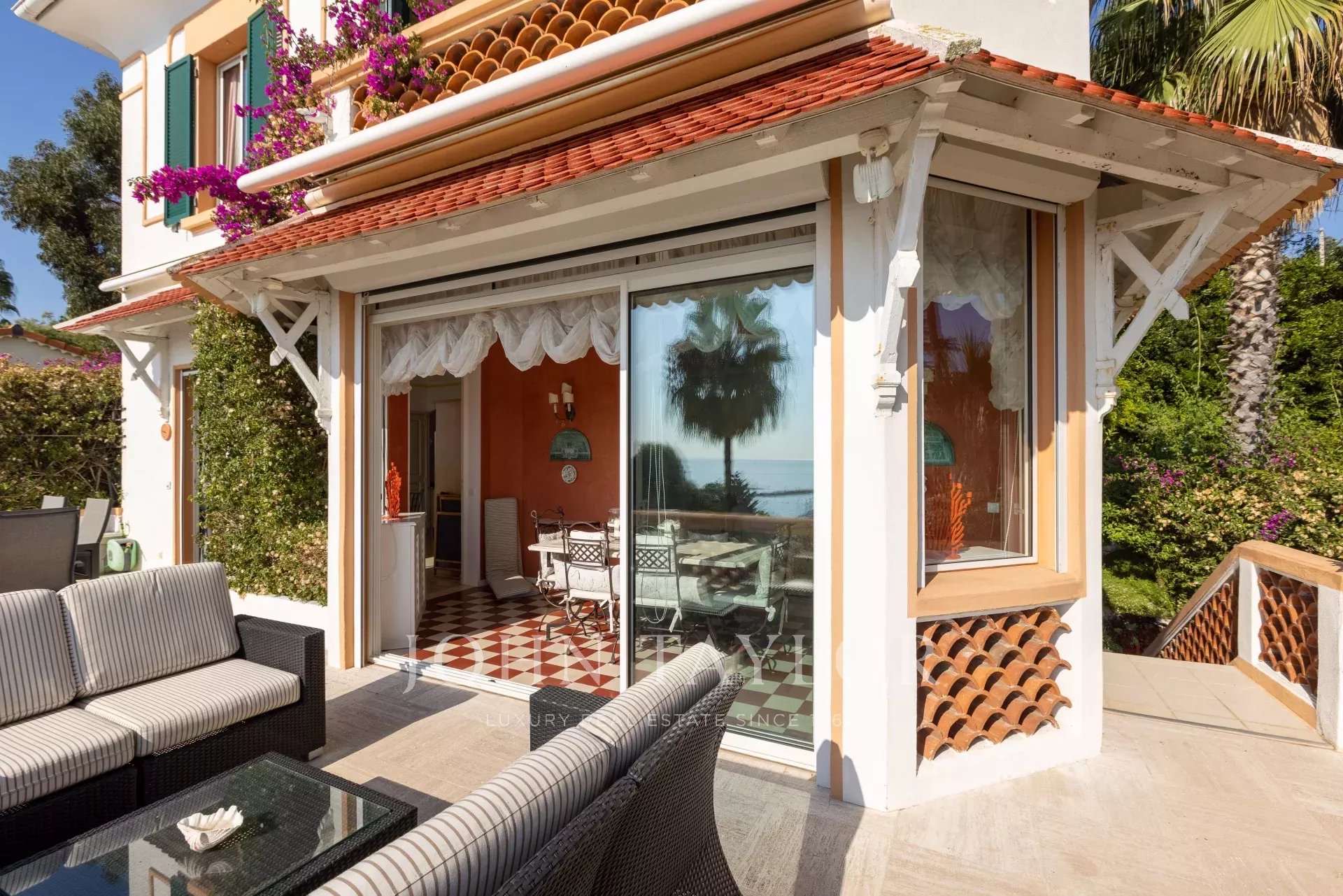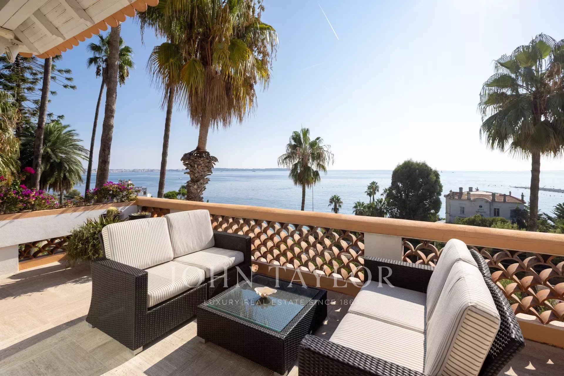 In der Nähe von Cannes und ideal am Meer gelegen, Belle Epoque Villa inmitten eines angelegten Grundstücks von ca. 1000 m². Herrlicher Blick auf das Meer und das Cap d'Antibes