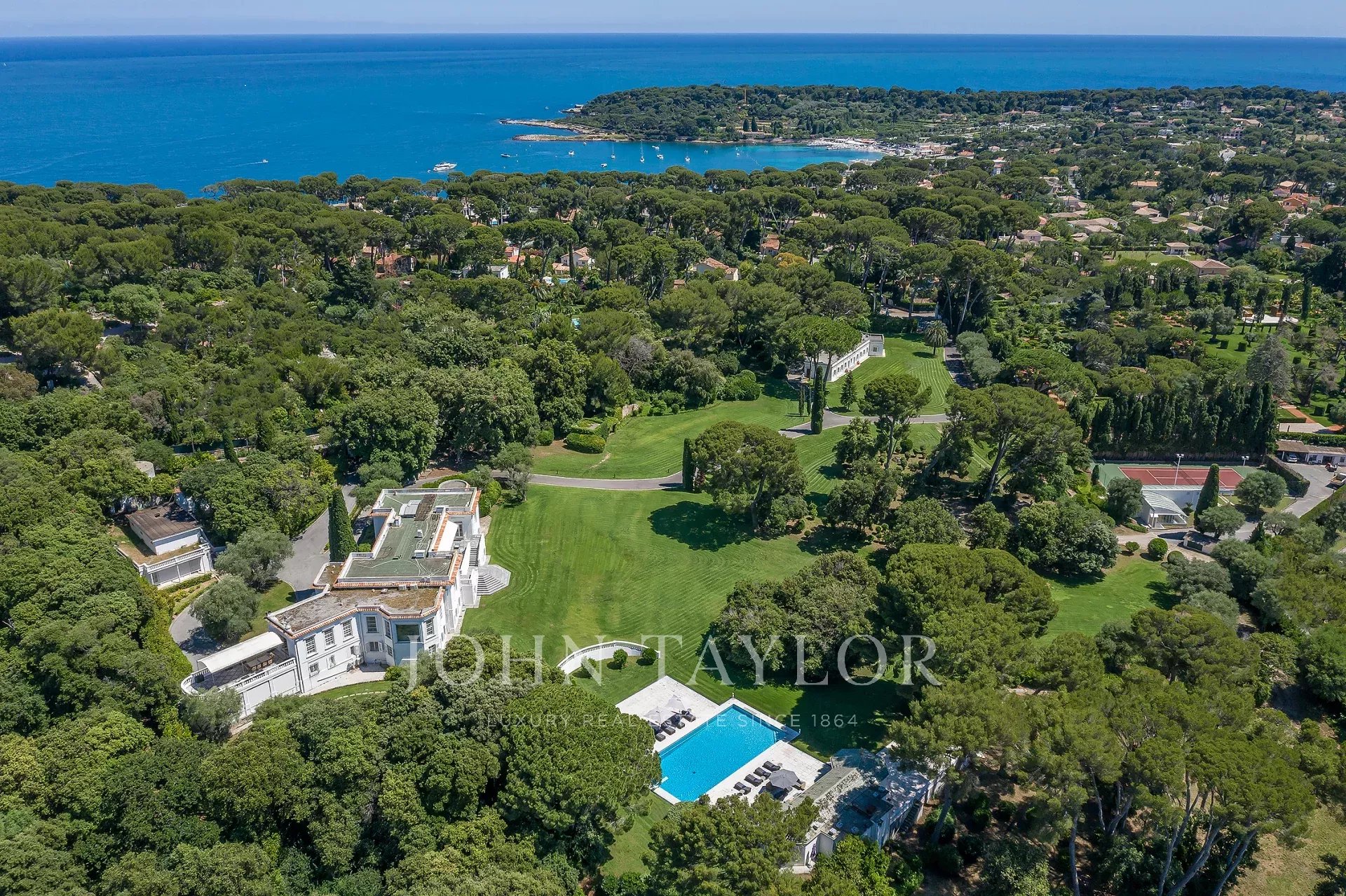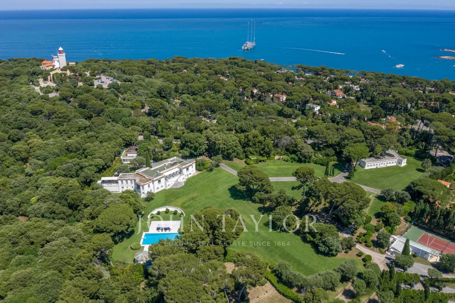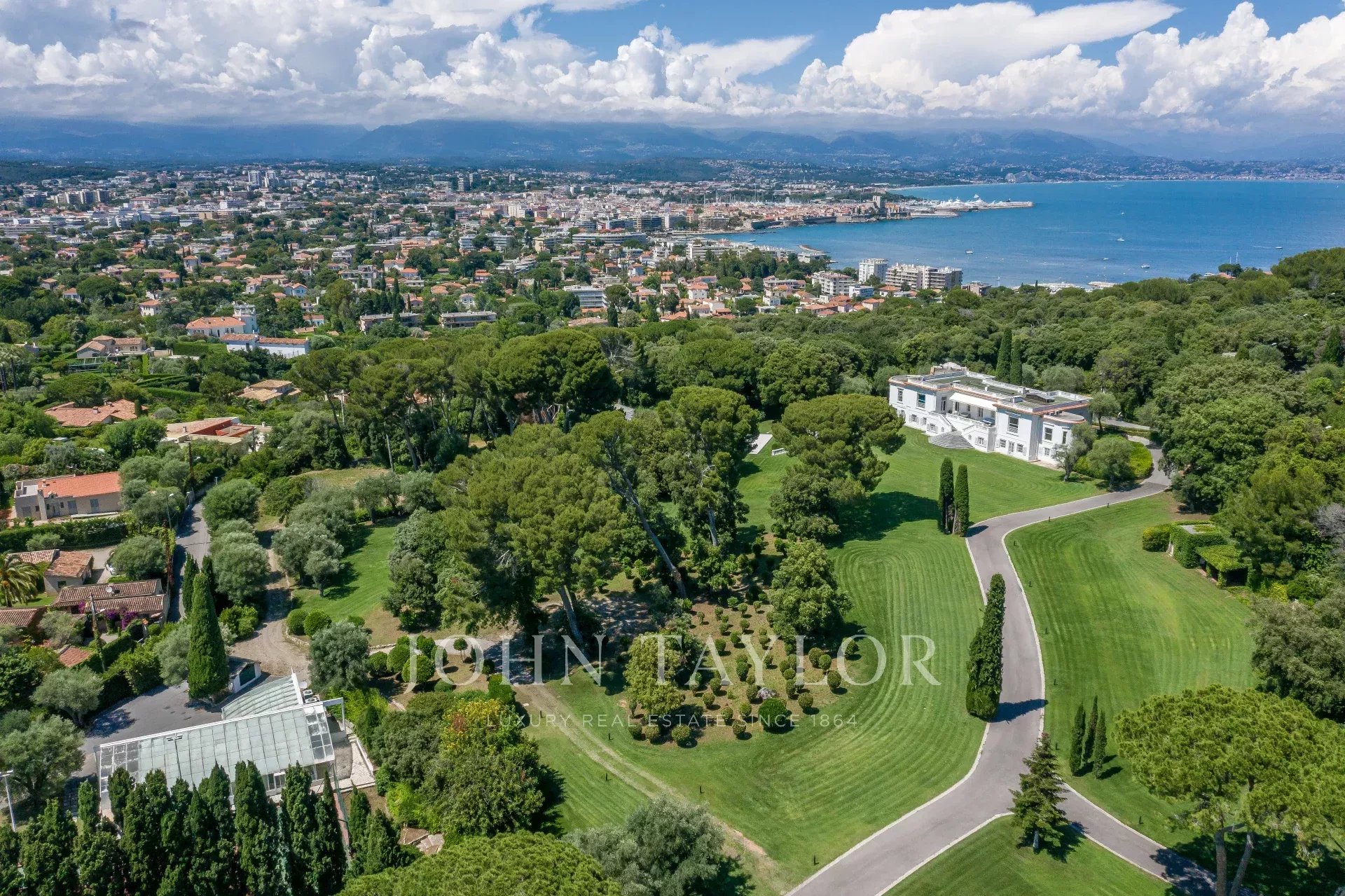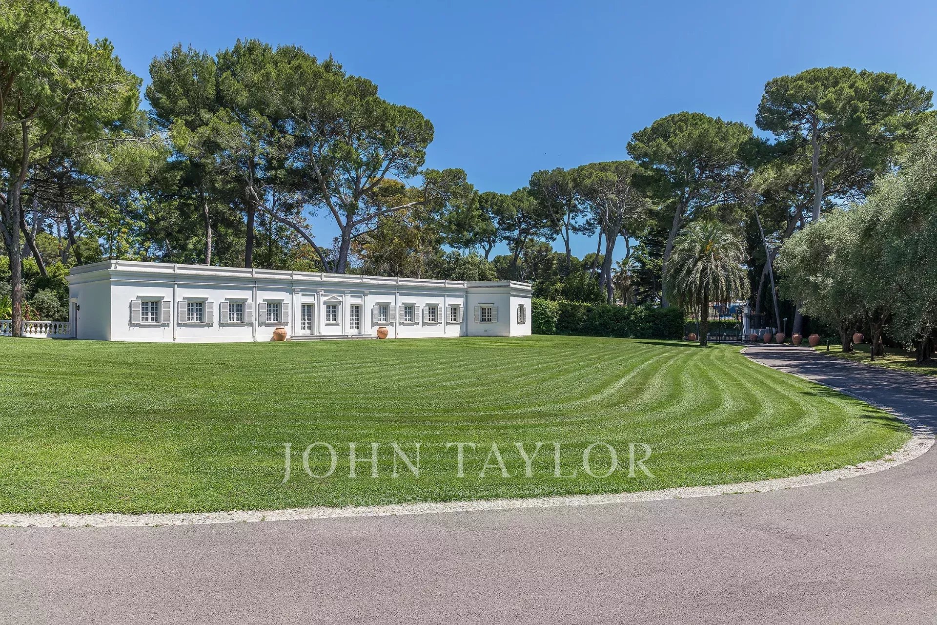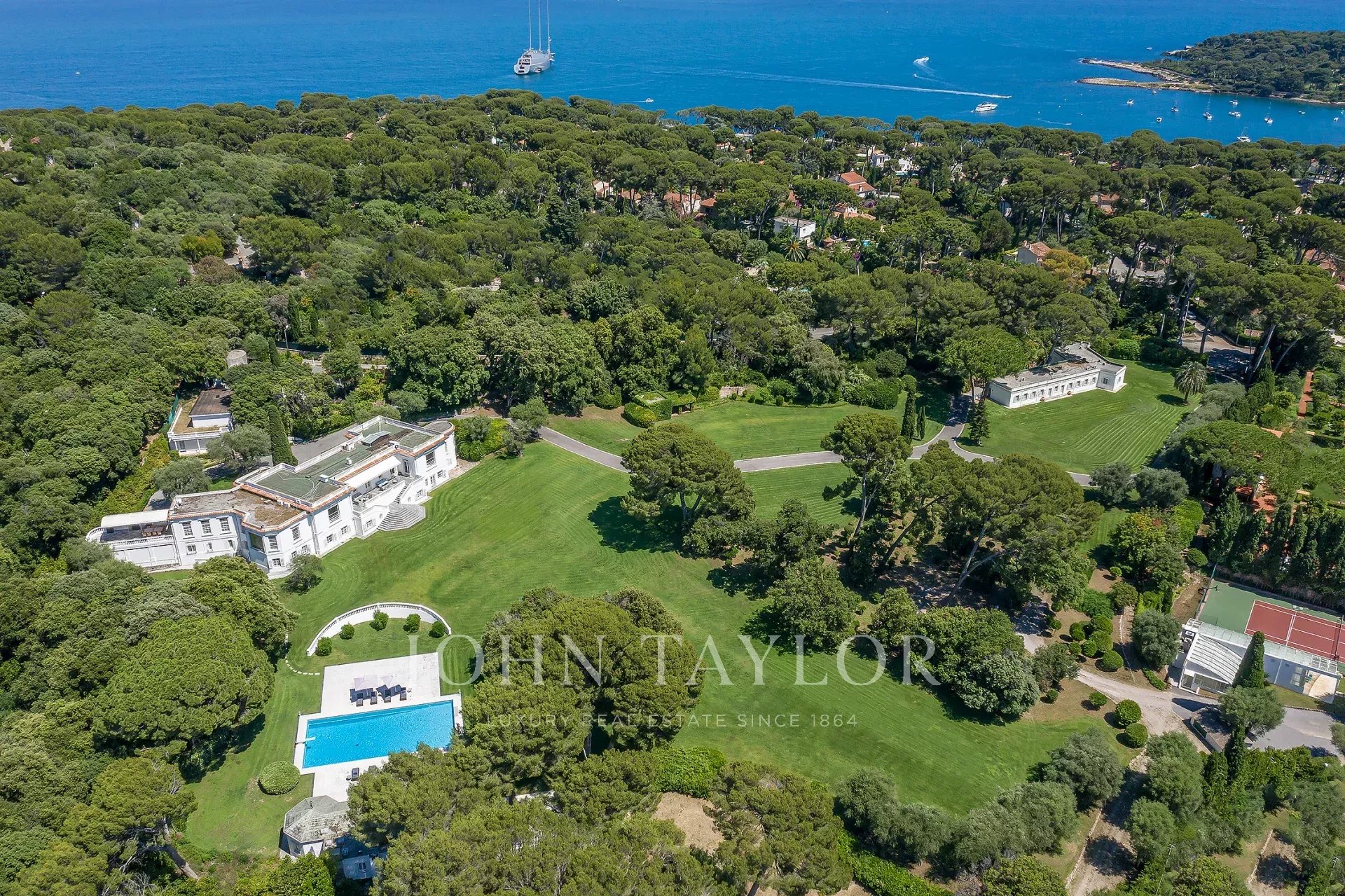 Dieses außergewöhnliche Anwesen ist ein hervorragendes Beispiel für die Architektur der 20er Jahre und liegt auf dem höchsten Punkt von Cap d'Antibes inmitten eines 4,5 Hektar großen Parks, der fast vollständig mit englischem Rasen bedeckt ist.