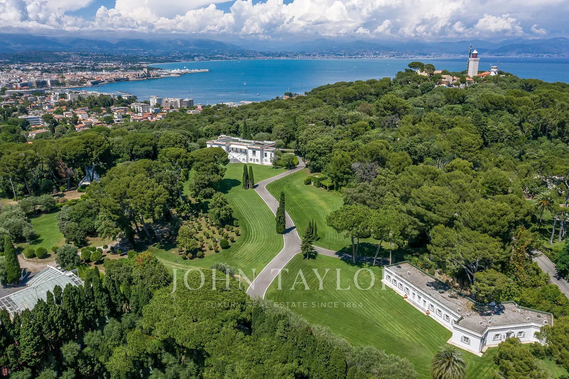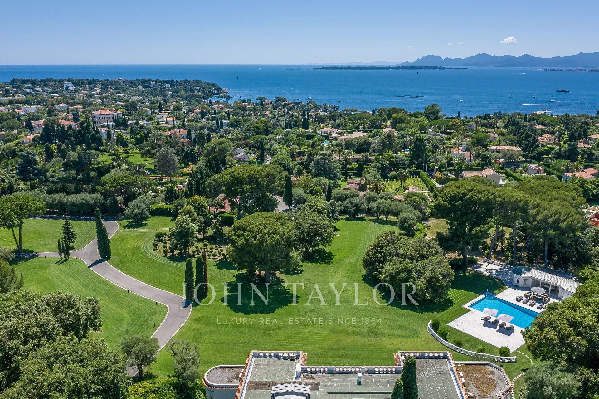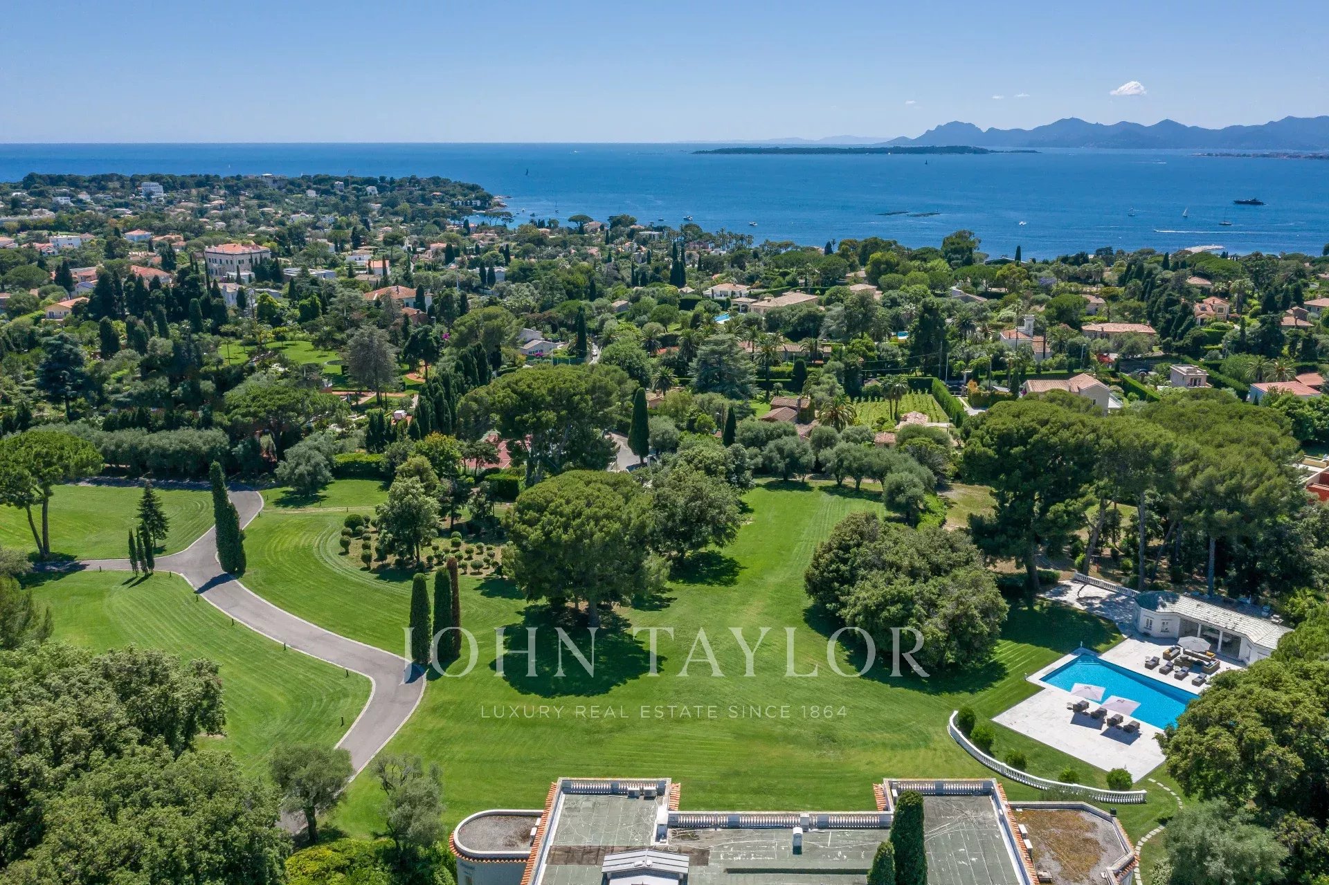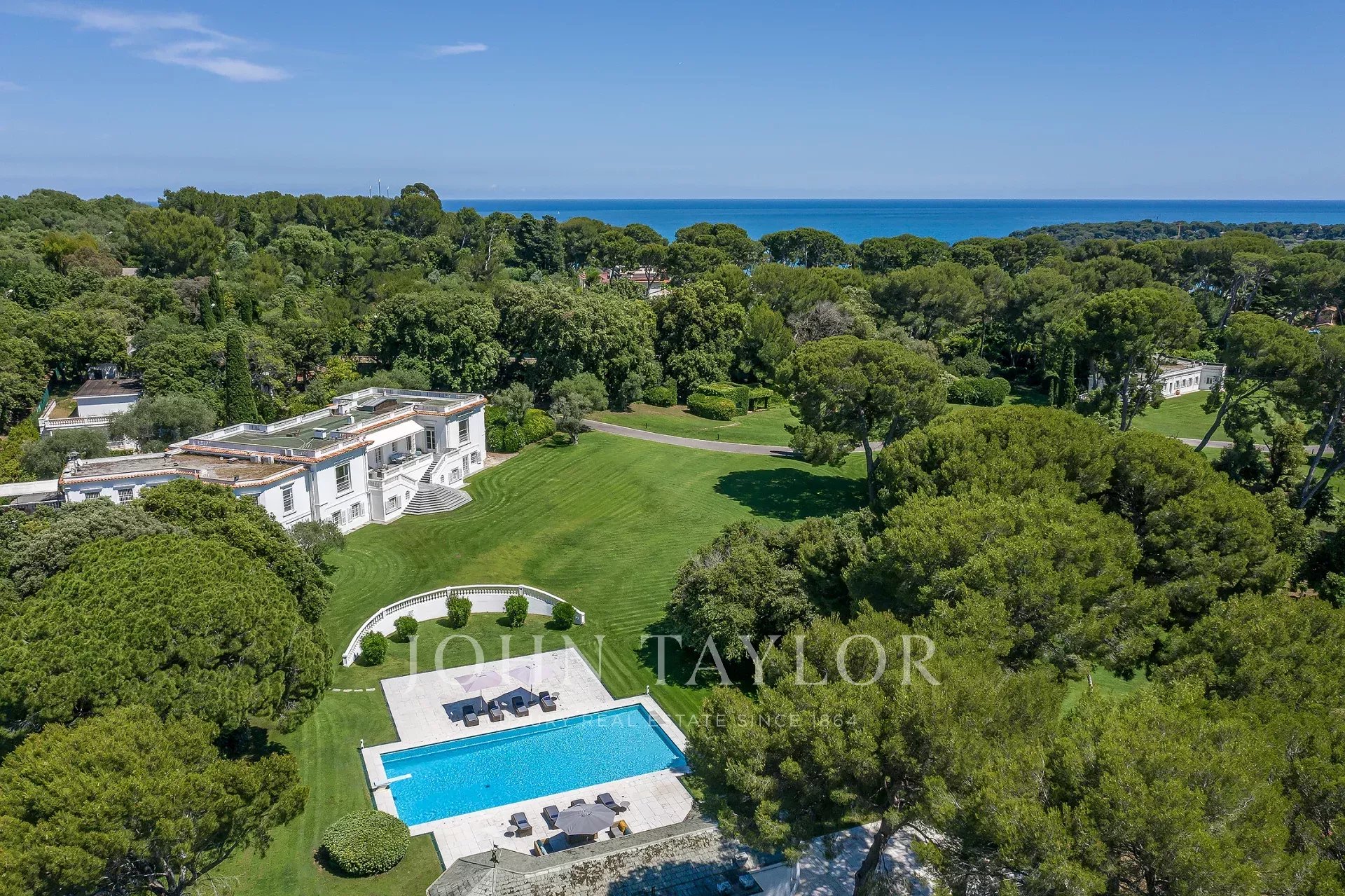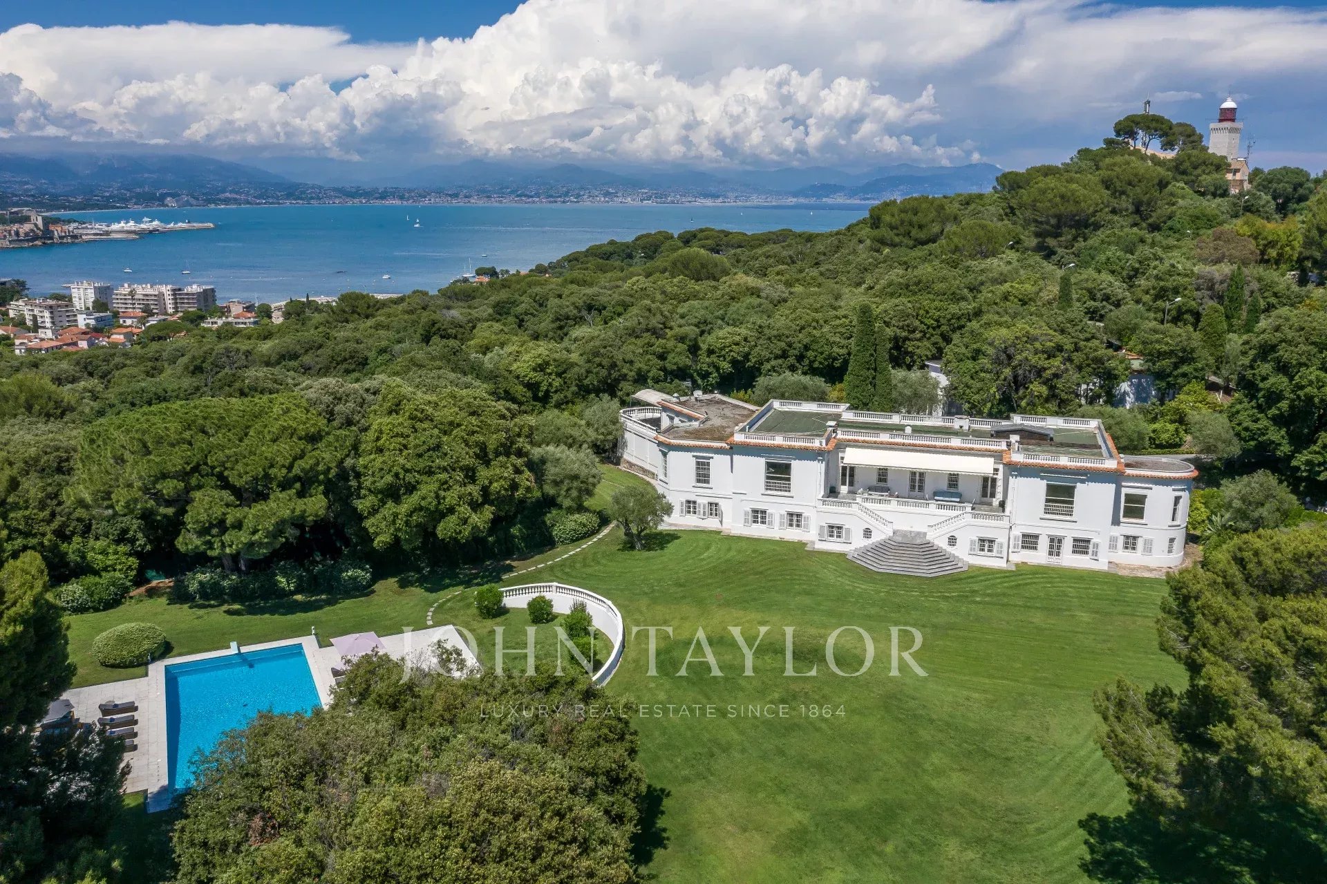 Dieses außergewöhnliche Anwesen ist ein hervorragendes Beispiel für die Architektur der 20er Jahre und liegt auf dem höchsten Punkt von Cap d'Antibes inmitten eines 4,5 Hektar großen Parks, der fast vollständig mit englischem Rasen bedeckt ist.