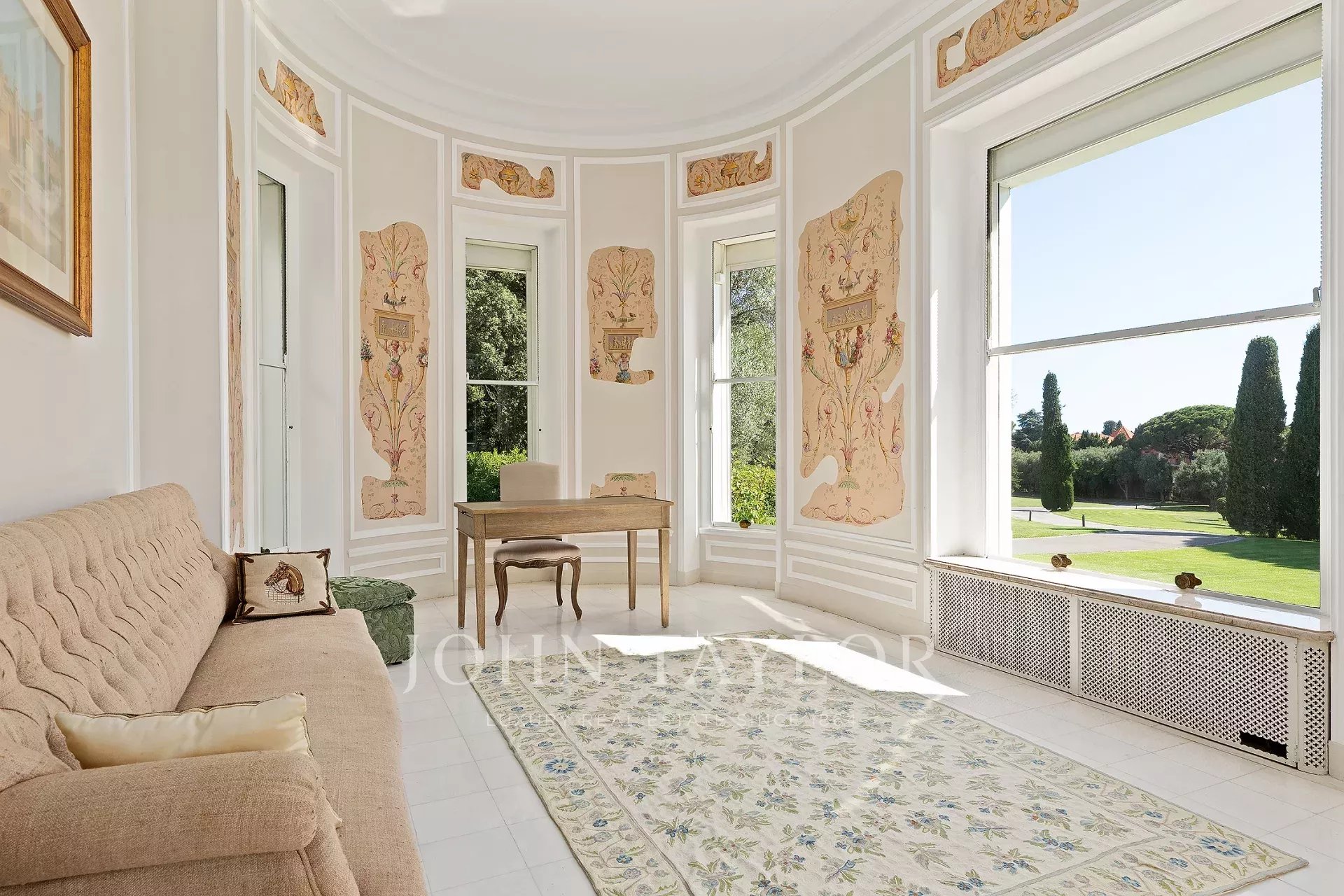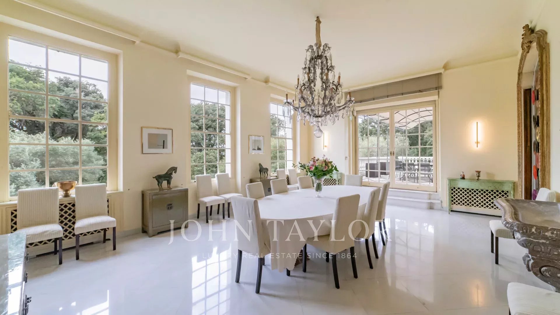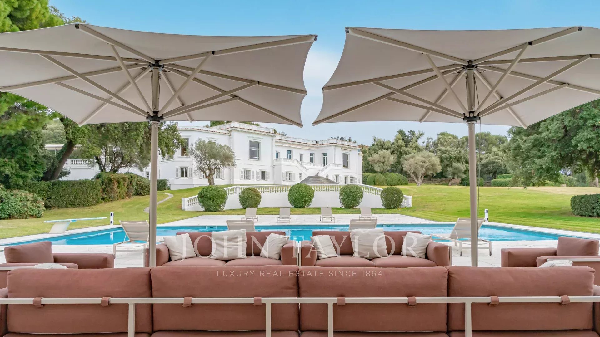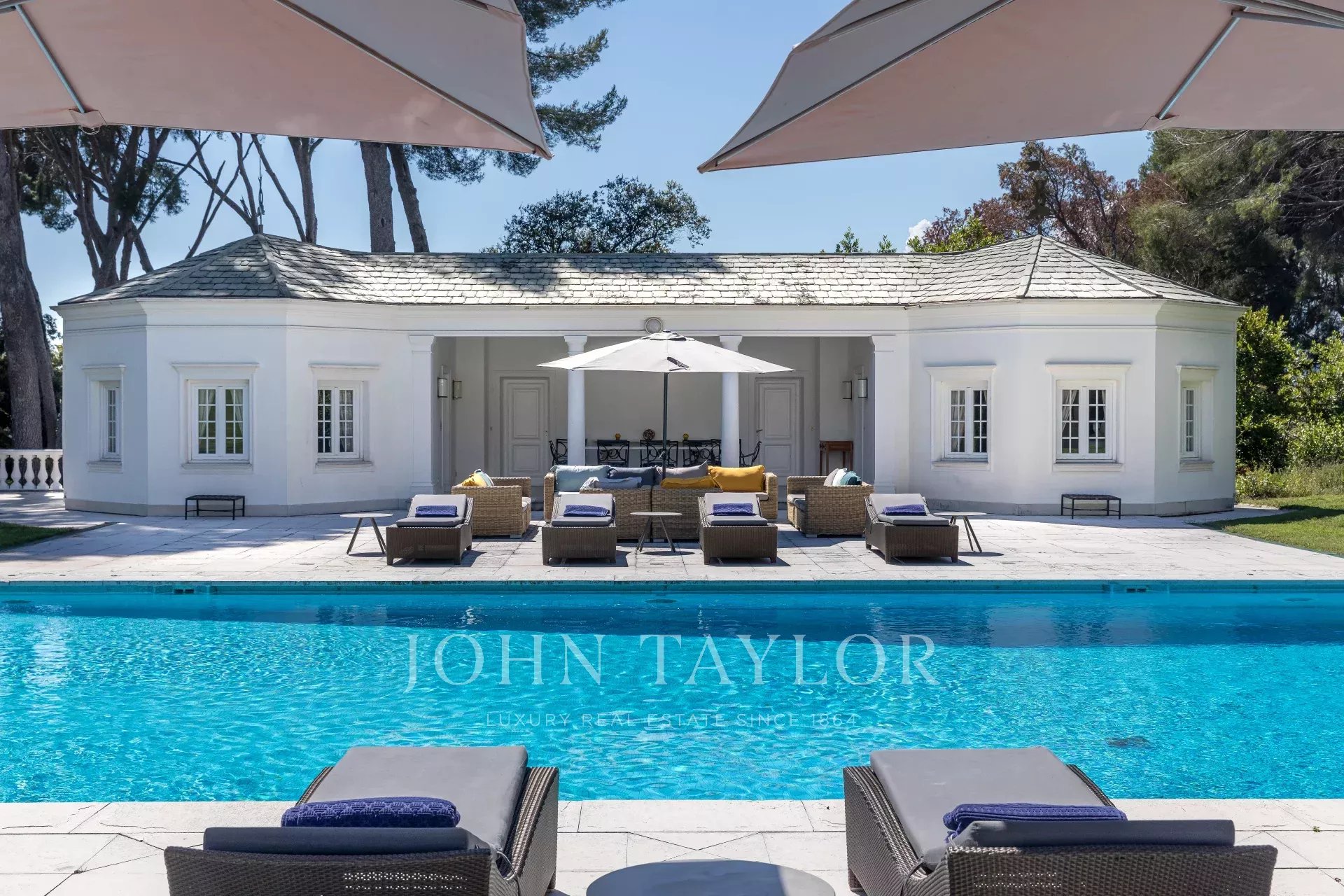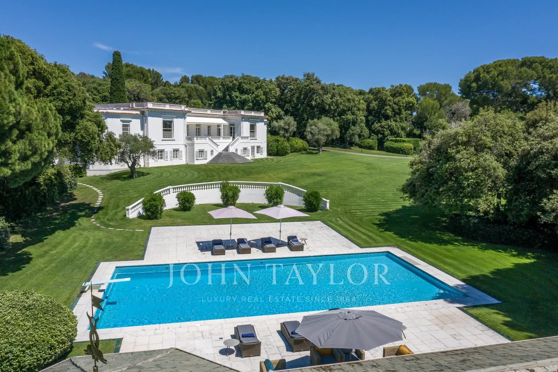 Dieses außergewöhnliche Anwesen ist ein hervorragendes Beispiel für die Architektur der 20er Jahre und liegt auf dem höchsten Punkt von Cap d'Antibes inmitten eines 4,5 Hektar großen Parks, der fast vollständig mit englischem Rasen bedeckt ist.