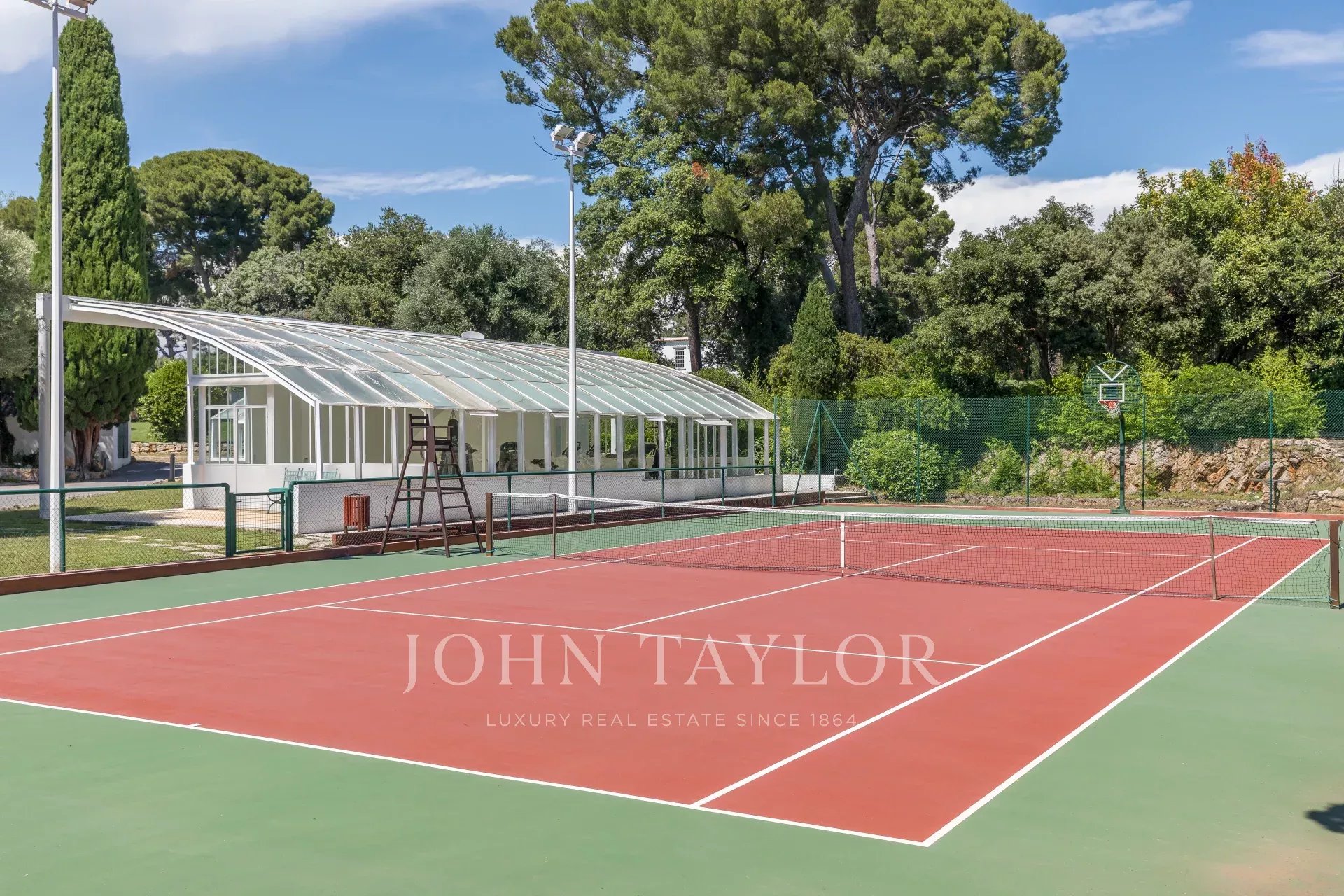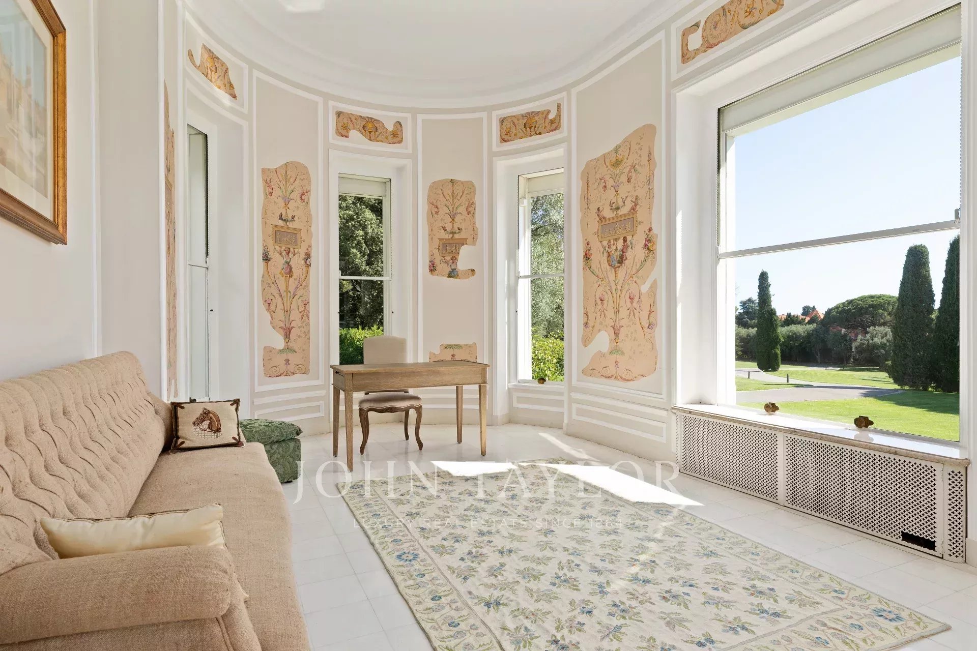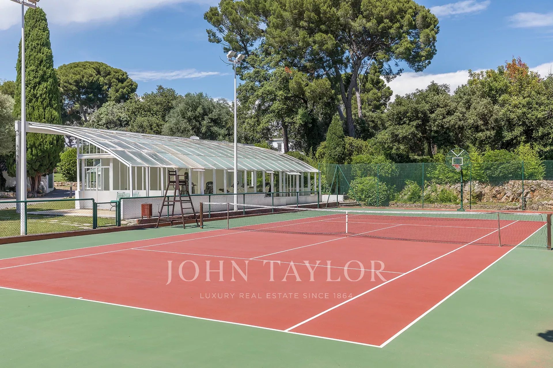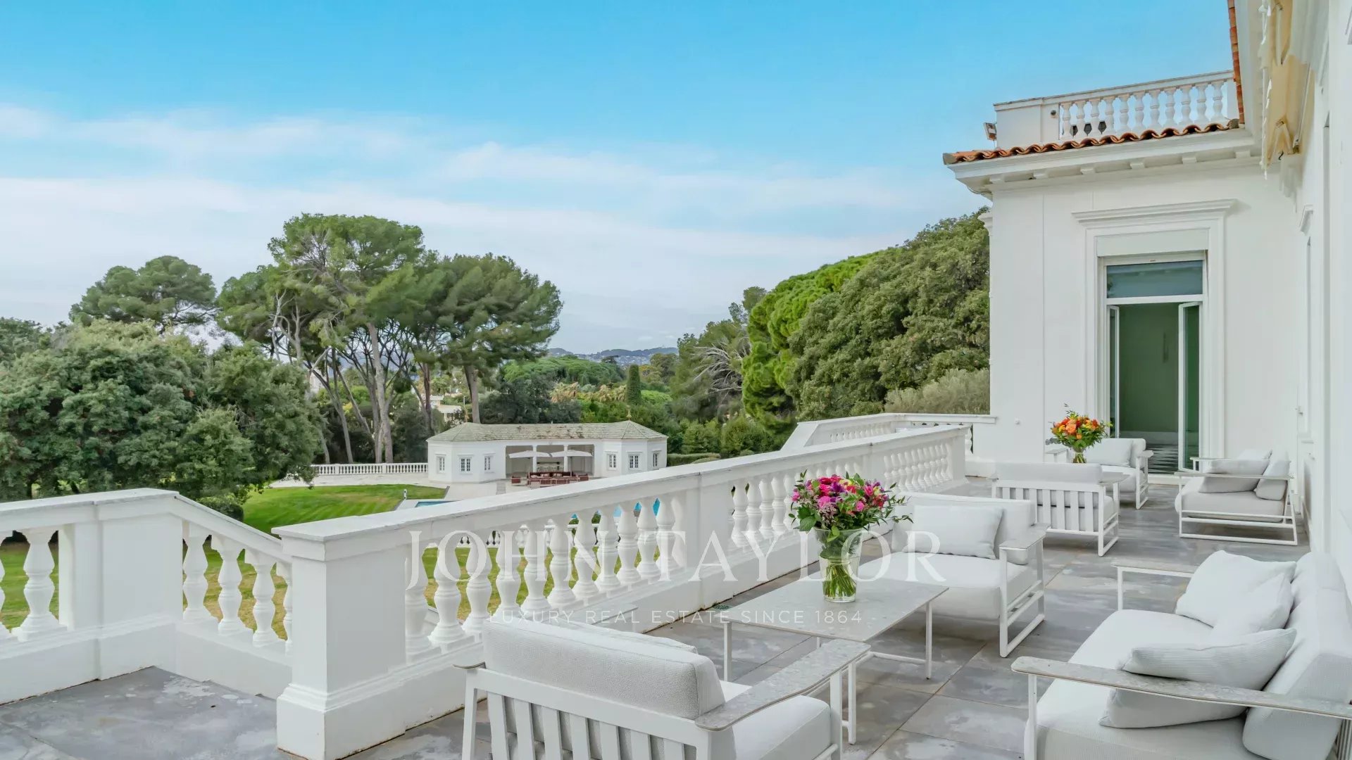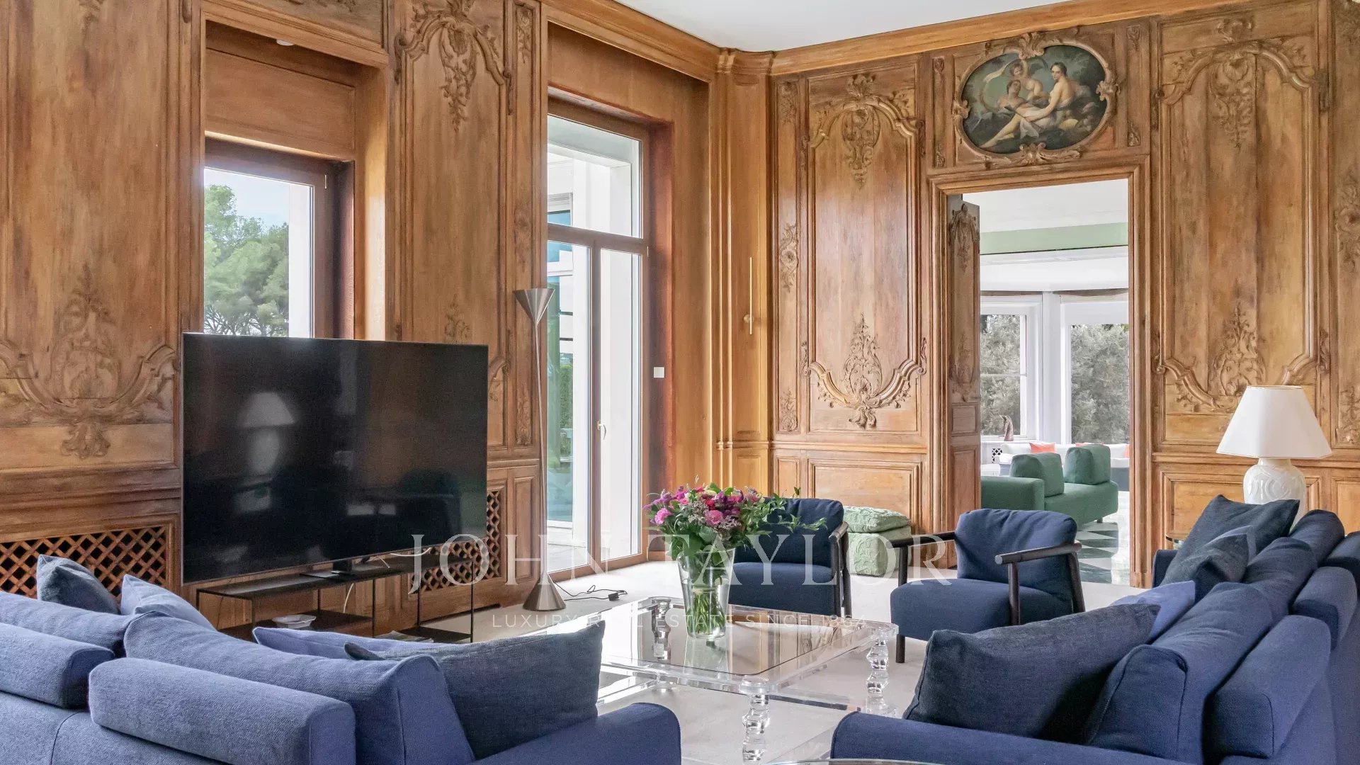 Dieses außergewöhnliche Anwesen ist ein hervorragendes Beispiel für die Architektur der 20er Jahre und liegt auf dem höchsten Punkt von Cap d'Antibes inmitten eines 4,5 Hektar großen Parks, der fast vollständig mit englischem Rasen bedeckt ist.