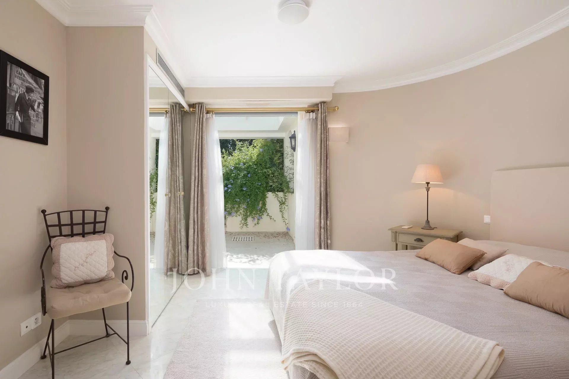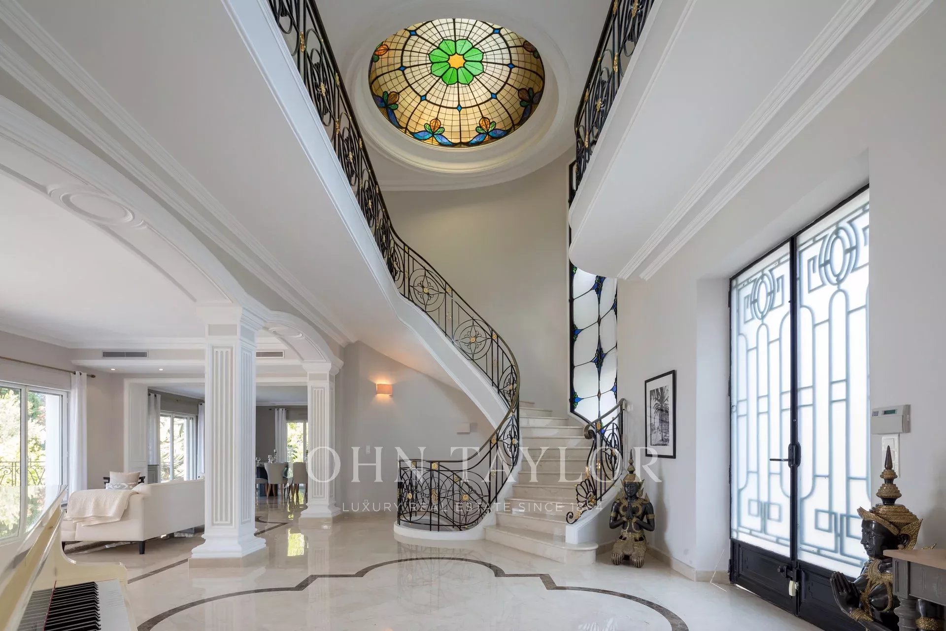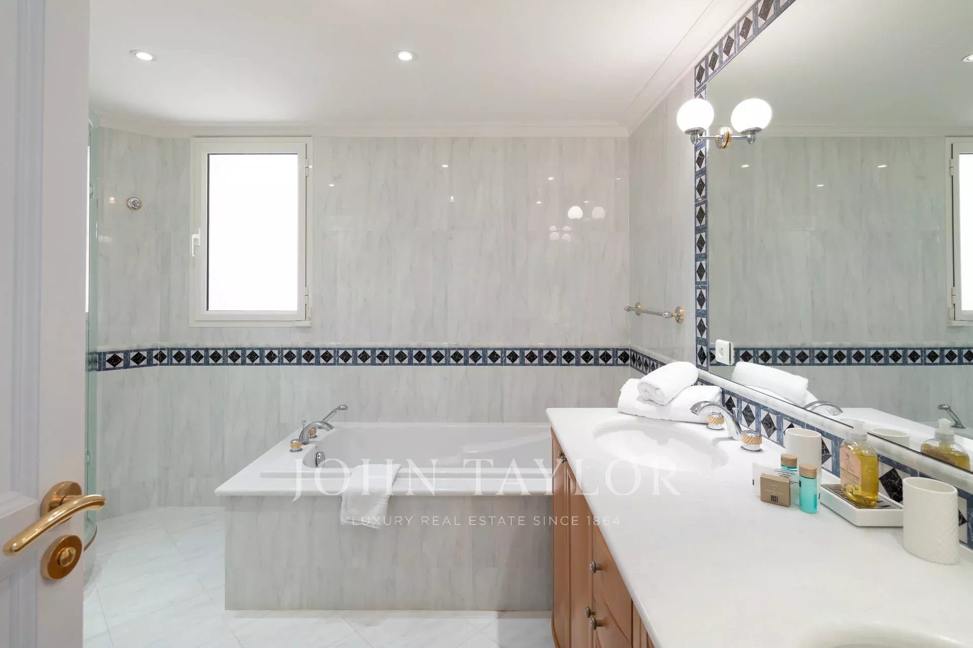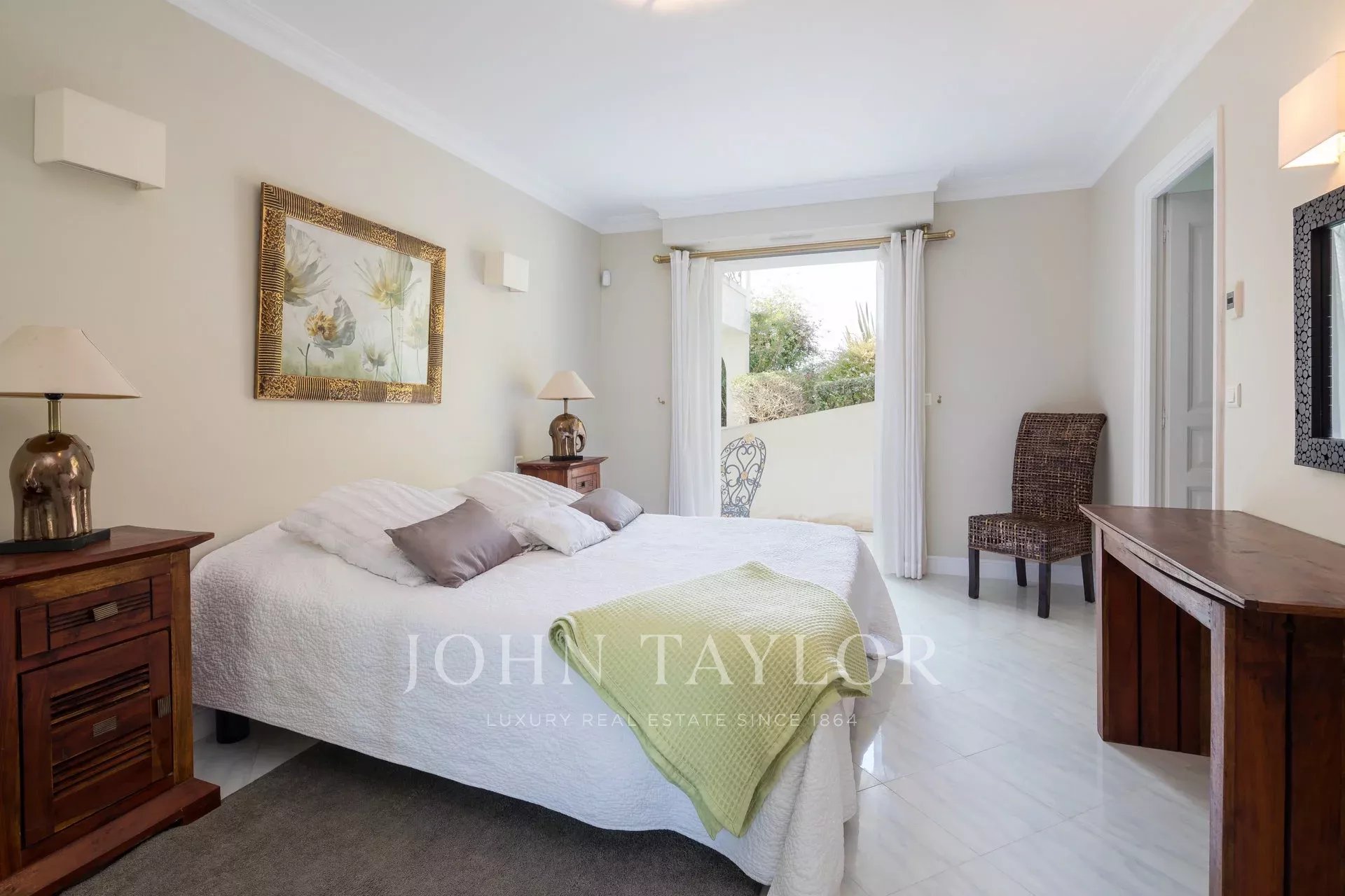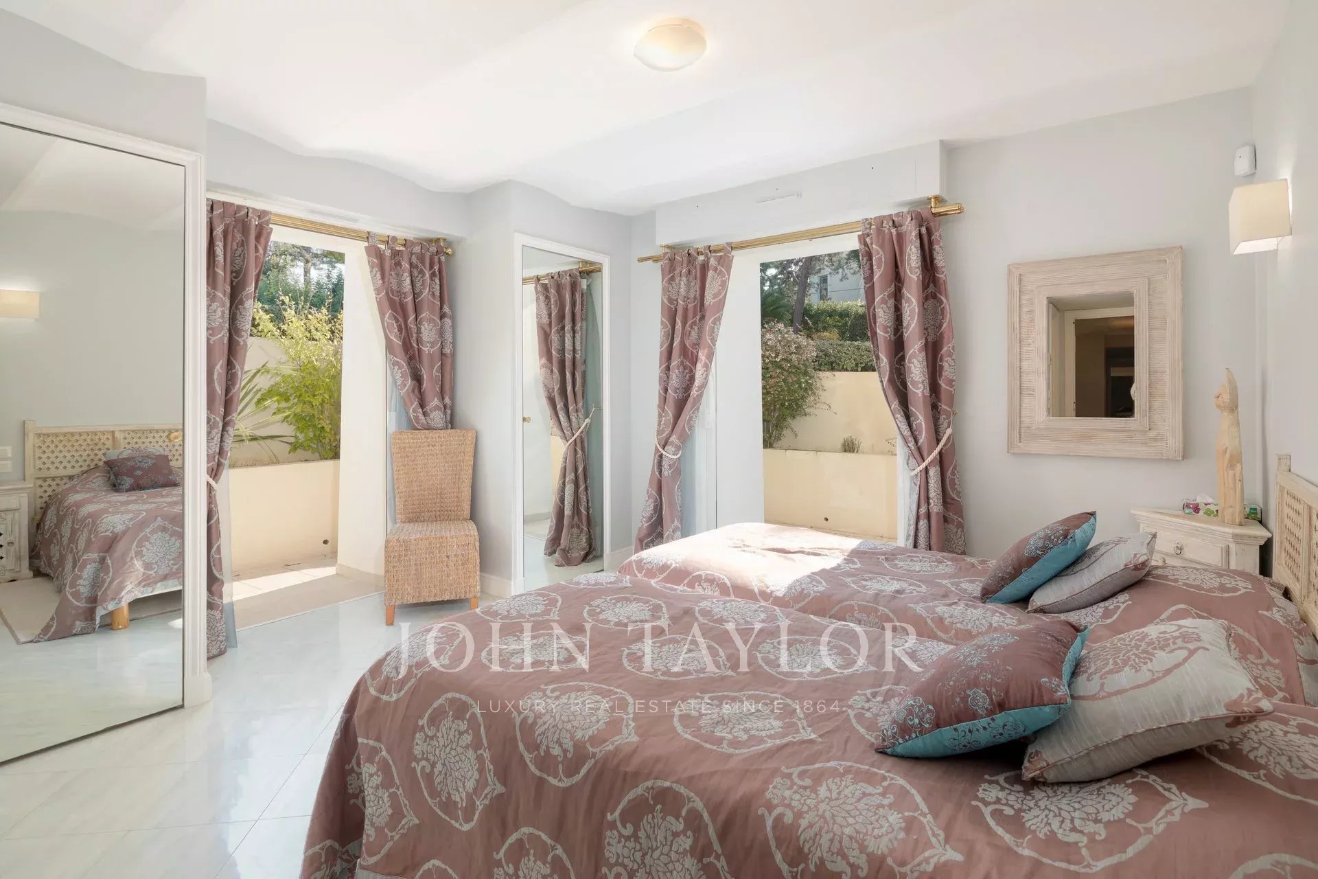 Wunderschönes Anwesen auf drei Ebenen am Rande des Boulevard du Littoral. Nur wenige Gehminuten vom Hotel Eden Roc entfernt, genießt es einen wunderschönen Blick auf die Bucht von Juan Les Pins, die Iles de Lérins und das Esterel-Gebirge. Es wurde vollständig renoviert und klimatisiert und ist von einem 9000 m2 großen, schön gestalteten Park mit Rasen, Blumen und sehr schönen Bäumen umgeben.