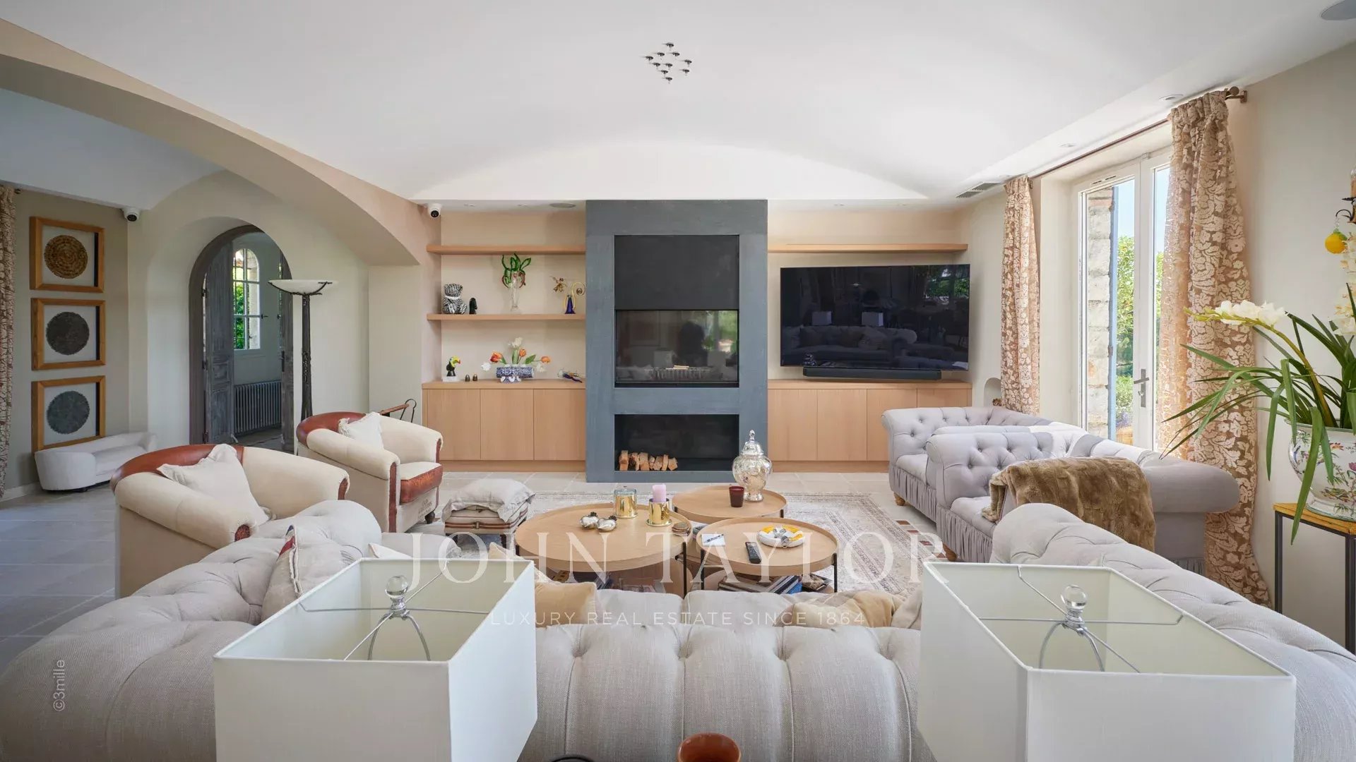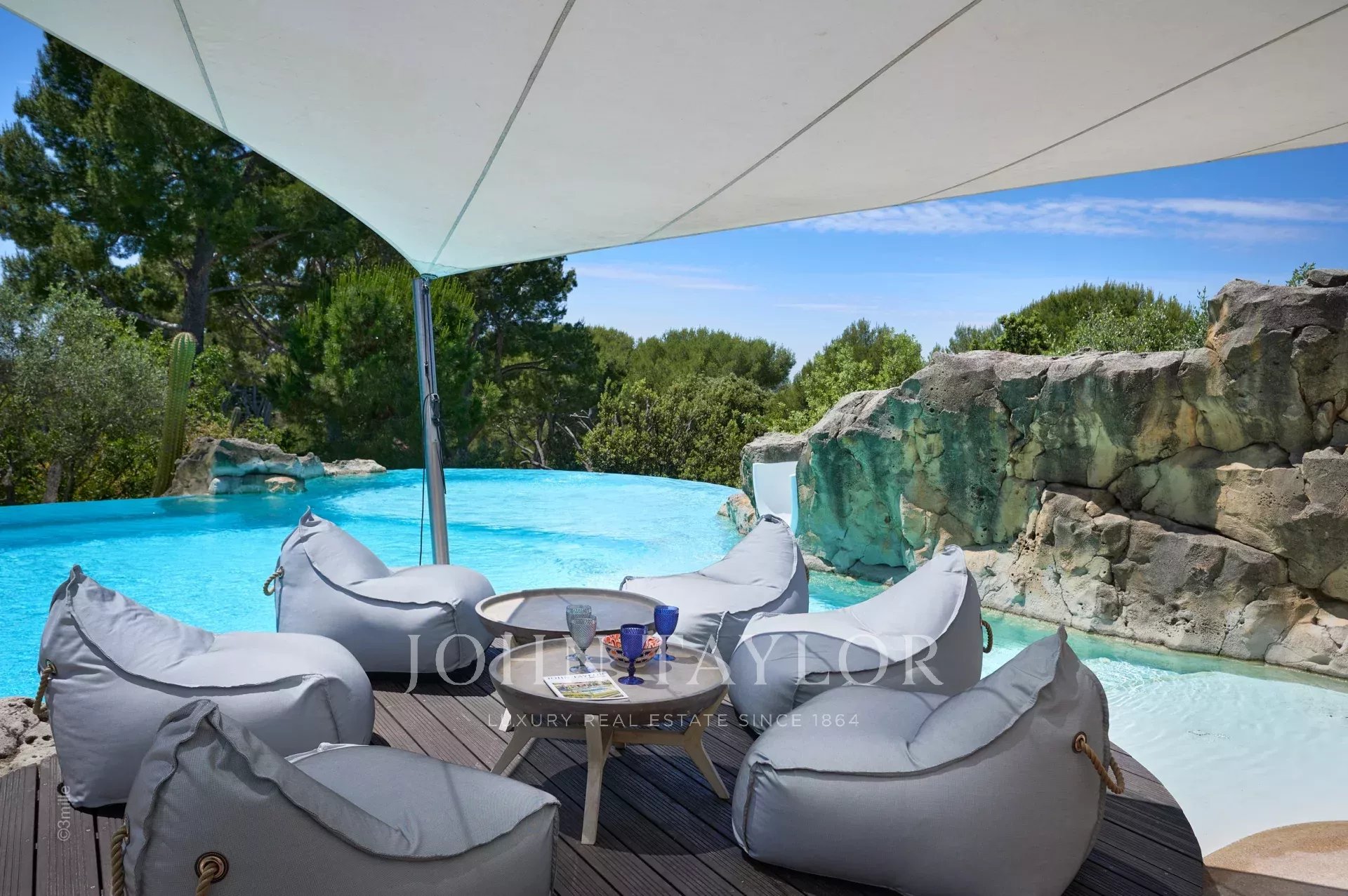 Wunderschöne Bastide von 720 m2 in einer der begehrtesten Gegenden von Cap d'Antibes, in der Nähe des Leuchtturms von La Garoupe, nur wenige Autominuten von den Stränden von Salis und dem Hafen von La Gallice entfernt. Das voll klimatisierte Anwesen ist eine Oase der Ruhe inmitten eines wunderschönen Parks von 8.800 m2 und bietet schöne Leistungen und eine sehr gepflegte Dekoration, ideal für einen Urlaub in absoluter Privatsphäre an der Côte d'Azur! Alle Räume sind hell und öffnen sich zu den Terrassen, die die Villa umgeben.
