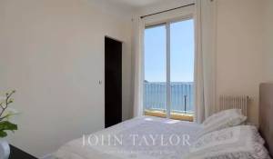 Schlafzimmer (Doppelbett), Ankleidezimmer, öffnet sich zur Terrasse, Meerblick.