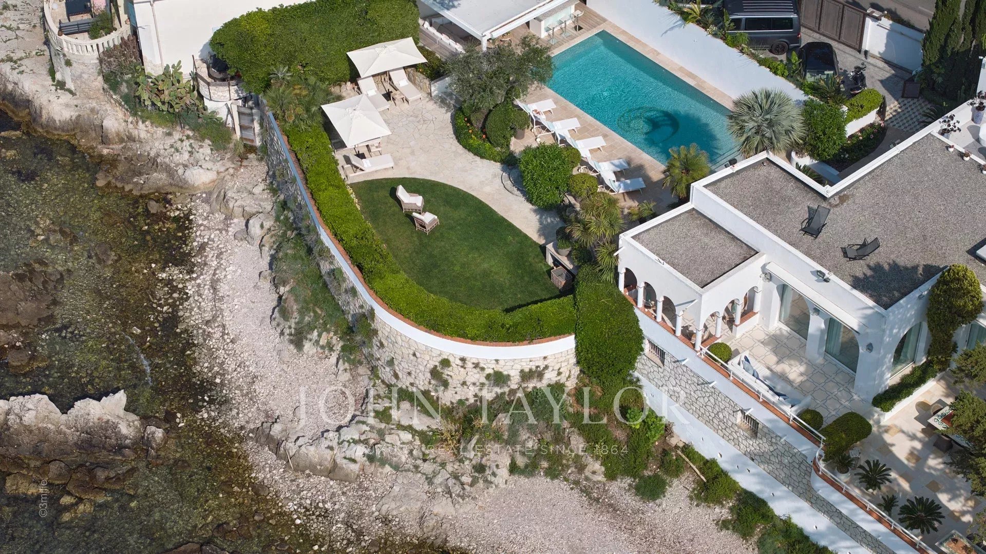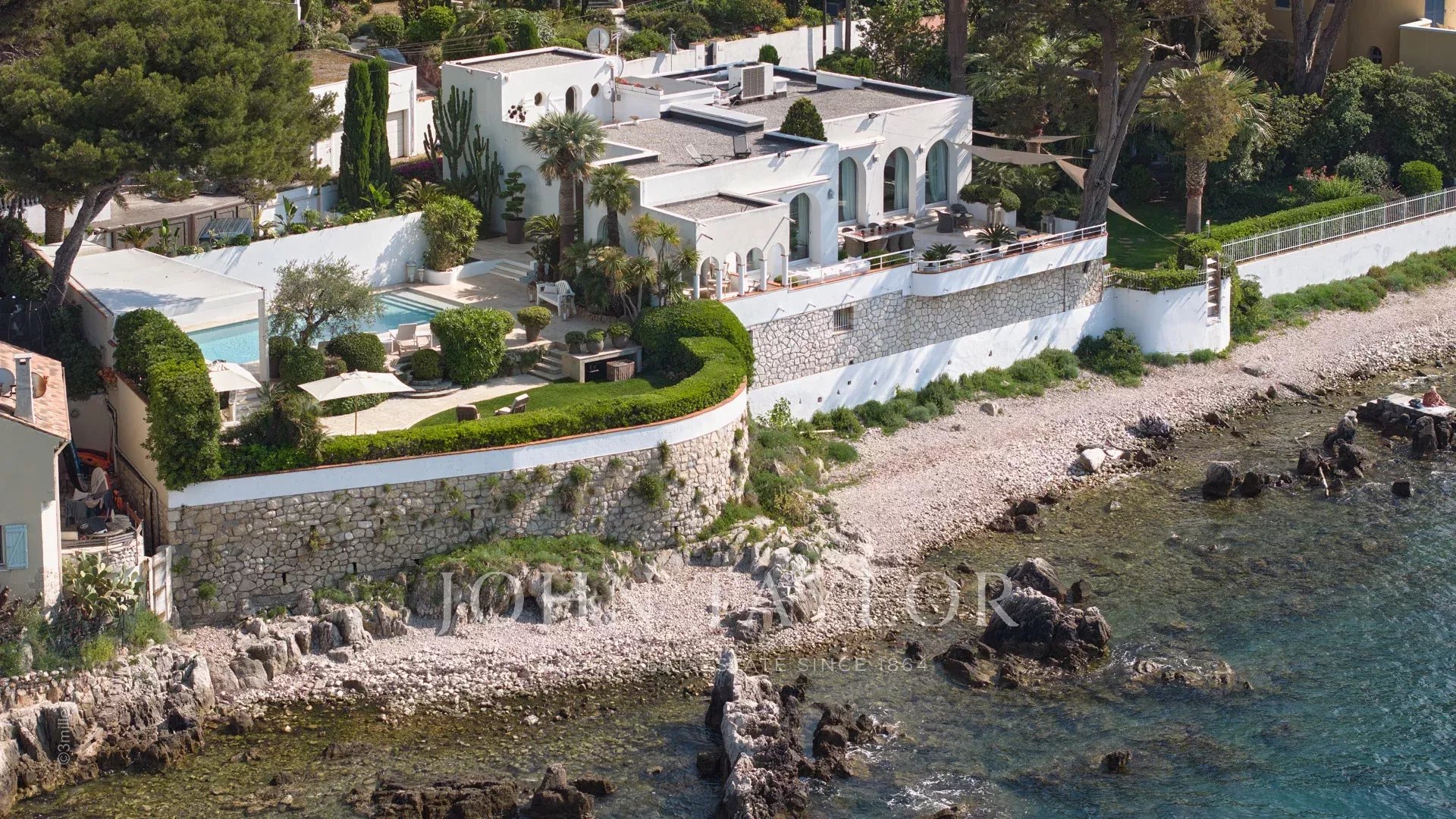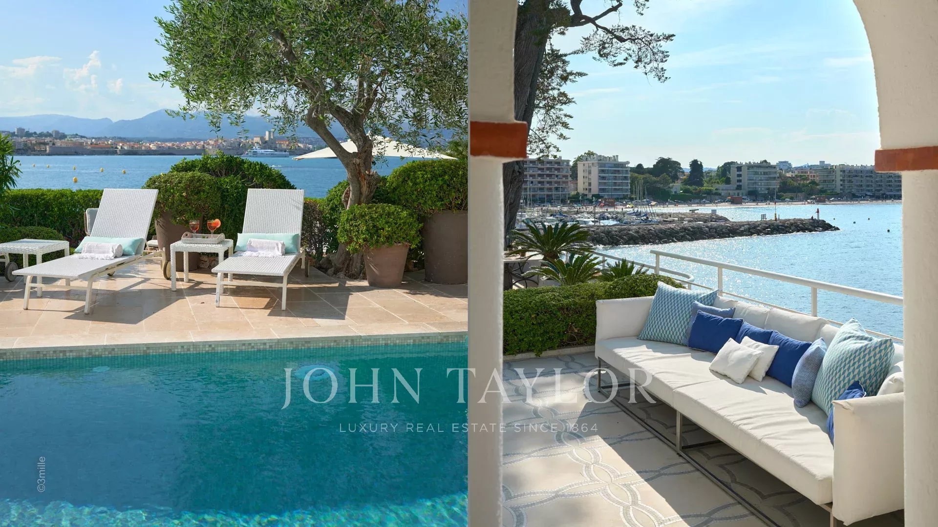 Entdecken Sie diese prächtige Villa "mit den Füßen im Wasser", die einen privaten Zugang zum Meer bietet und nur wenige Minuten zu Fuß vom Zentrum von Antibes oder seinen berühmten Restaurants wie "Le Bacon" entfernt liegt.