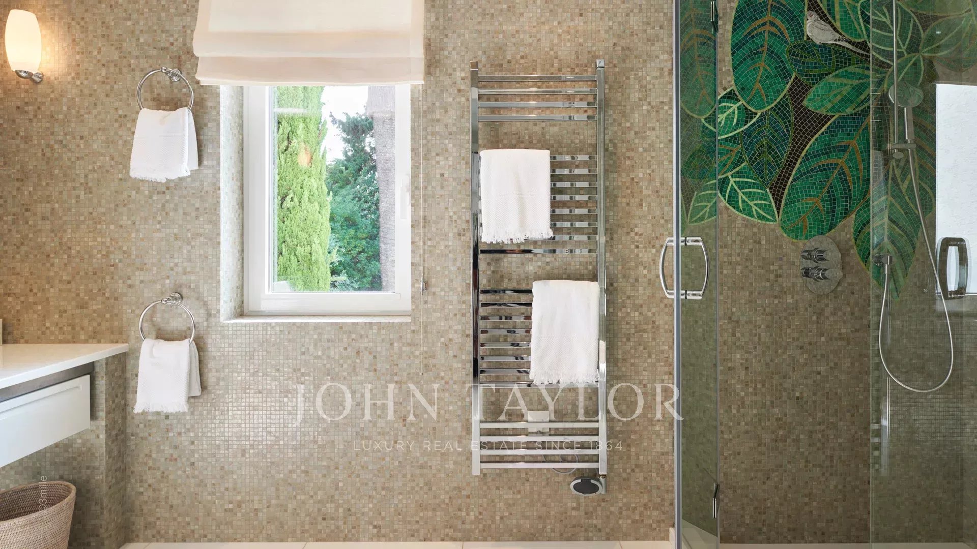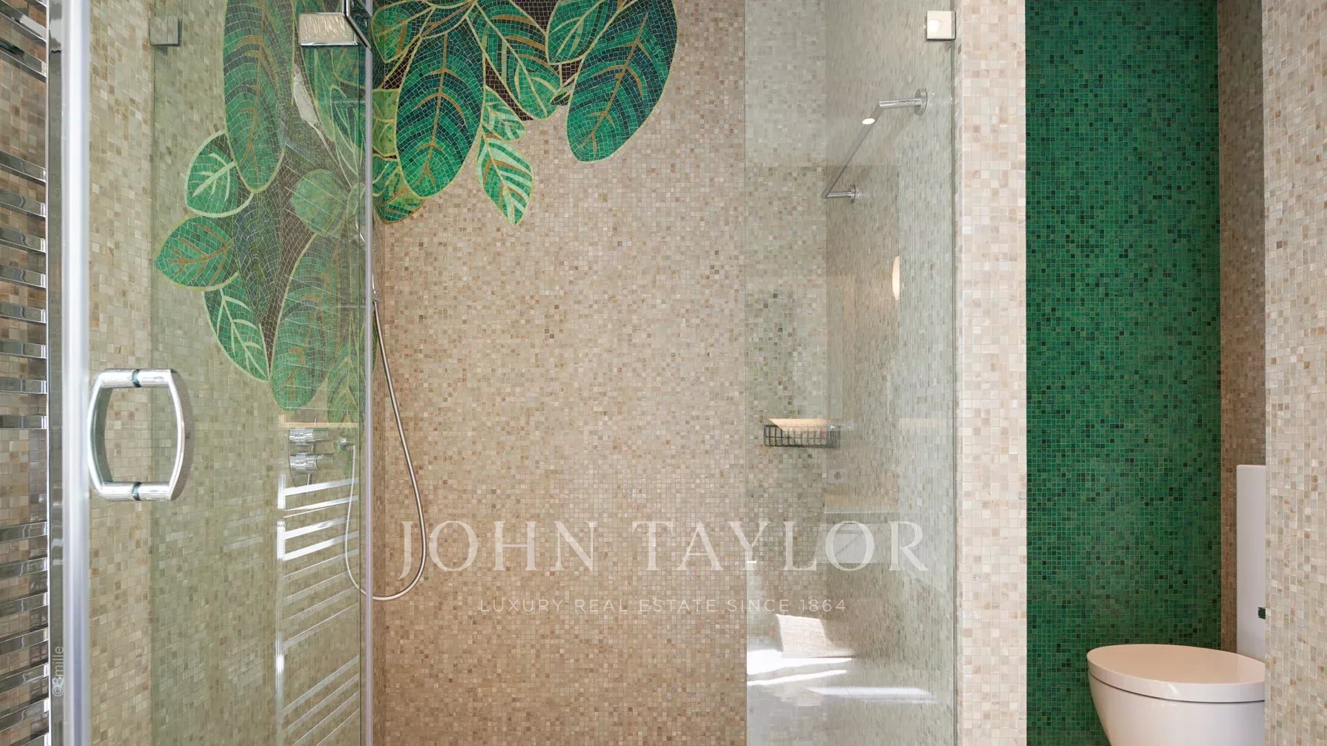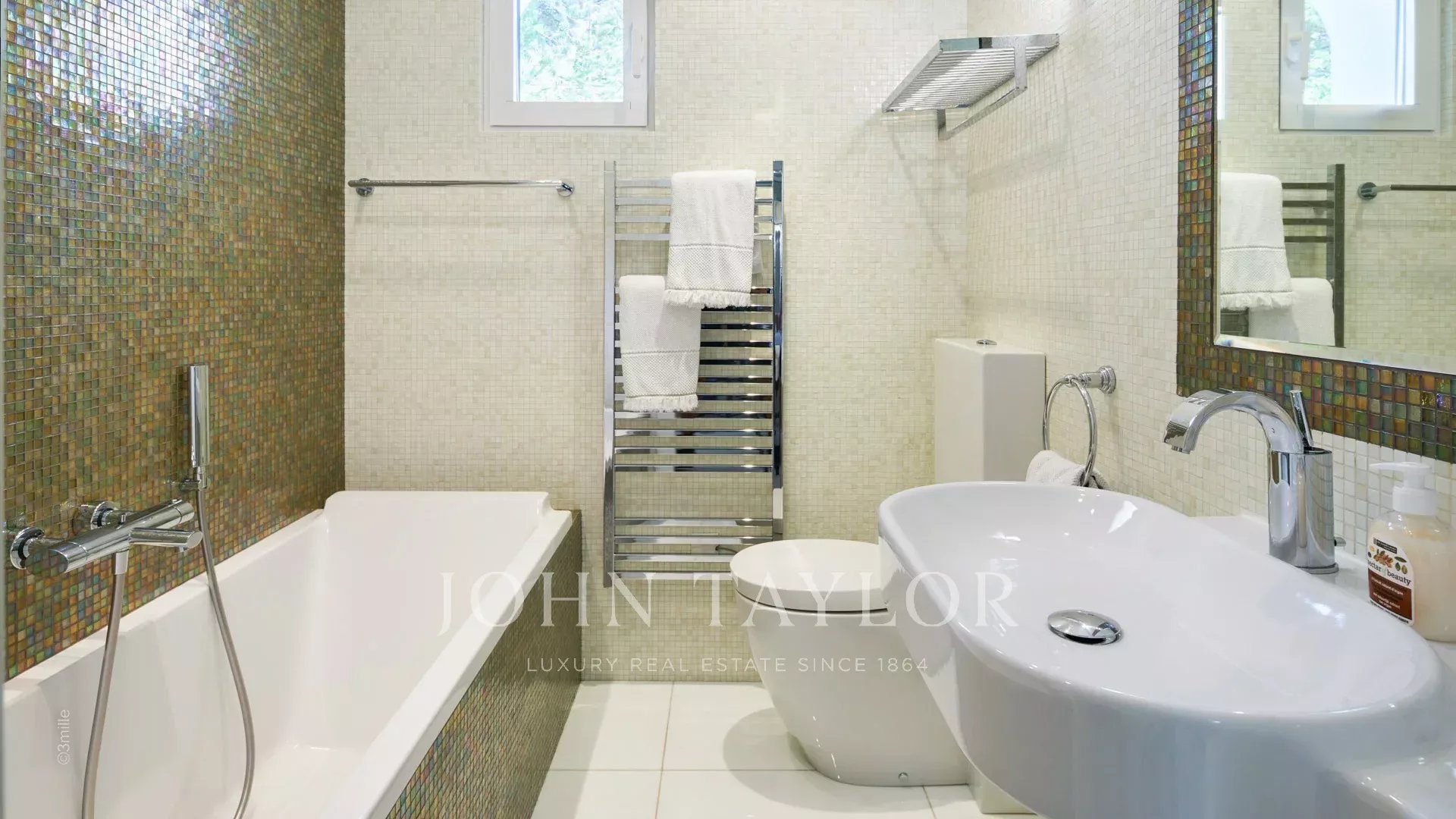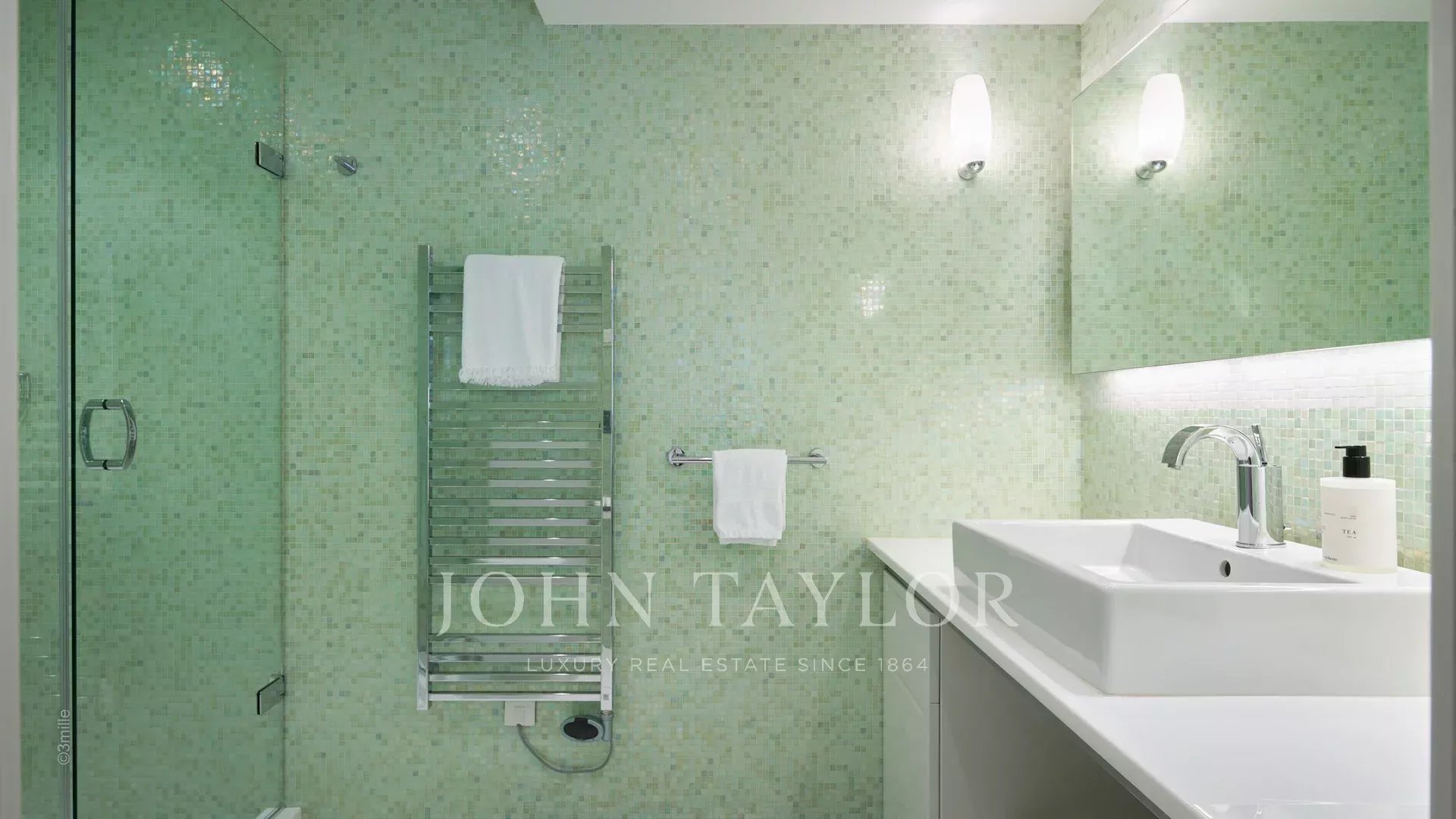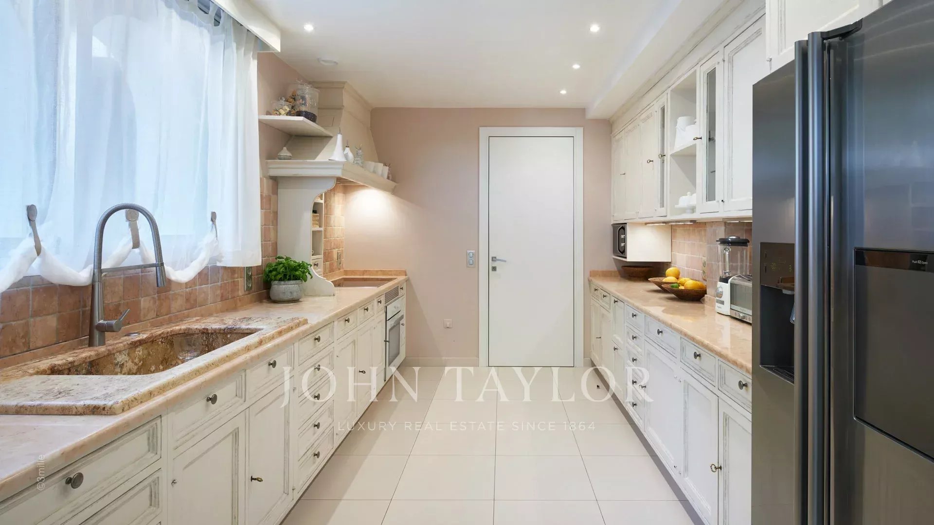 Der Eingang führt Sie in einen großen Empfangsbereich, der sich zu einer herrlichen Terrasse mit Blick auf das Meer und das alte Antibes öffnet und aus einem Wohn- und Esszimmer besteht, das 12 Personen Platz bietet.