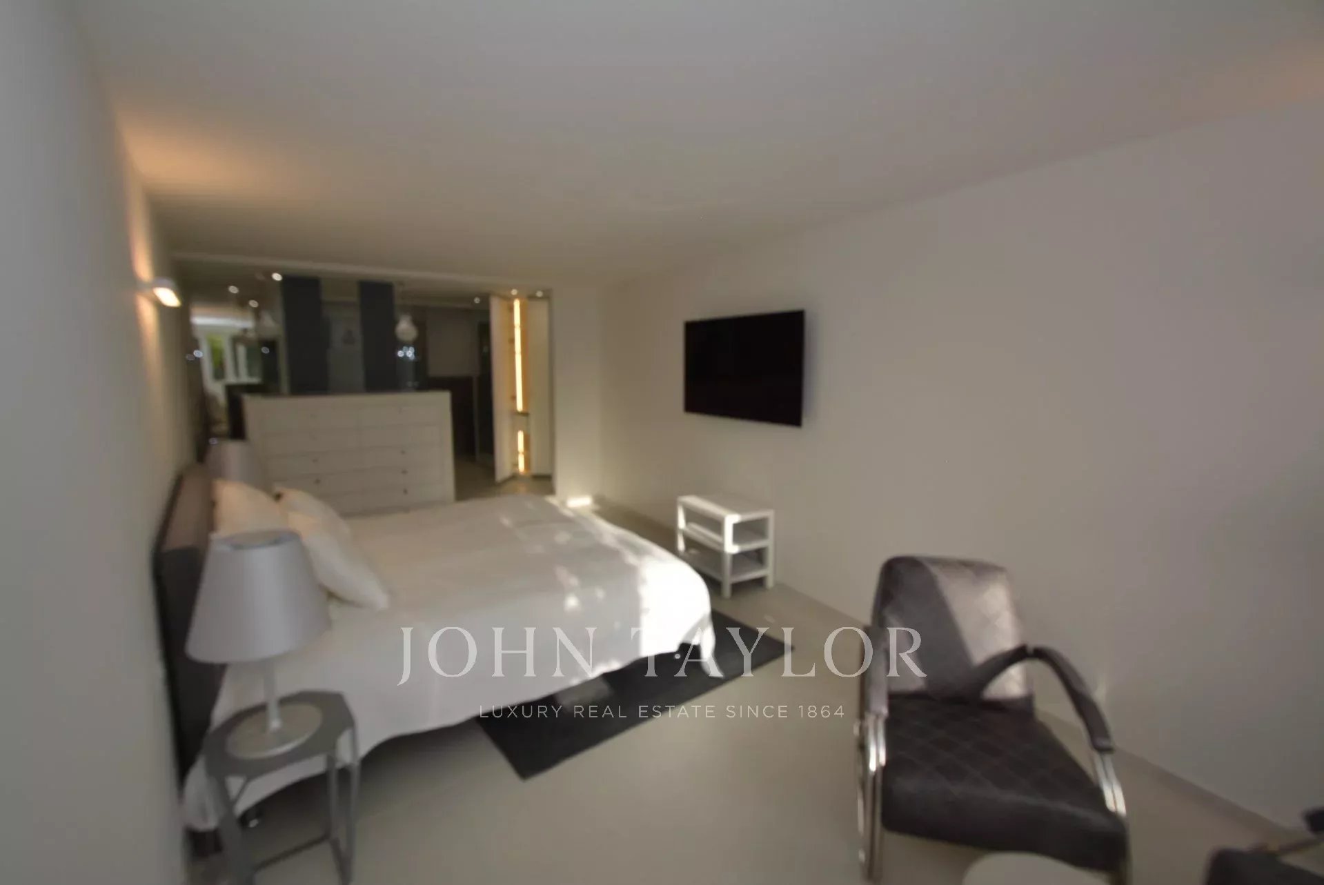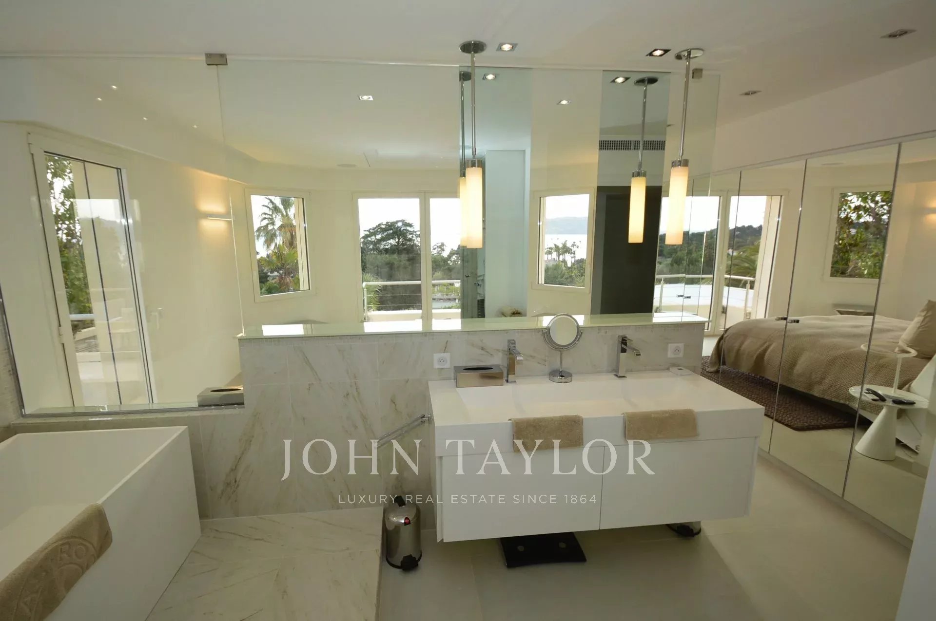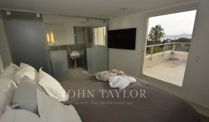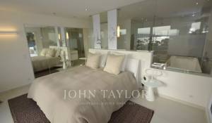 Hauptschlafzimmer (Doppelbett - Safe), TV, öffnet sich auf eine Terrasse mit Sommersalon, Bar-Ecke, Jacuzzi und Zugang zur Sonnenterrasse, Meerblick - Vollständiges Badezimmer / WC.