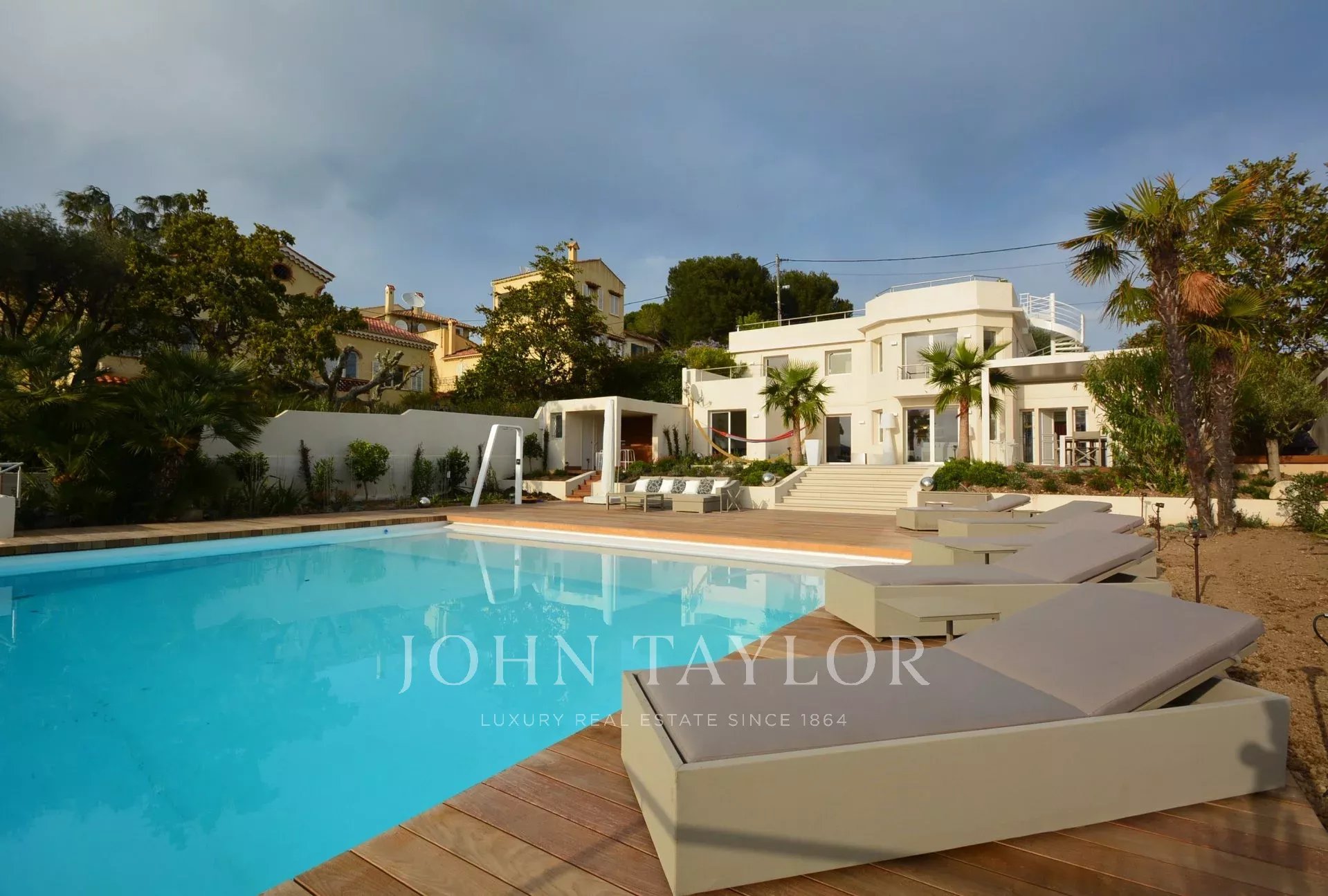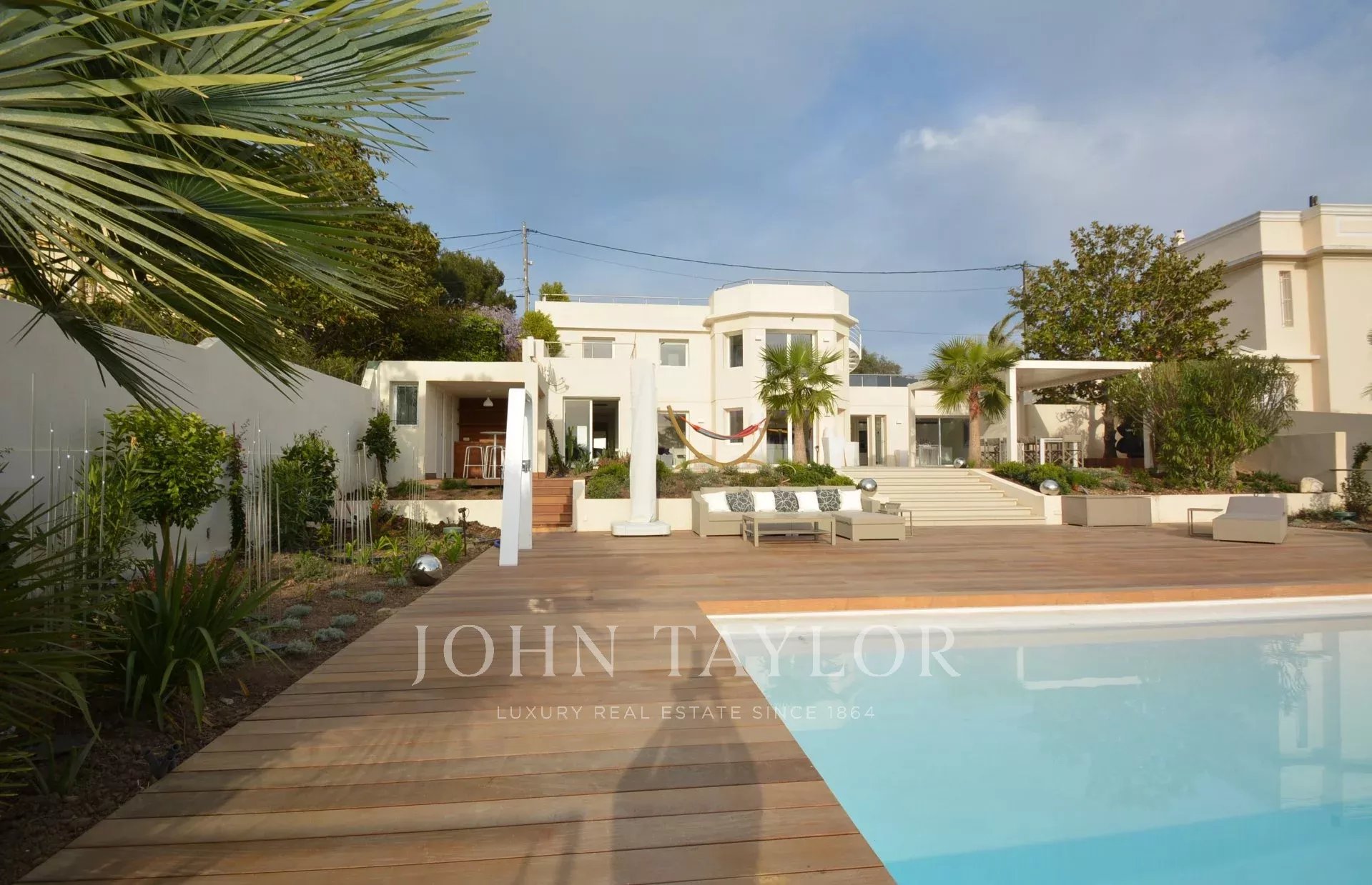 Am Westhang des Cap d'Antibes gelegen, im Herzen eines 1000 m2 großen Grundstücks, komplett renoviertes und klimatisiertes Anwesen, das einen schönen Meerblick genießt und mit 375 m2 Terrassen ausgestattet ist.