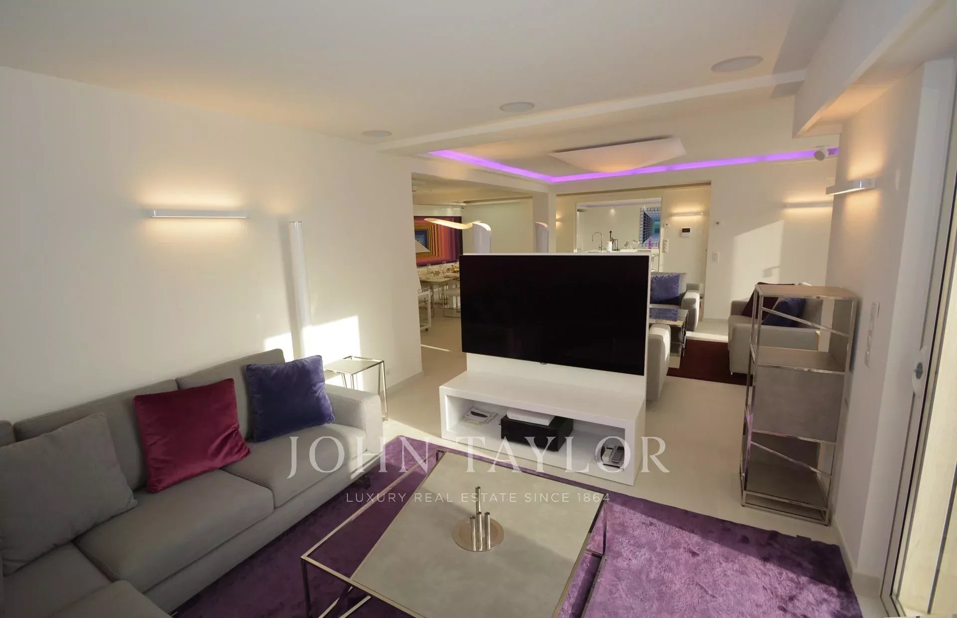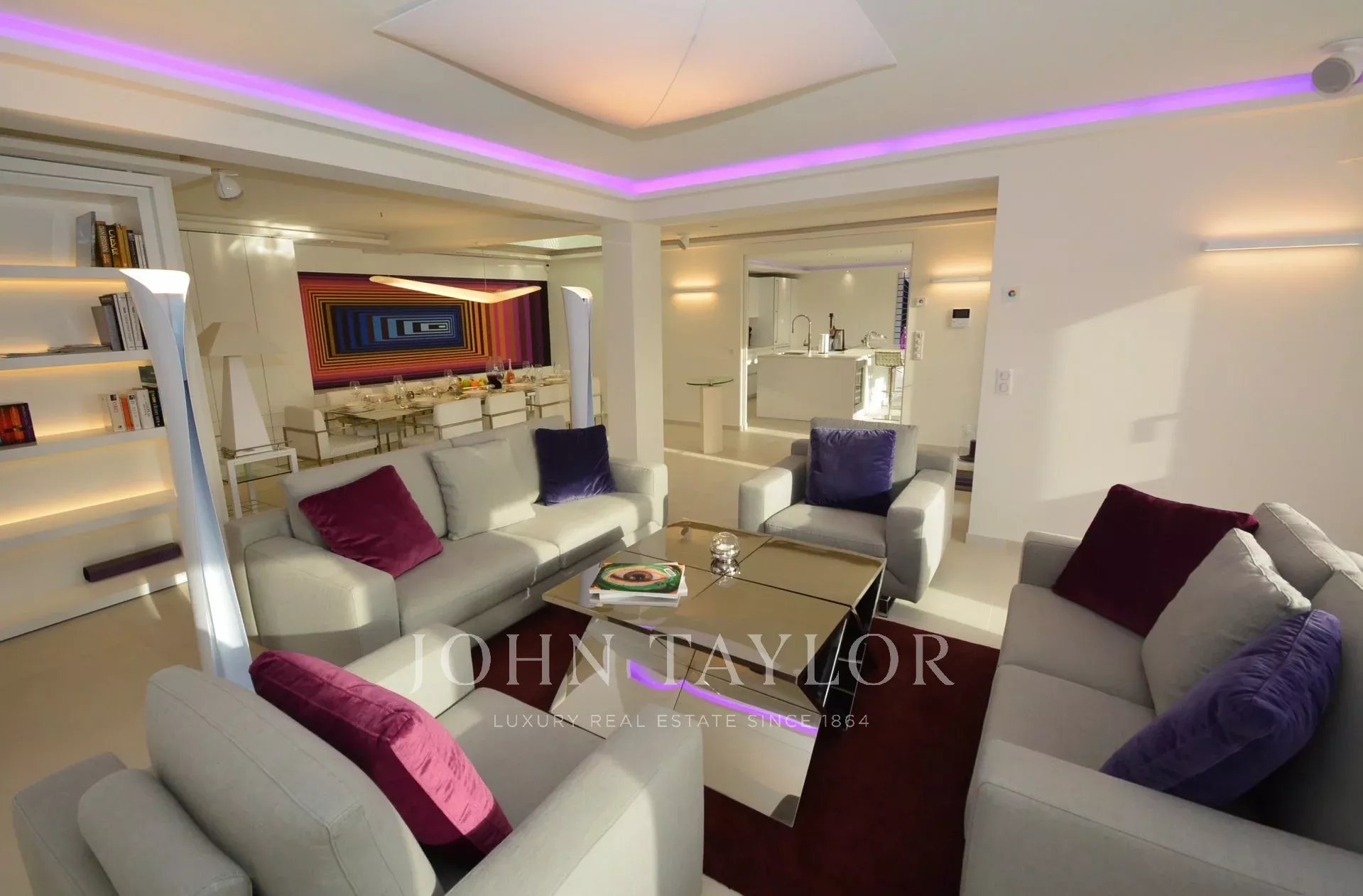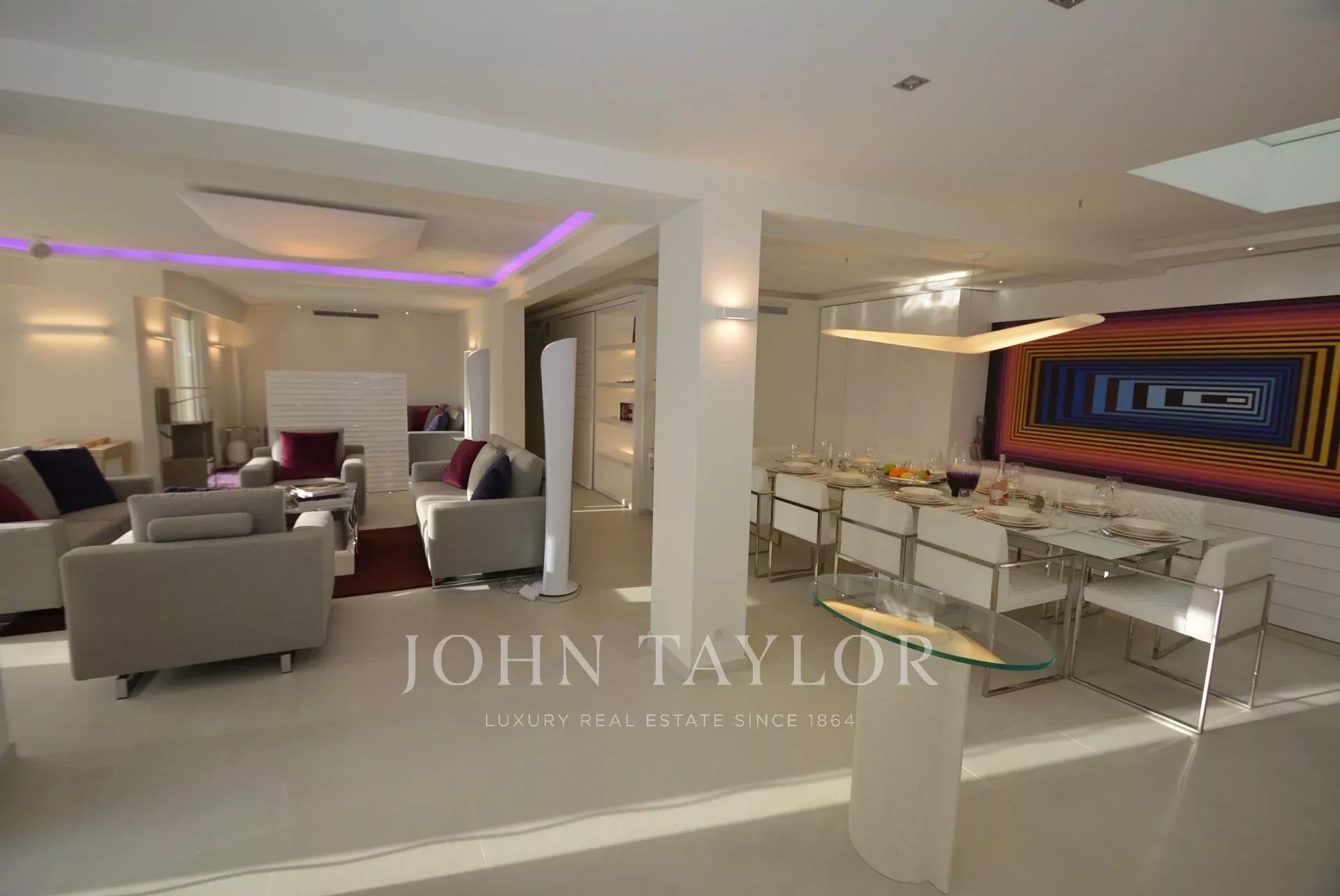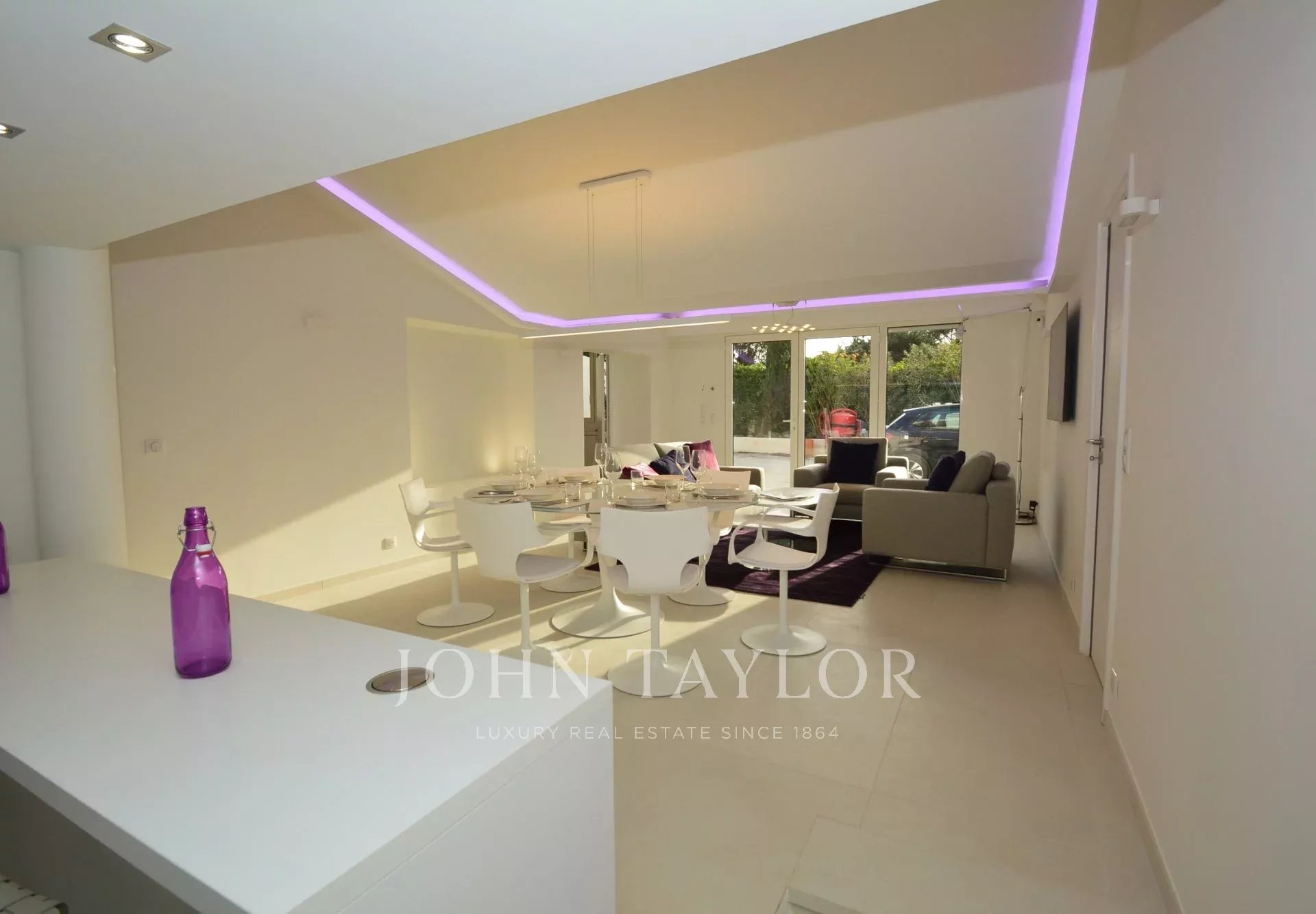 Eingang, der sich zu einem großen Empfangsbereich mit Wohnzimmer, Esszimmer (10 Personen), TV-Raum öffnet.