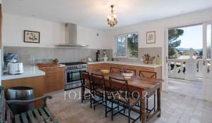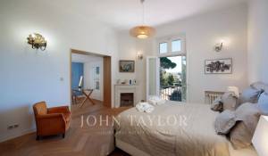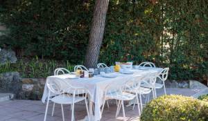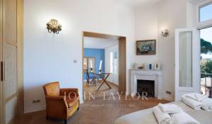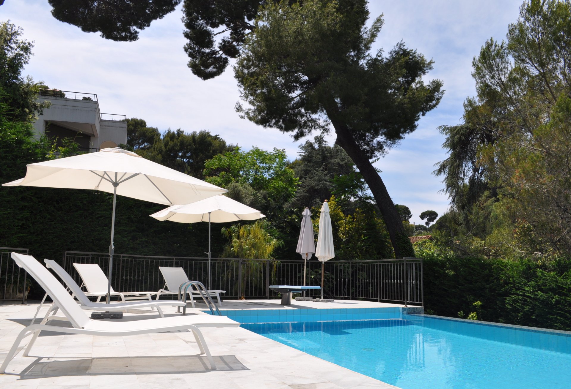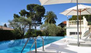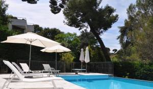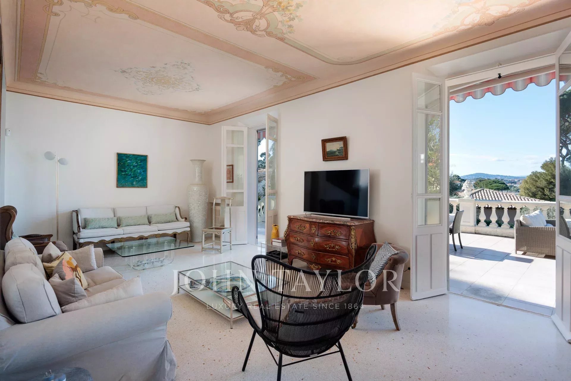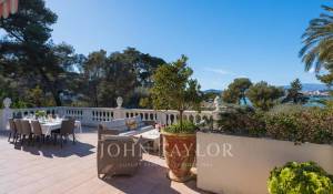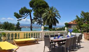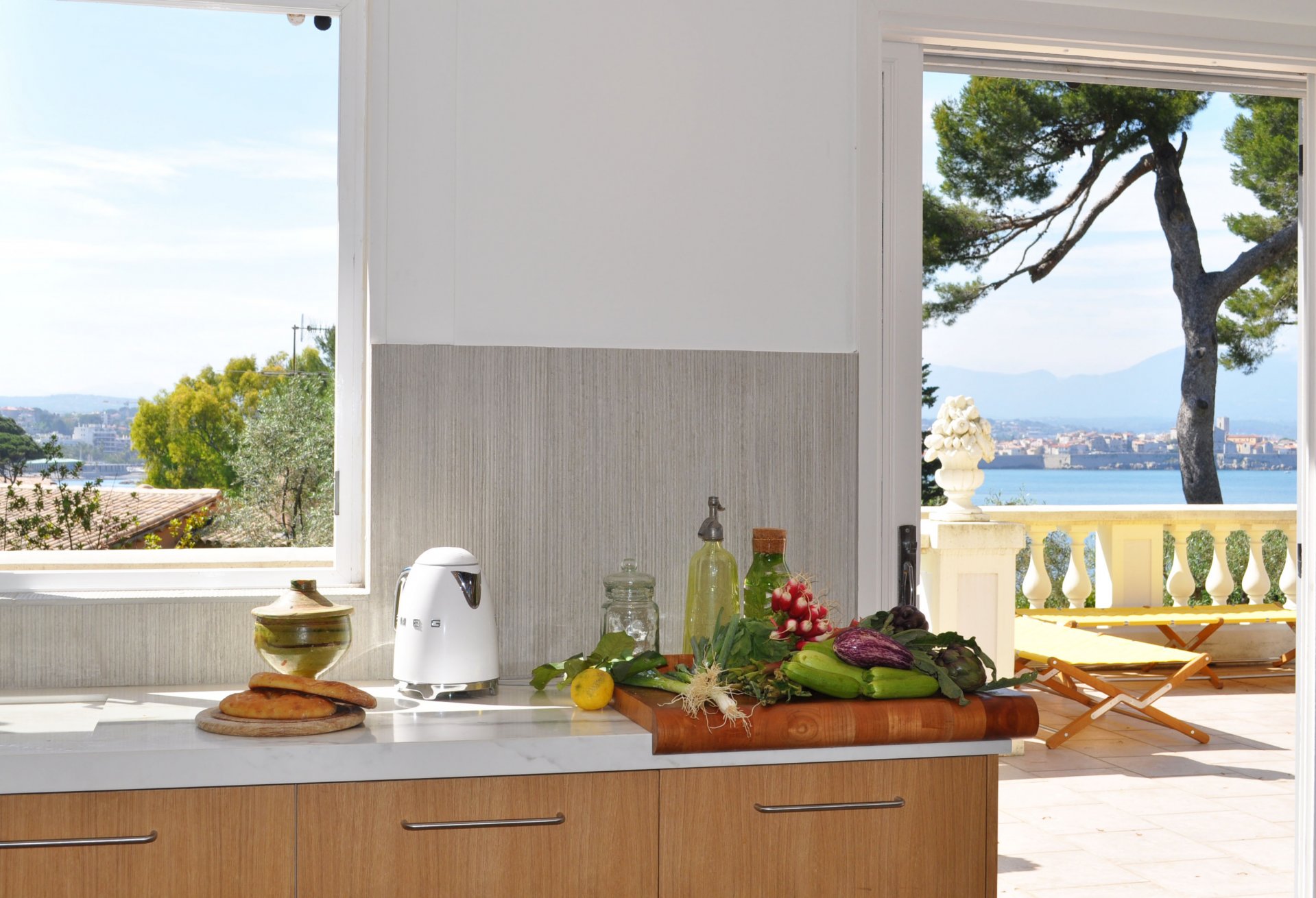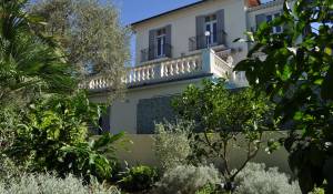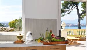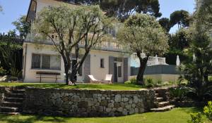 Inmitten eines Gartens, der die Essenzen der Côte d'Azur wie Zitrusfrüchte, Olivenbäume, Feigenbäume, Myrte und Jasmin, aber auch Kakteen und große Euphorbien enthält, genießt die Villa einen herrlichen Blick auf die Altstadt von Antibes und die Baie des Anges, die von den Alpen überragt werden.