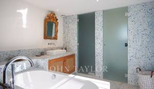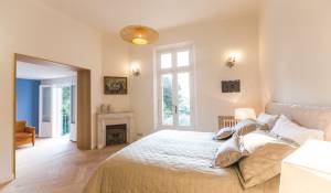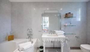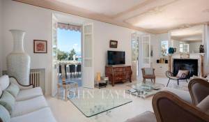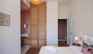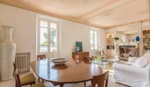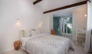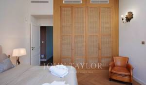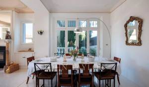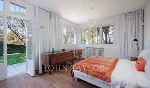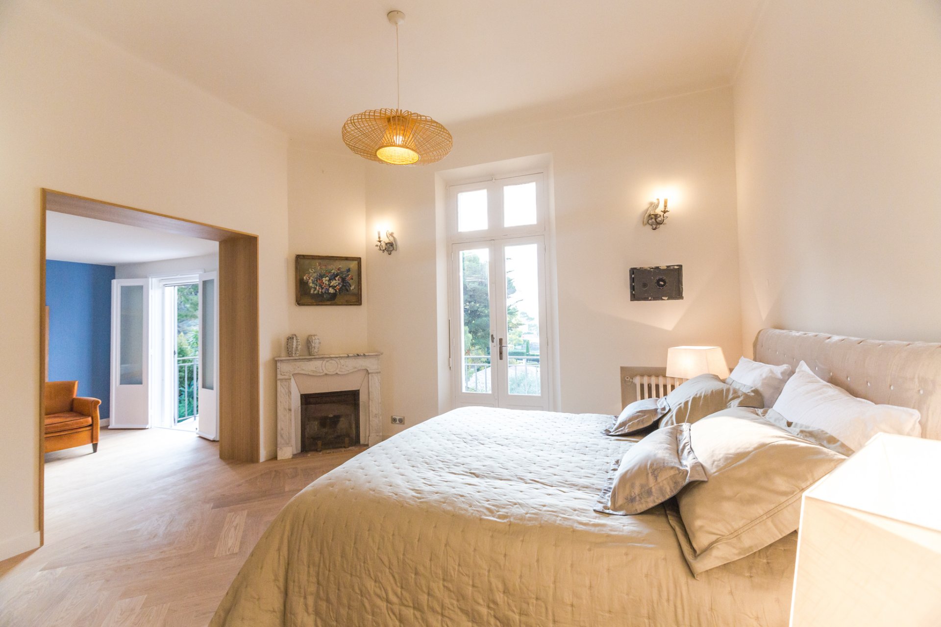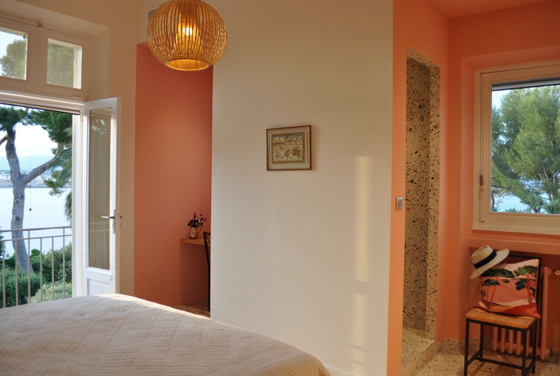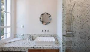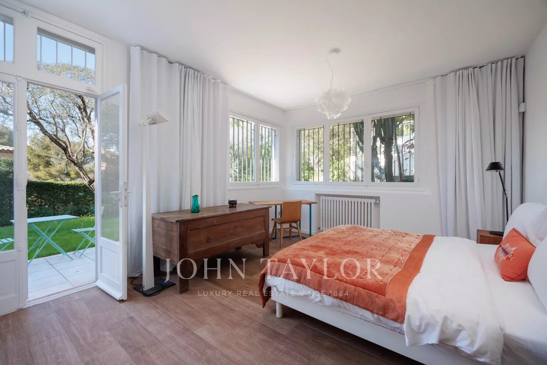 Diese Villa aus den 1930er Jahren in der Nähe der Strände von La Garoupe und La Salis wurde 2019 komplett renoviert und in einem schicken und zeitgenössischen Stil eingerichtet, wobei die Stilelemente der Ursprünge wie das Deckenfresko im Wohnzimmer respektiert wurden.