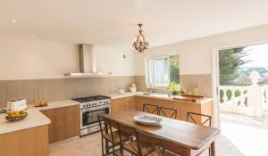 Perfekt ausgestattete Küche mit professionellem Klavier, Essecke, die sich zur Terrasse hin öffnet.