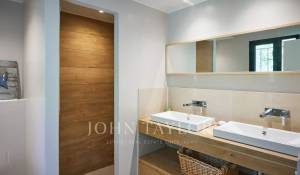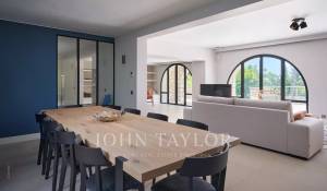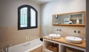 Auf den Höhen von Golfe-Juan, 10 Autominuten von den Stränden und Restaurants entfernt, in einem Wohnviertel, schöne provenzalische Villa, komplett renoviert und klimatisiert, mit 300 m2 Wohnfläche auf drei Ebenen, im Herzen eines flachen Grundstücks von 3.000 m2. Kleiner Meerblick.