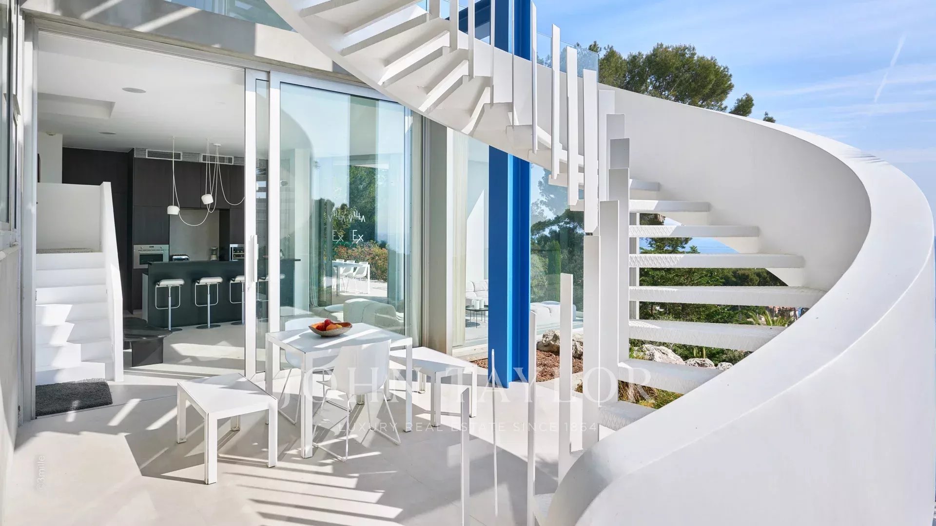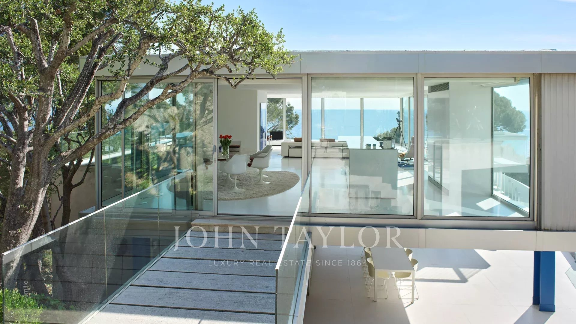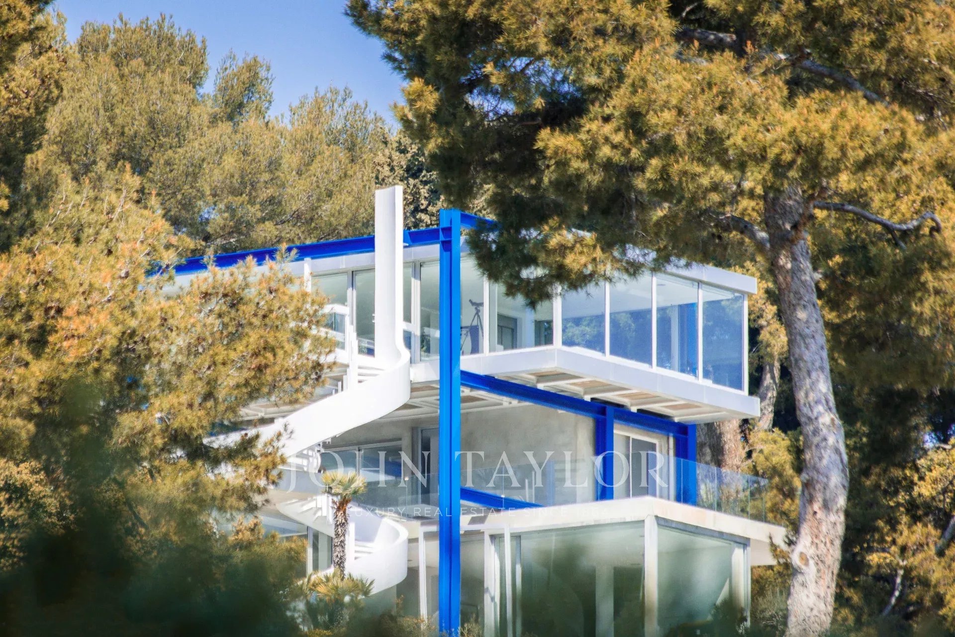 In einem der begehrtesten Viertel von Cap d'Antibes, in der Nähe des Leuchtturms von La Garoupe und nur wenige Autominuten von den Stränden Plages de la Salis und Port de la Gallice entfernt, liegt diese wunderschöne moderne Villa, die 1966 von dem berühmten Architekten Claude Parent erbaut wurde. Sie ist komplett renoviert, klimatisiert und nach Süden ausgerichtet. Sie bietet einen herrlichen Panoramablick auf die Bucht von Cap d'Antibes und die Stadt.