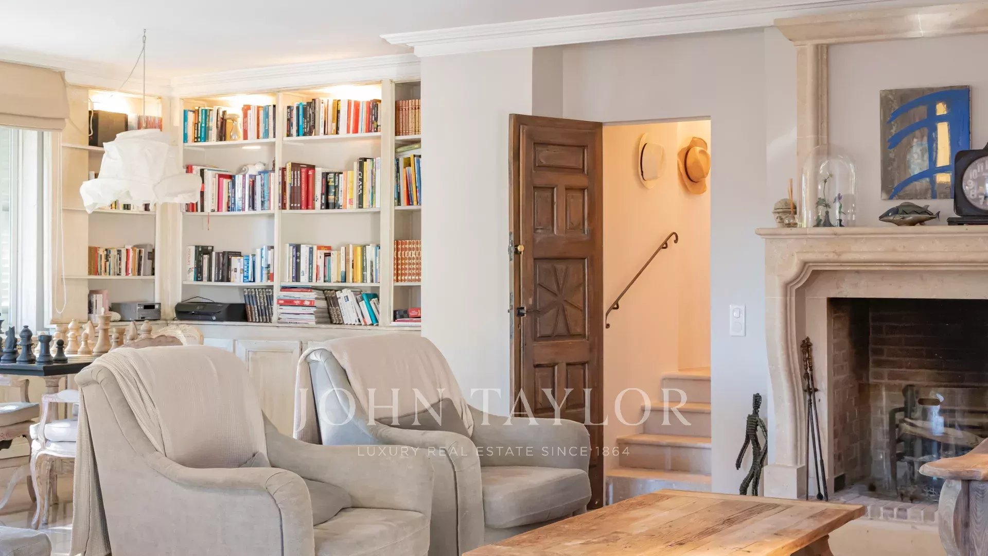 Im Erdgeschoss: eine Eingangshalle, ein dreifaches offenes Wohnzimmer mit Kamin, Esszimmer, Bibliothek und eine offene amerikanische Küche. Eine Waschküche, ein Badezimmer und ein klimatisierter Weinkeller.