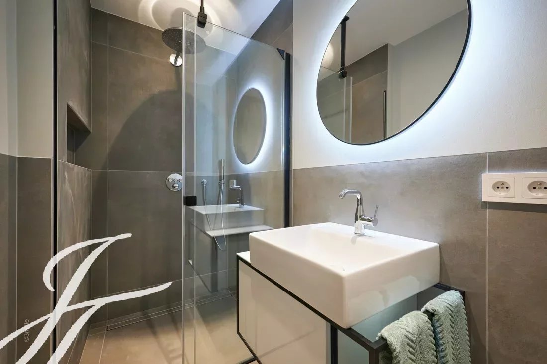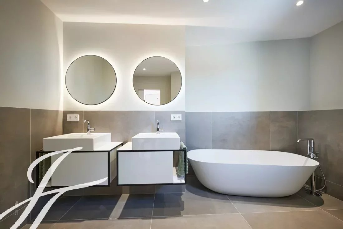 Im ersten Stock befindet sich ein Schlafzimmer (Nr. 5) en suite mit Zugang zur Terrasse und Badezimmer sowie ein zweites Schlafzimmer (Nr. 6) en suite mit Ankleidezimmer und Badezimmer.