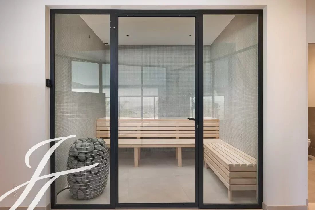 Im Außenbereich befinden sich ein Infinity-Pool, ein Paddle-Tennisplatz, ein Gasgrill, Terrassen und Entspannungsbereiche.