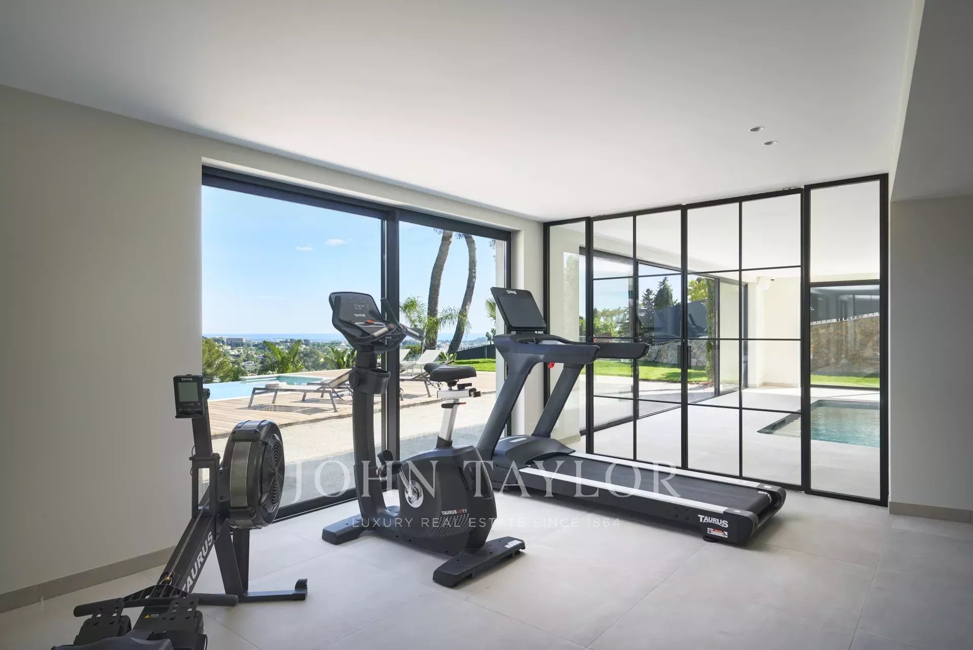 Das Gartengeschoss verfügt über einen Innenpool, einen Fitnessraum, eine Sauna, einen Duschraum, ein erstes Schlafzimmer (Nr. 1) en suite mit zwei Betten (90cm) oder einem großen Bett (180cm) mit Zugang zur Terrasse, ein weiteres Schlafzimmer (Nr. 2) mit zwei Betten (90cm) oder einem großen Bett (180cm) und ein drittes Schlafzimmer (Nr. 3) en suite mit zwei Betten (90cm) oder einem großen Bett (180cm), einen Heizungsraum.
