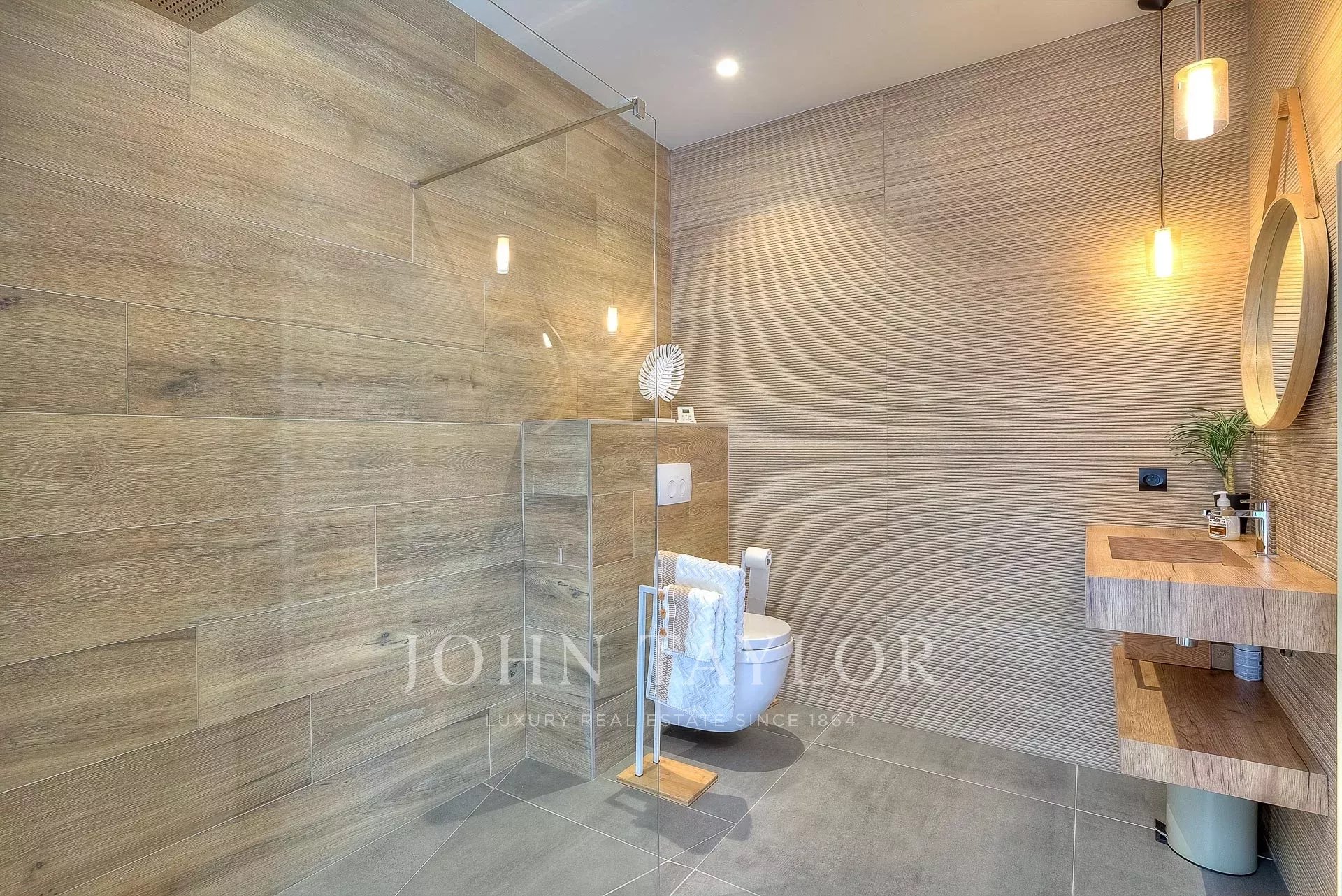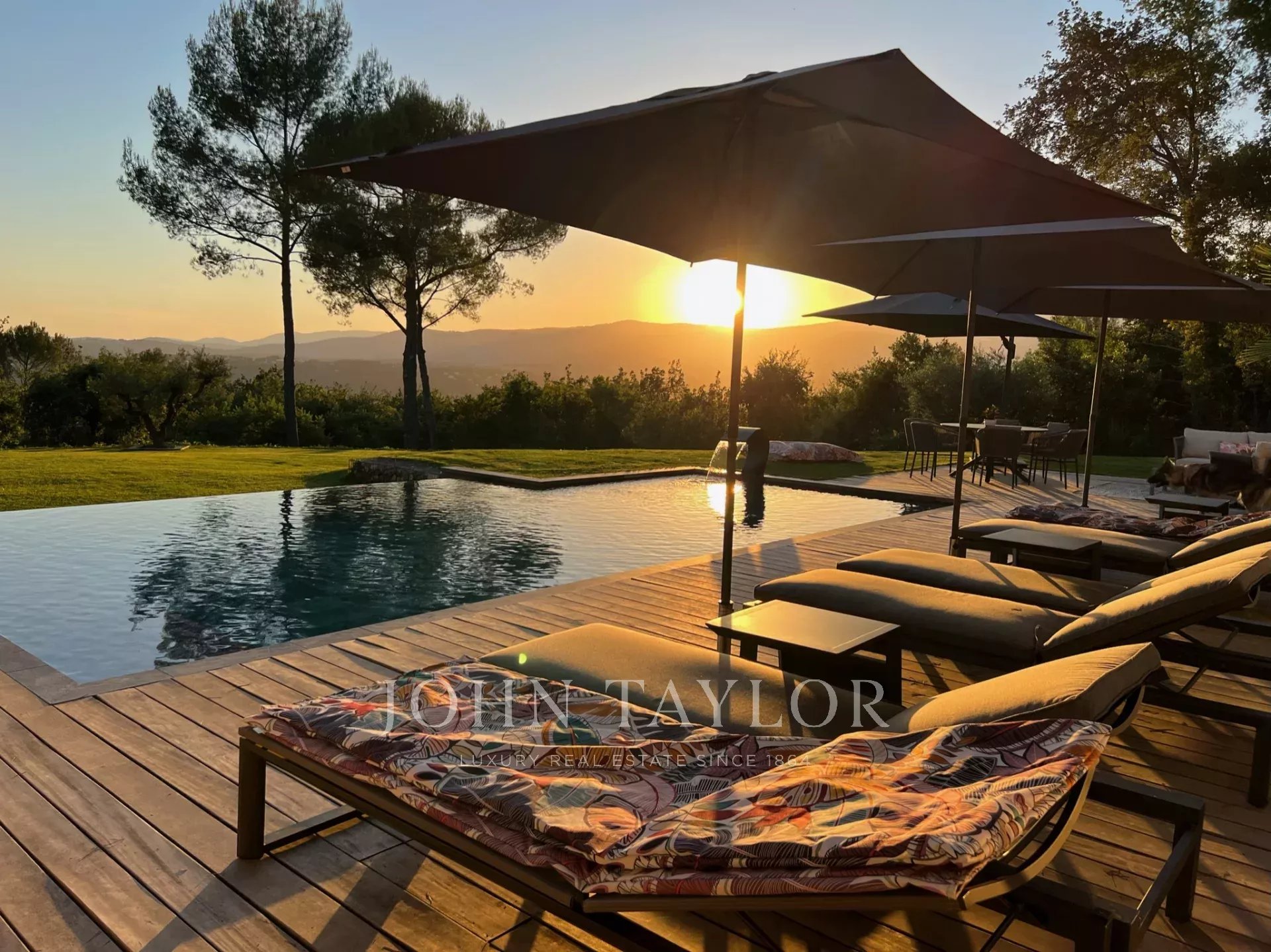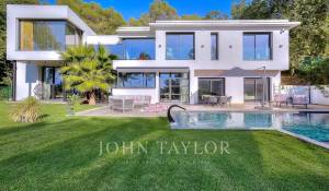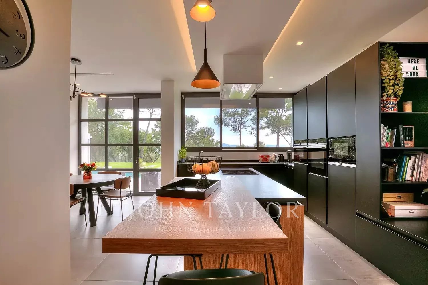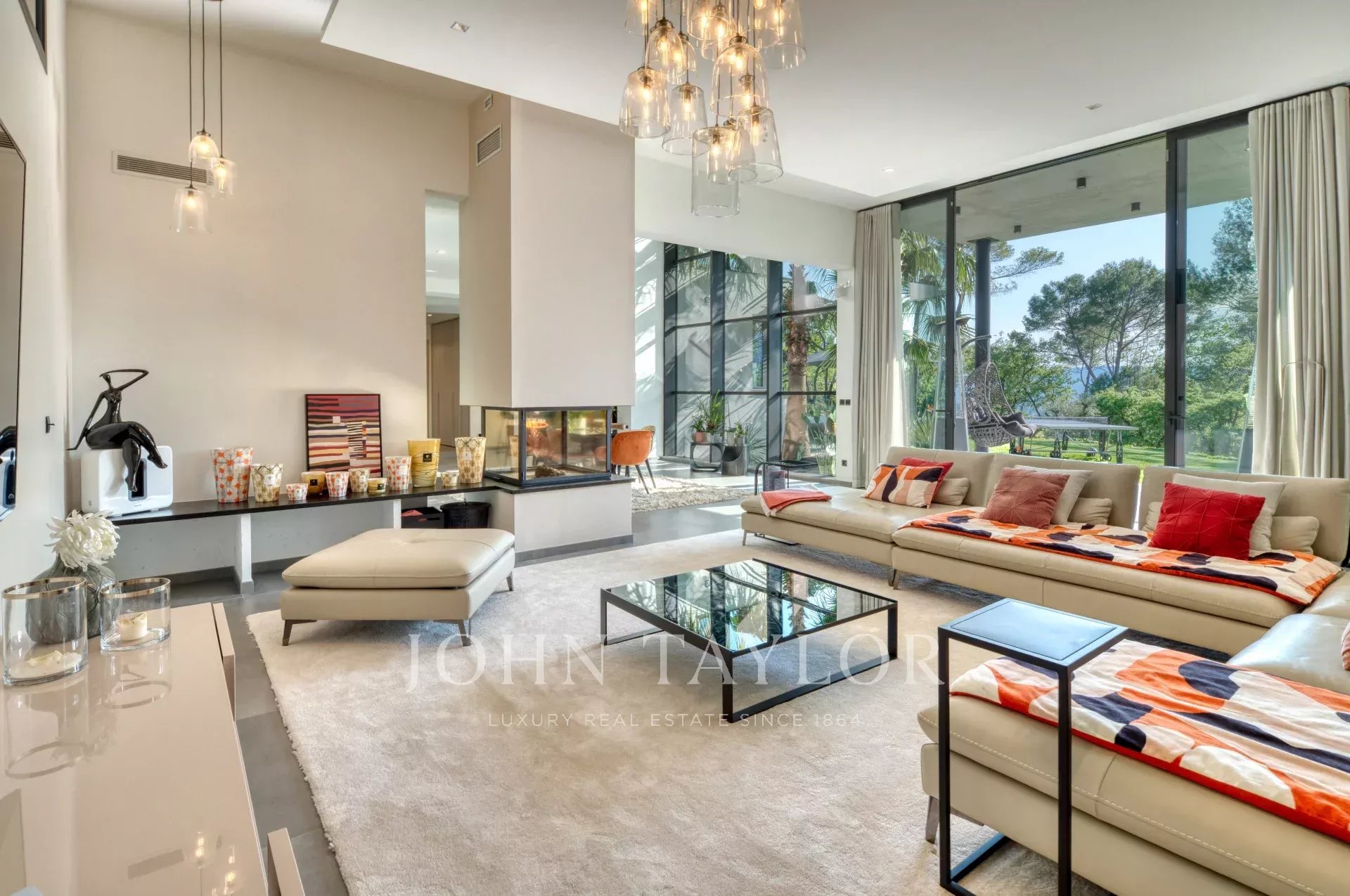 Diese sehr schöne moderne Villa von 430 m² in der Nähe von Mougins und Valbonne verfügt über eine außergewöhnliche Helligkeit dank seiner riesigen Fenster sowie einen atemberaubenden Panoramablick.