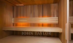 Die Poolebene ist ein Bereich, der der Entspannung und dem Wohlbefinden gewidmet ist, mit einem voll ausgestatteten Fitnessraum, einem Heimkino, einer Sauna und einem Badezimmer.