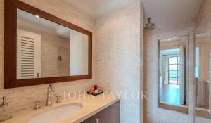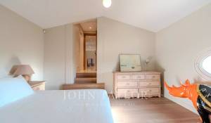 Im Obergeschoss befinden sich vier elegante Schlafzimmer, jedes mit eigenem Badezimmer und WC, die sich zu einer großen Terrasse hin öffnen. Darunter ein Zimmer-Büro, das sich ideal für Telearbeit eignet, und Räume, die eine flexible Anordnung der Schlafplätze (Kingsize- oder Einzelbetten) bieten.