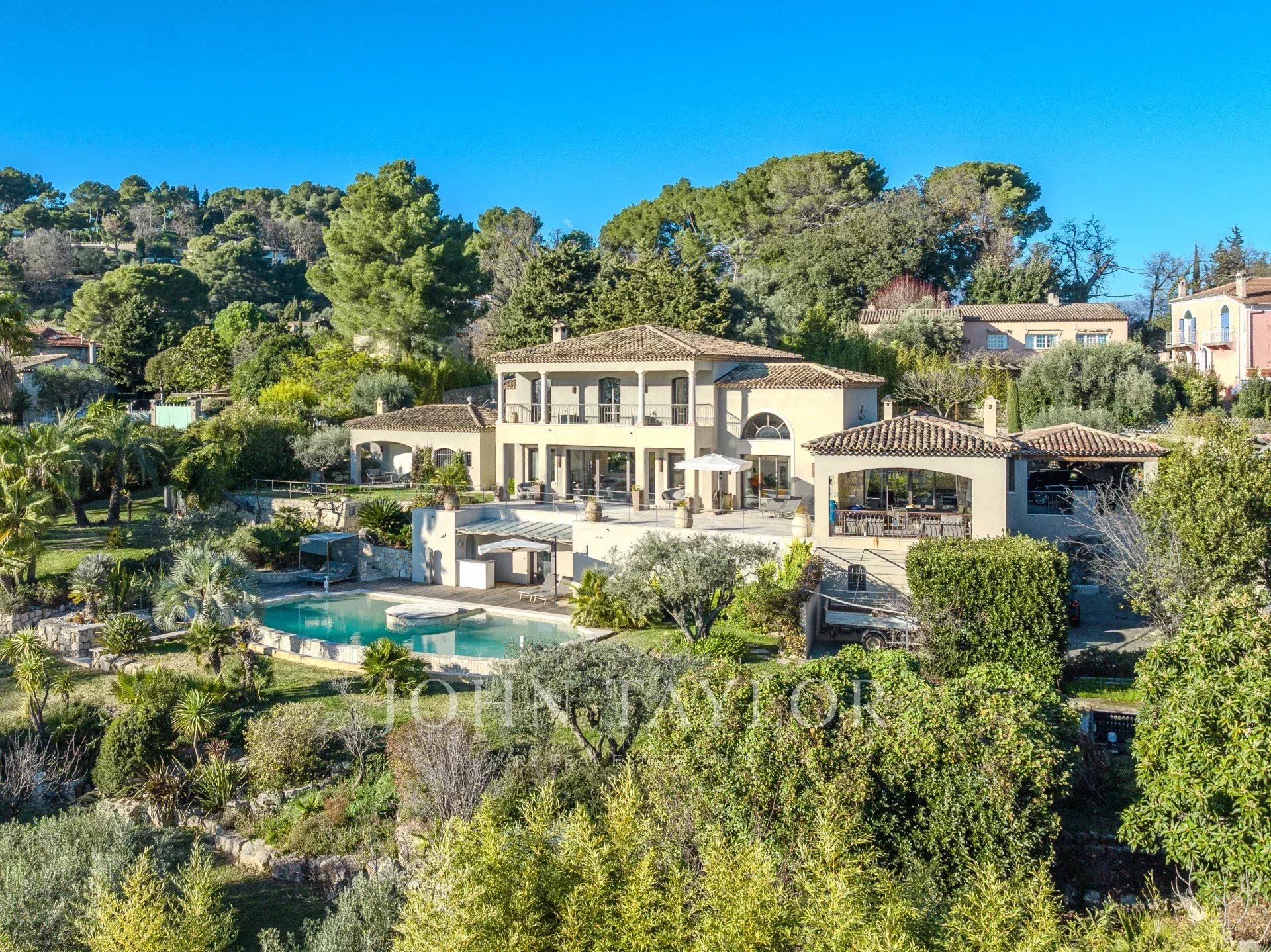 Entdecken Sie diese neue, 415 m² große Villa in einem ruhigen Wohnviertel von Mougins, nur 5 Minuten vom Stadtzentrum entfernt. Eine wahre Oase der Ruhe, die einen atemberaubenden Blick auf das Grün und das Meer bietet und mit luxuriösen Annehmlichkeiten ausgestattet ist.