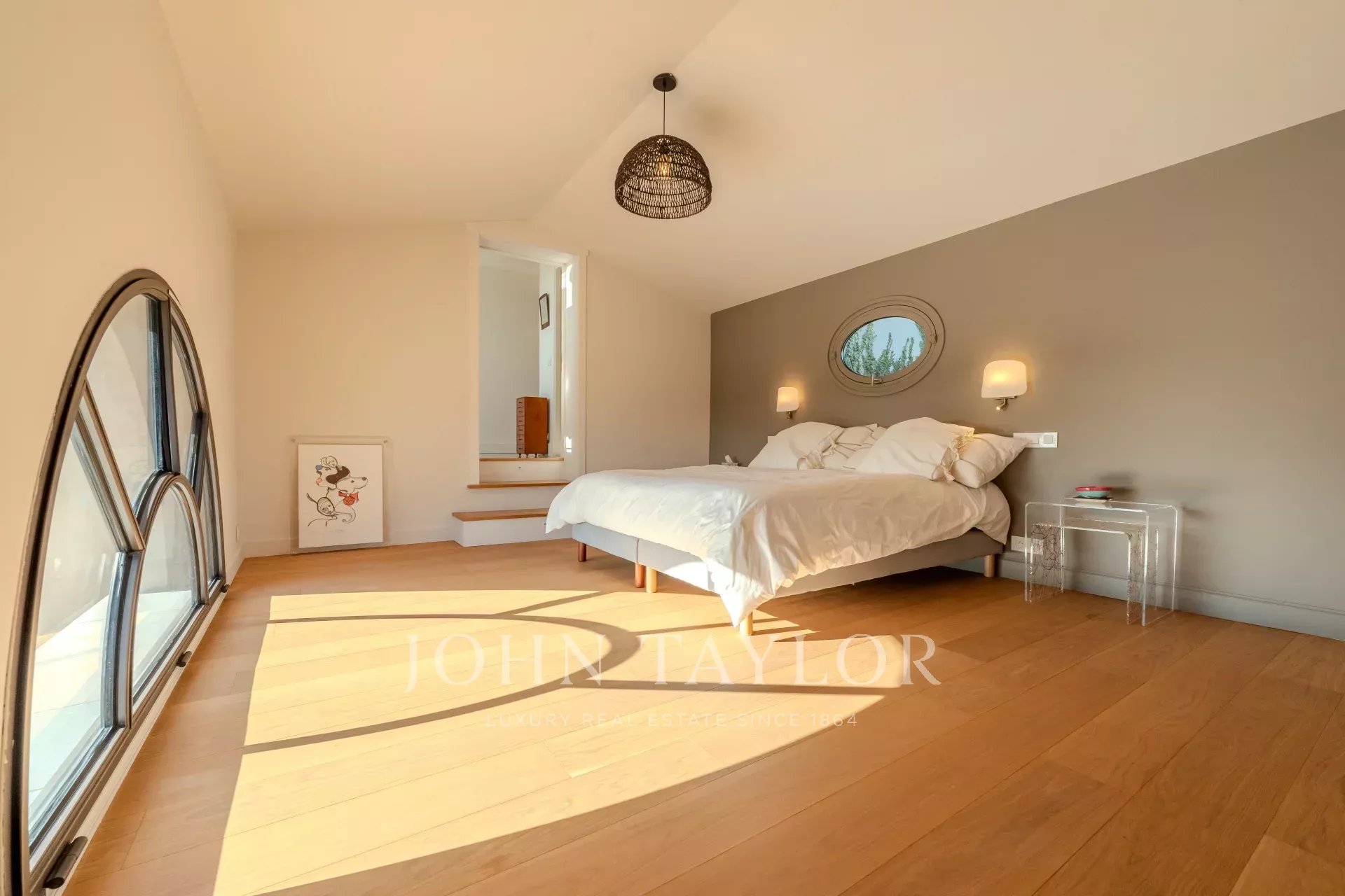 Die Mastersuite im Erdgeschoss ist ein wahres Schmuckkästchen an Komfort mit Kingsize-Bett, doppeltem Ankleidezimmer und angrenzendem Badezimmer (Dusche/WC), alles mit Zugang zu einer privaten Terrasse.