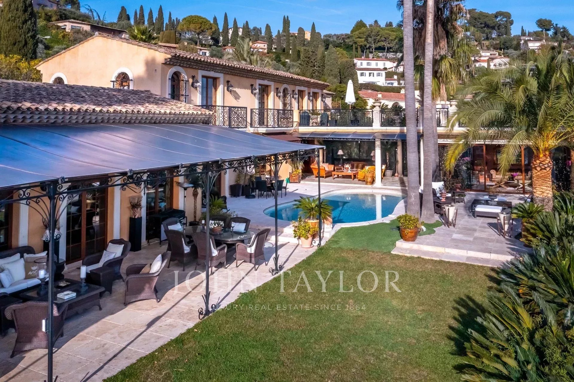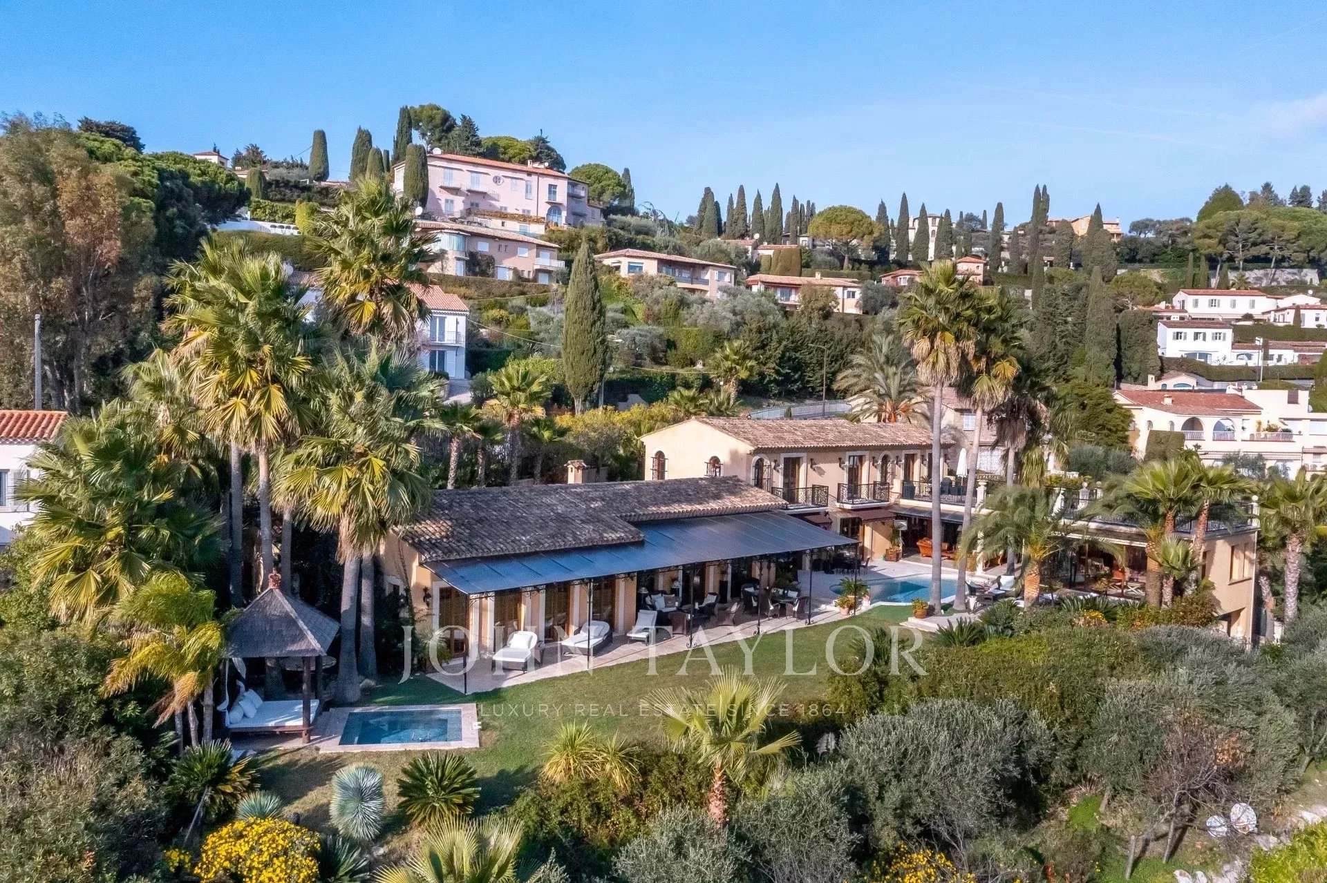 Am Fuße des alten Dorfes Mougins, wunderschönes Anwesen mit Panoramablick auf die Bucht von Cannes, die Lérins-Inseln und das Esterel-Gebirge.