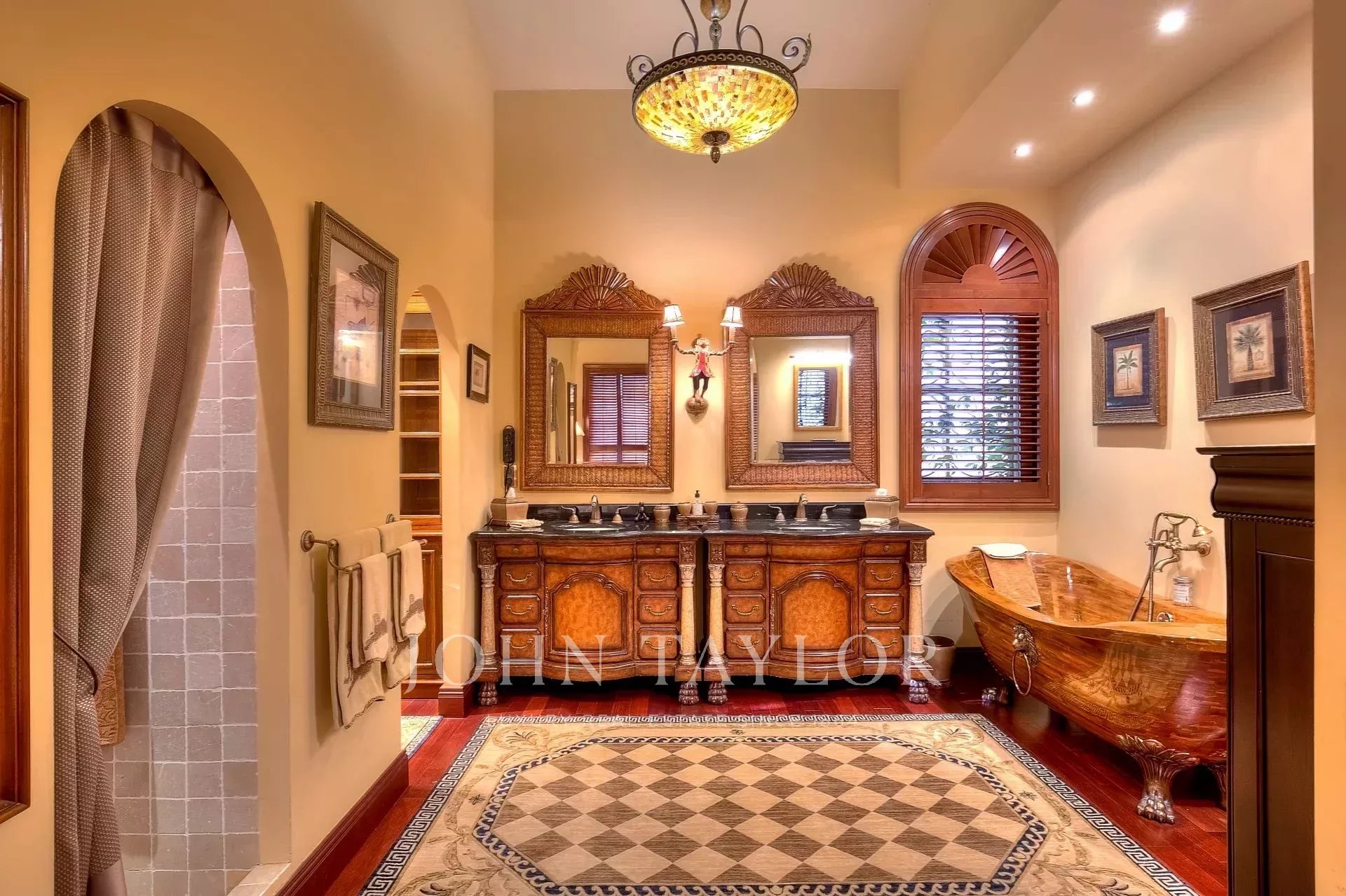 Die Annehmlichkeiten und Außenanlagen bestehen aus einer Garage und zahlreichen Parkplätzen, einem Pool mit Jacuzzi und einem Poolhaus.
