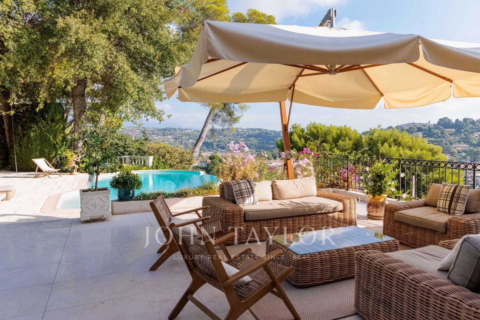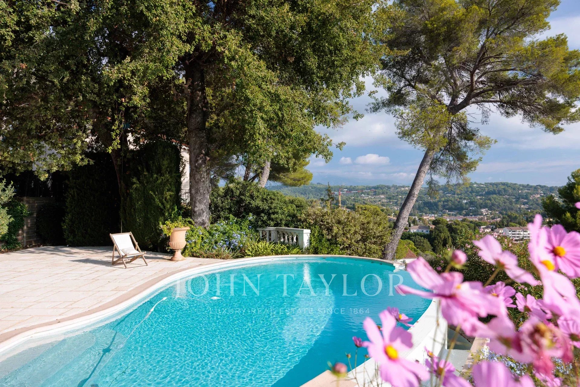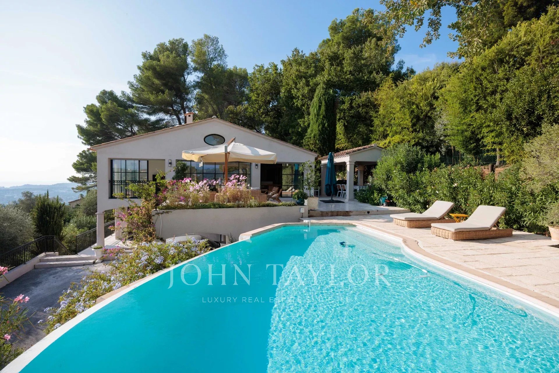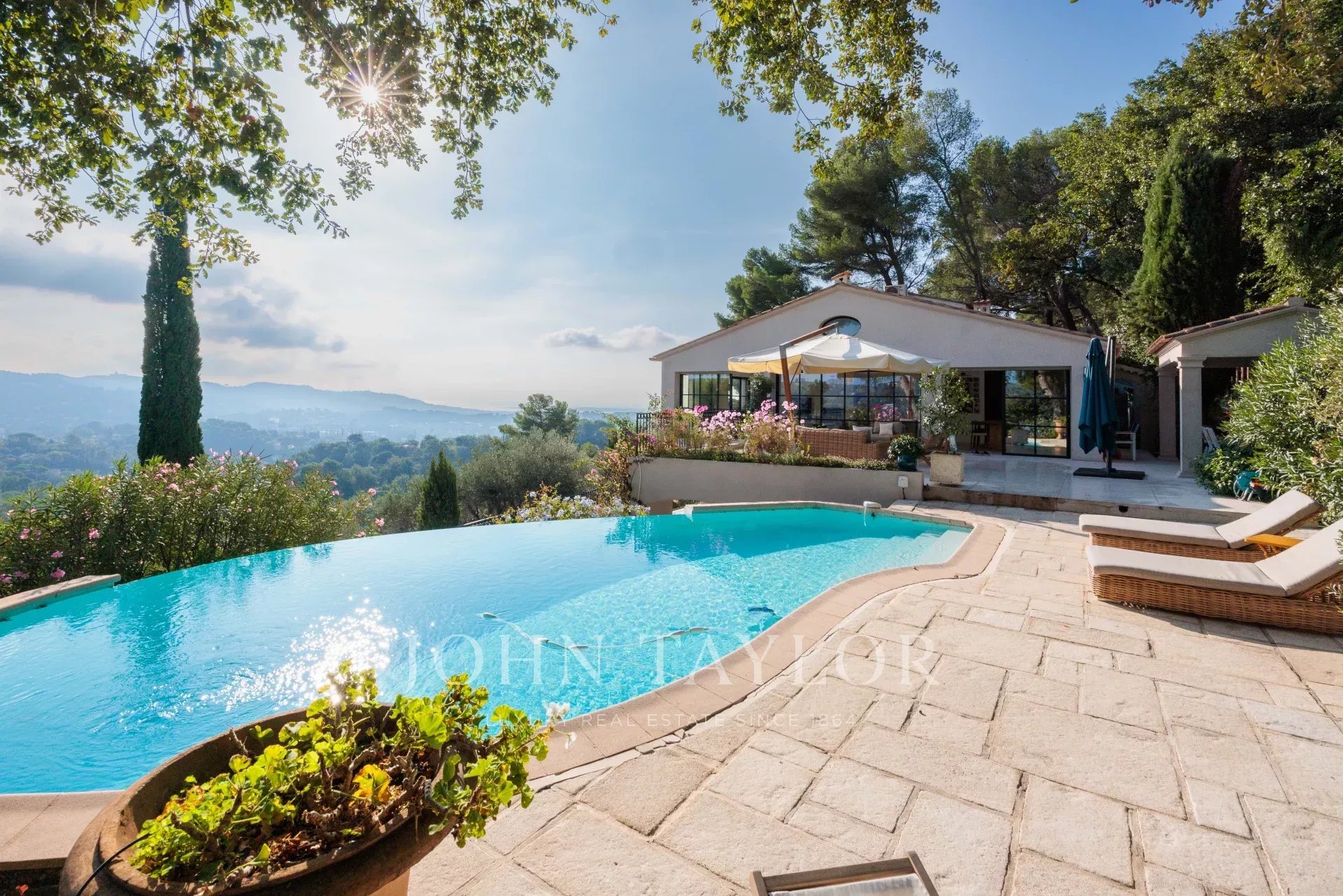 Es bietet einen außergewöhnlichen Panoramablick auf das Meer, das alte Dorf Mougins und die Hügel.