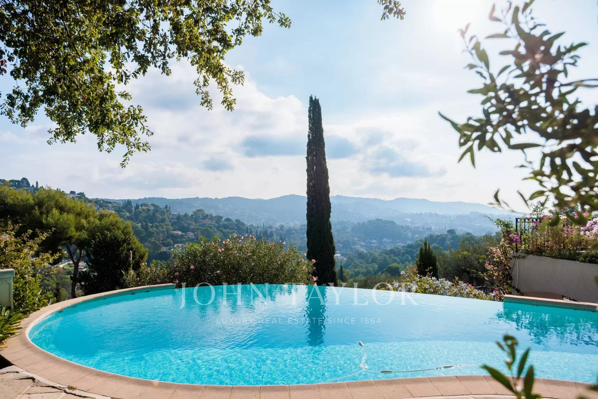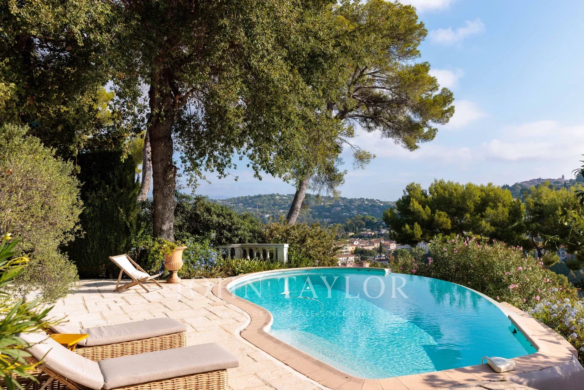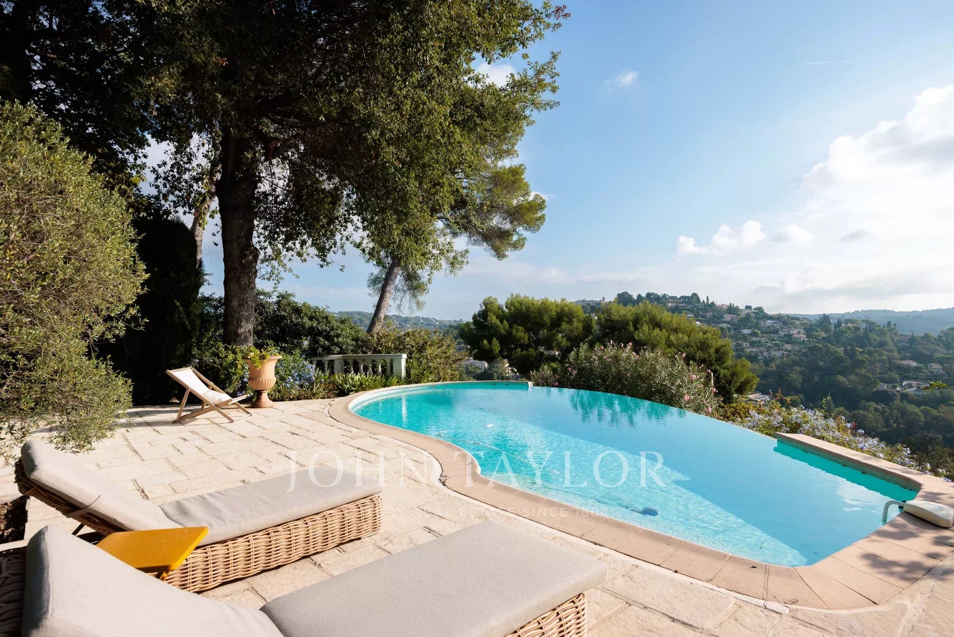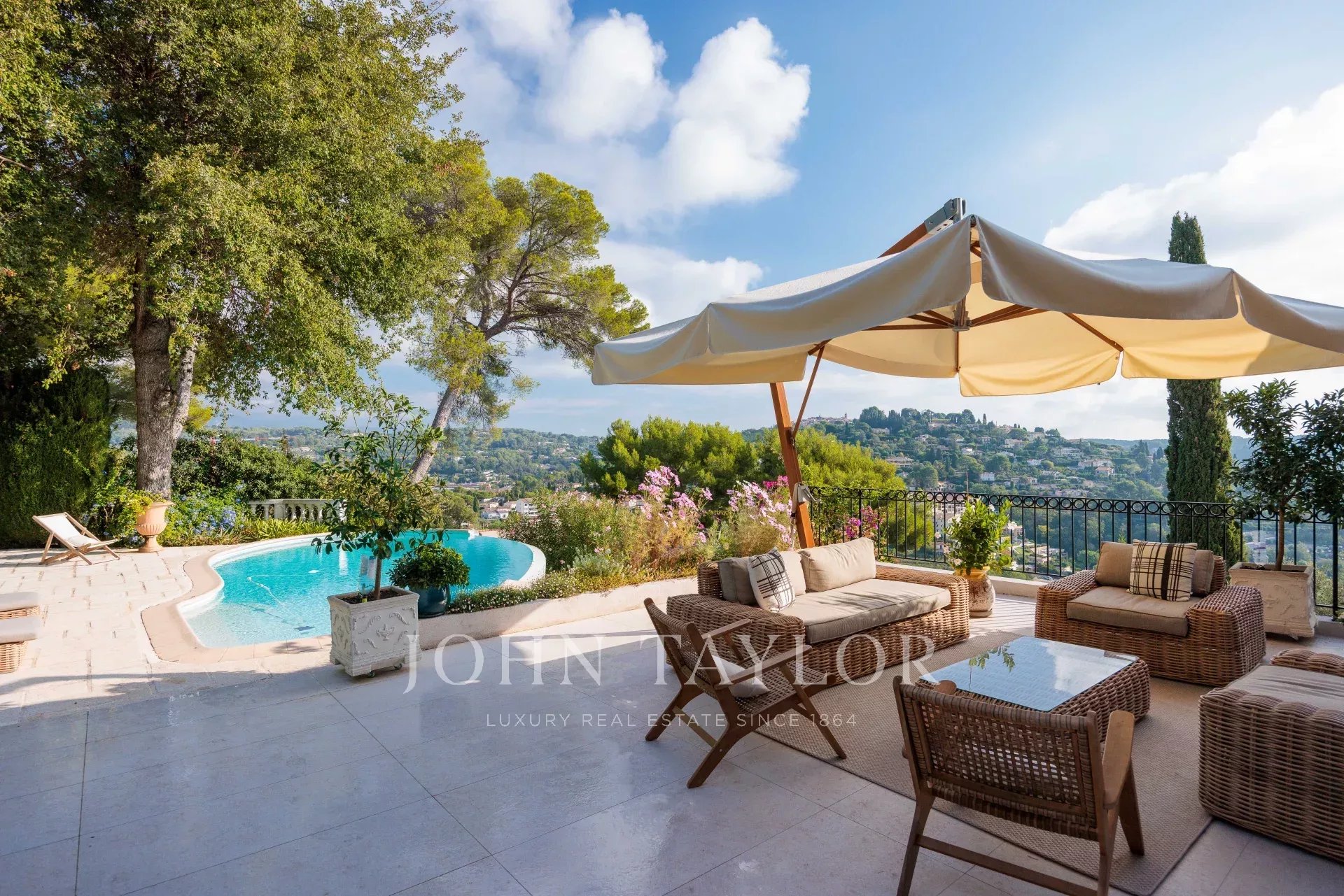 Es bietet einen außergewöhnlichen Panoramablick auf das Meer, das alte Dorf Mougins und die Hügel.