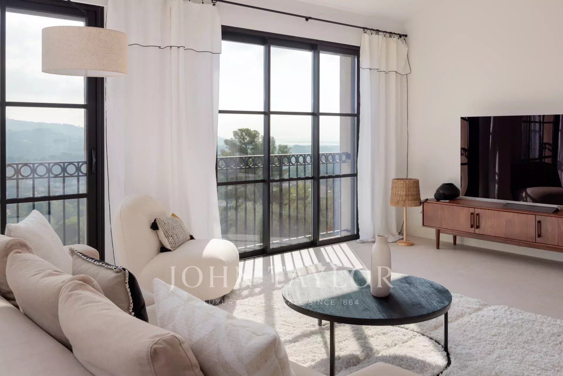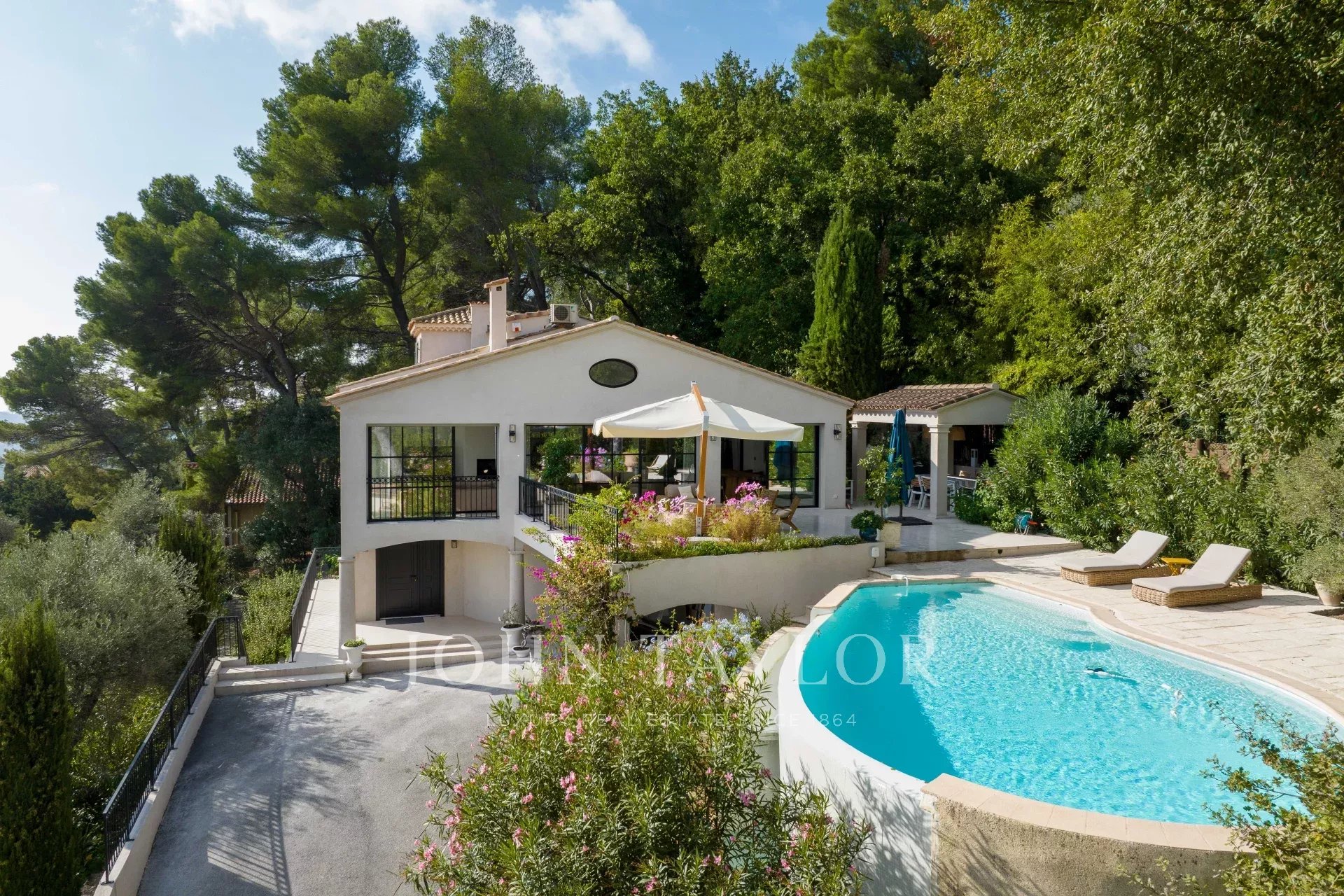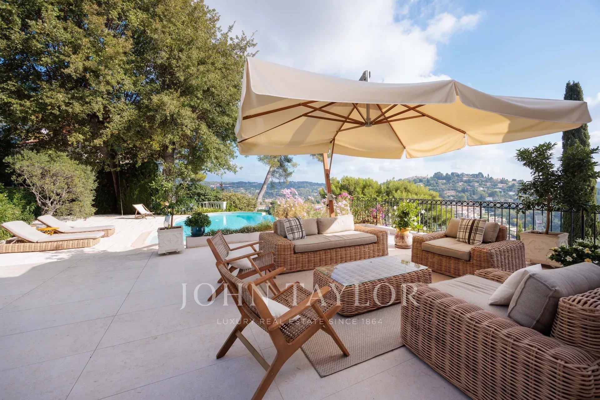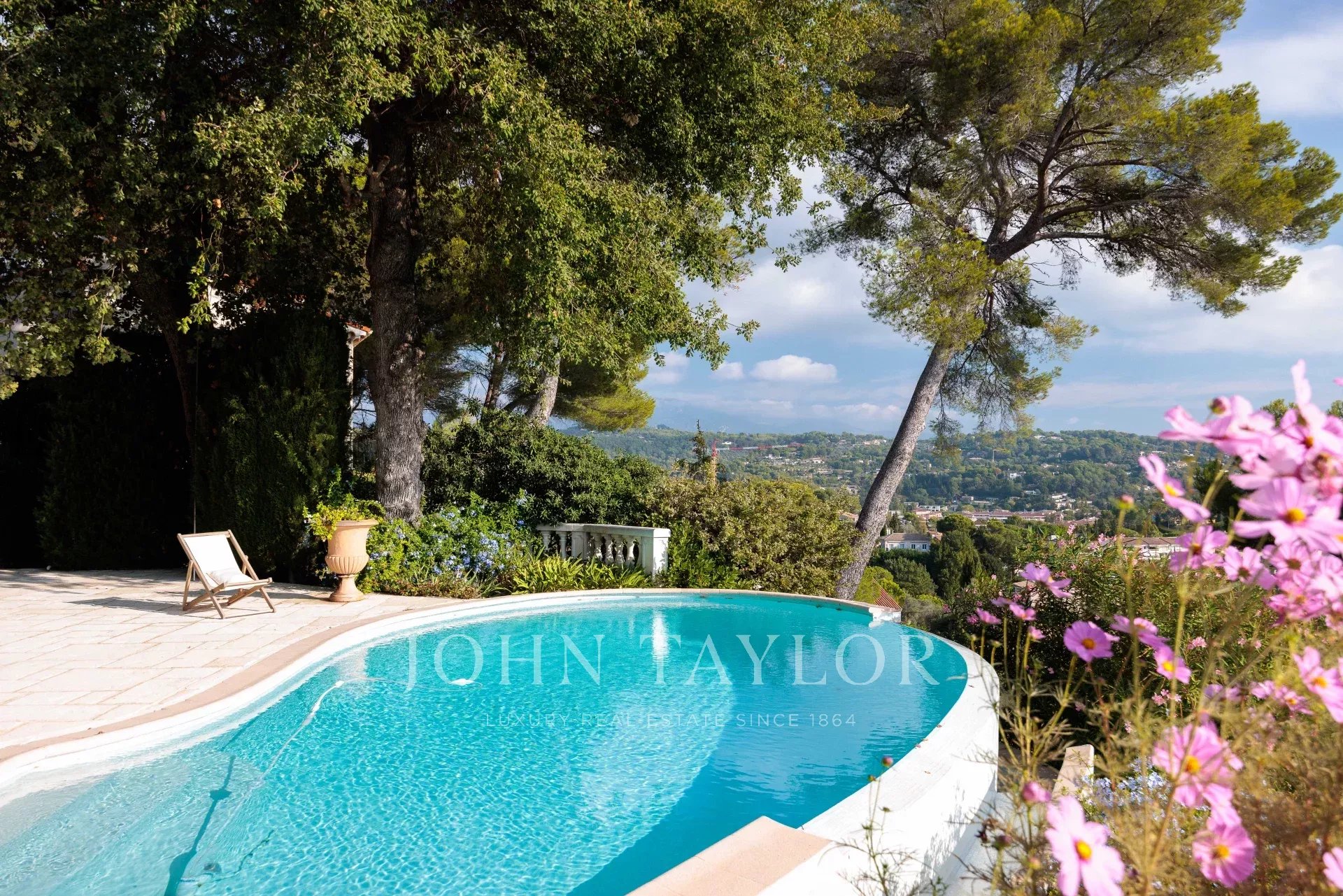 Es bietet einen außergewöhnlichen Panoramablick auf das Meer, das alte Dorf Mougins und die Hügel.