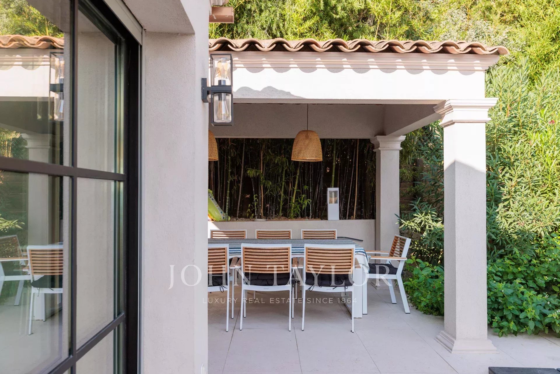 Dieses charmante Haus wurde vollständig und geschmackvoll renoviert und befindet sich in einer ruhigen Wohngegend, nur 10 Gehminuten von Val de Mougins entfernt.
