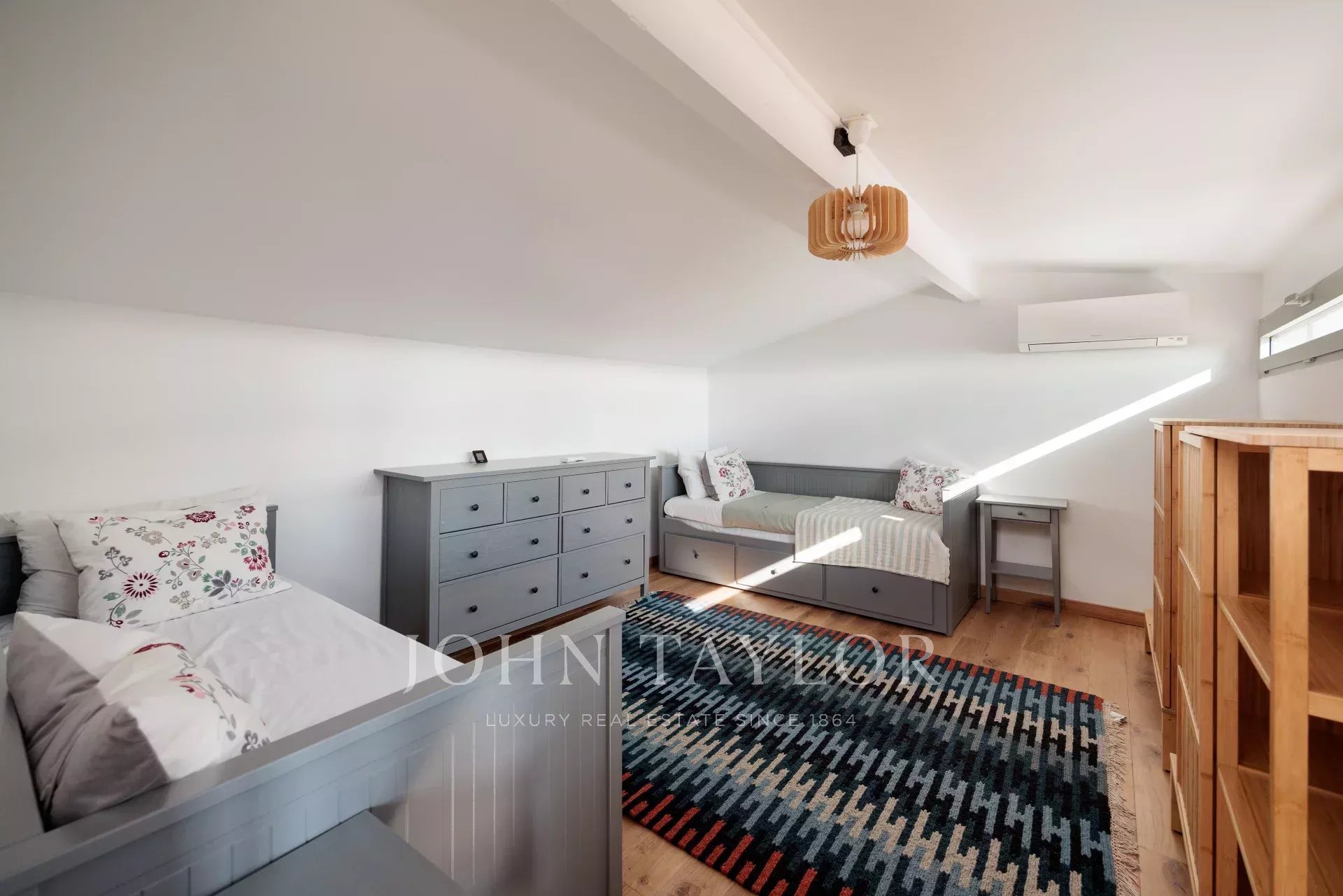 1 Kinderzimmer im Obergeschoss, ausgestattet mit 2 Einzelbetten.
