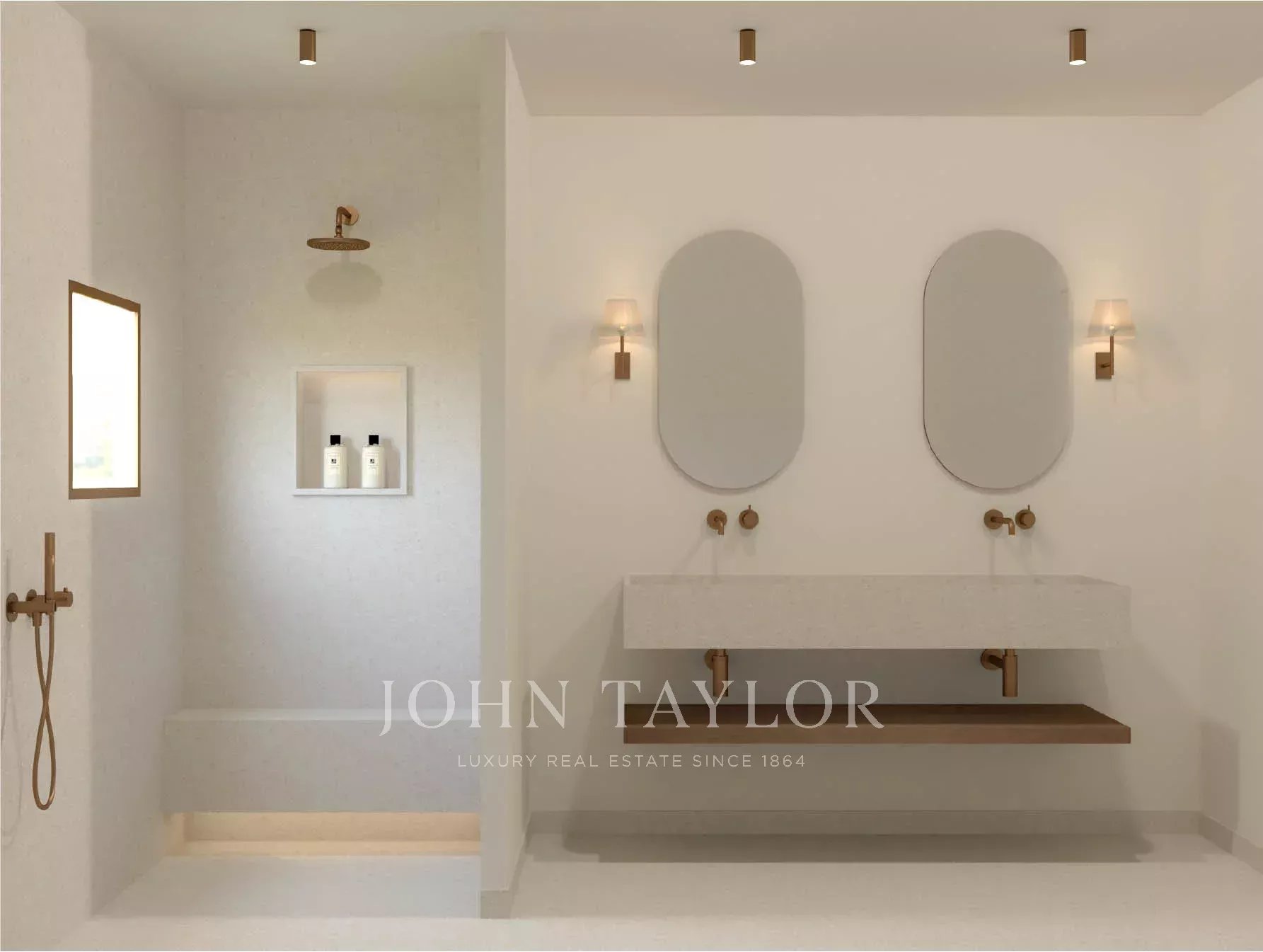 Diese außergewöhnliche Immobilie wurde mit Eleganz und Komfort entworfen und bietet ein perfektes Gleichgewicht zwischen Luxus, natürlichen Materialien und modernem Lebensstil.