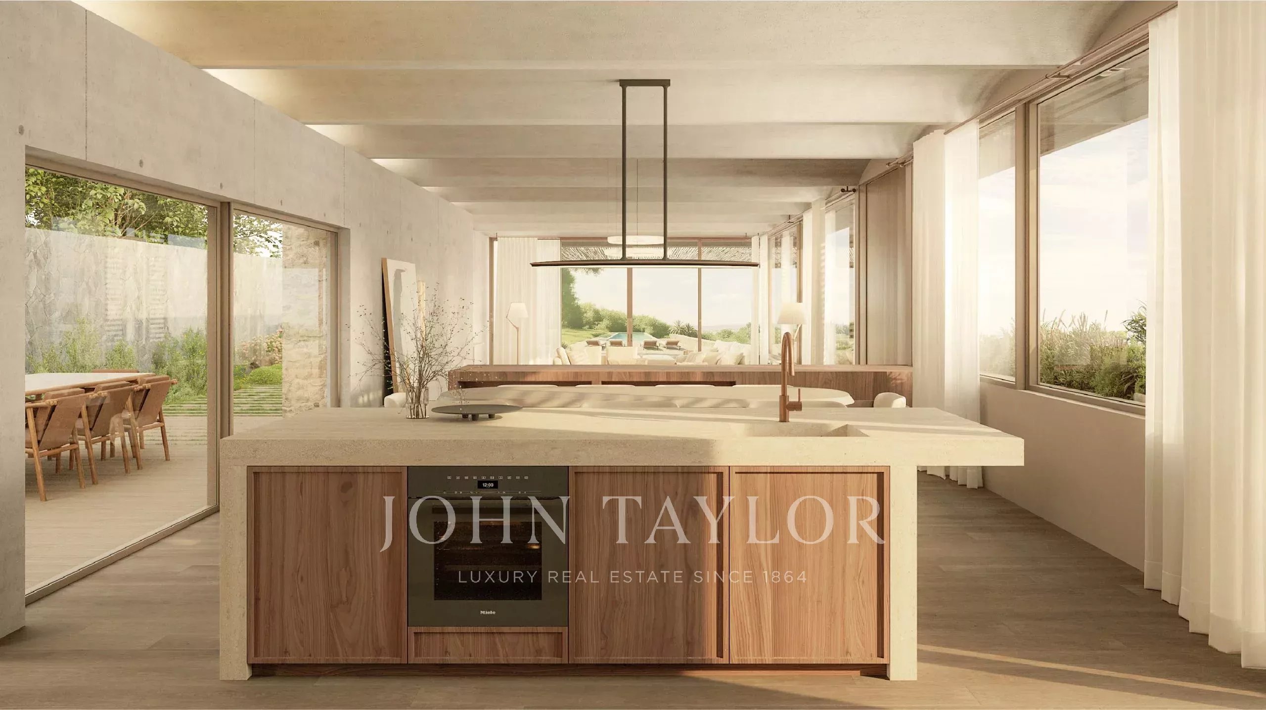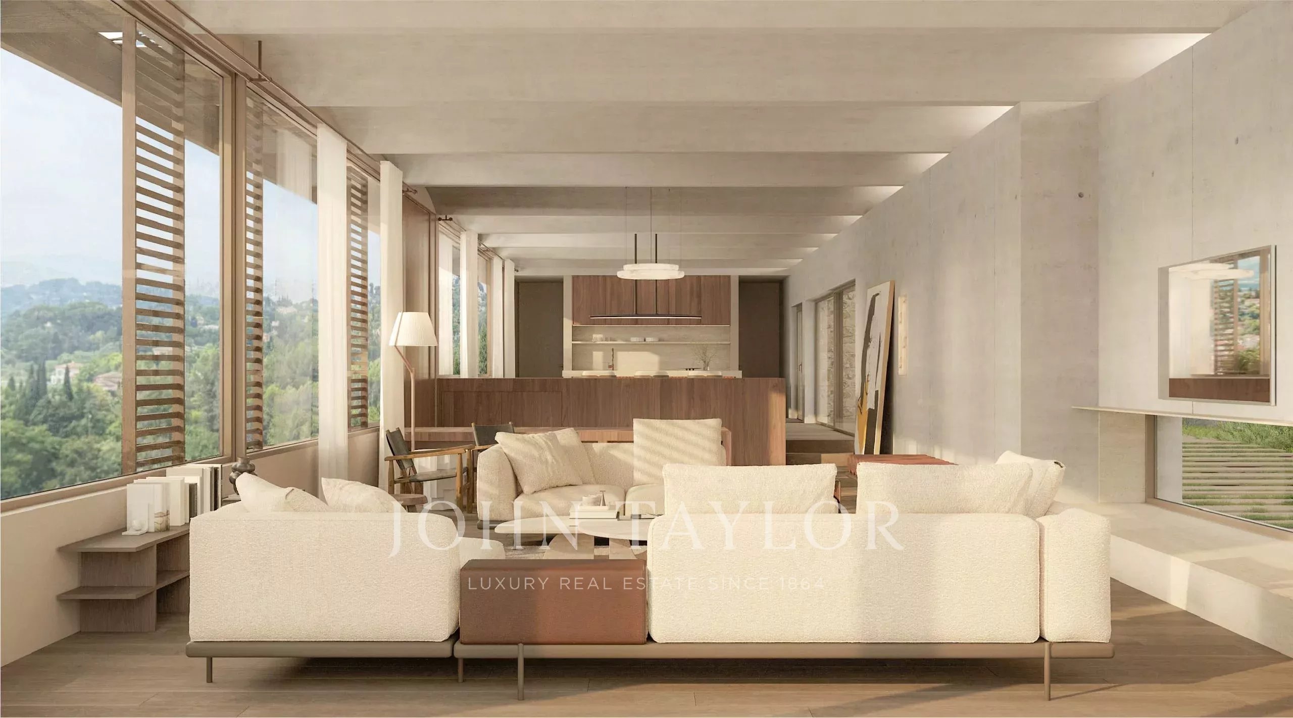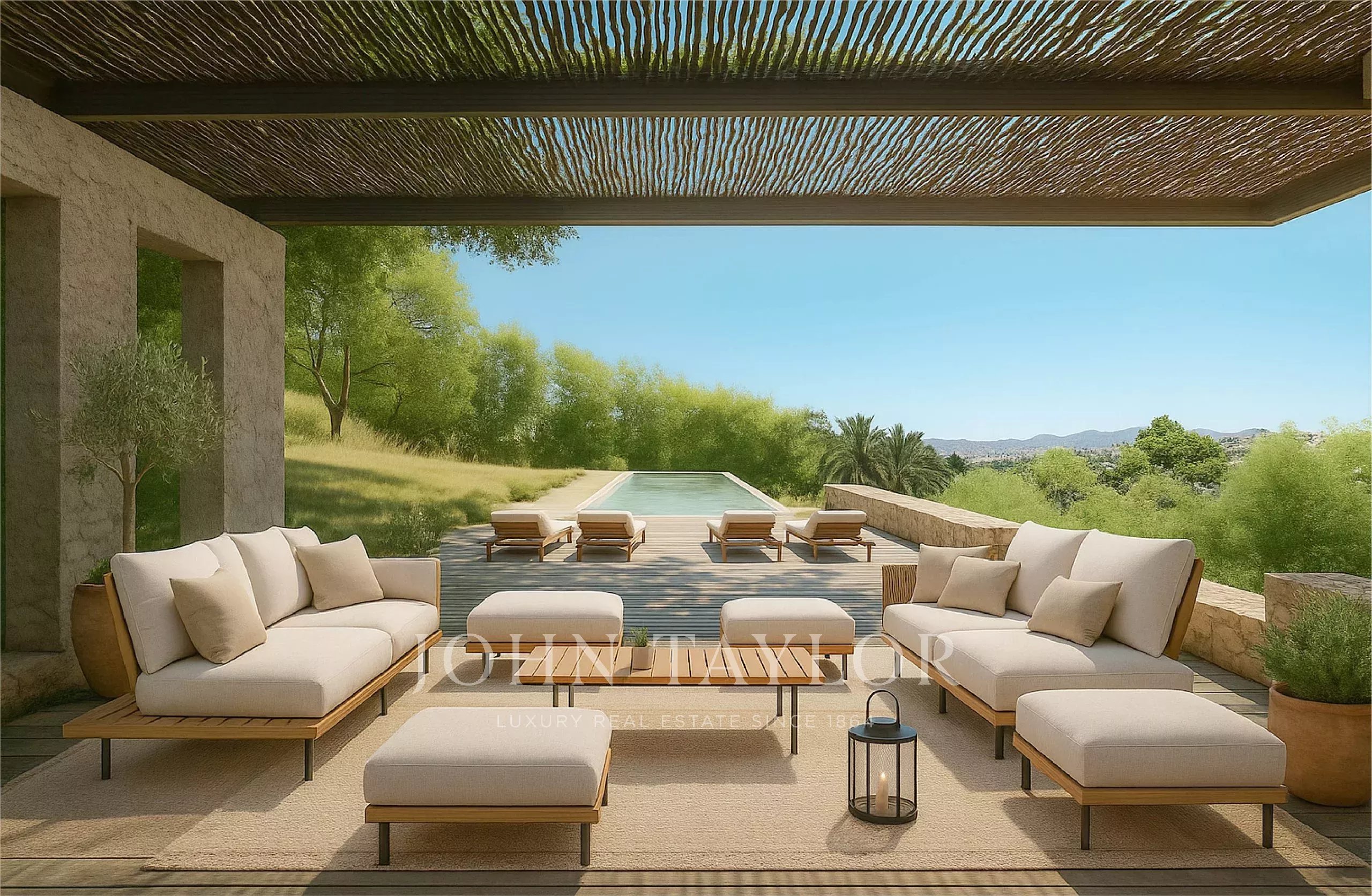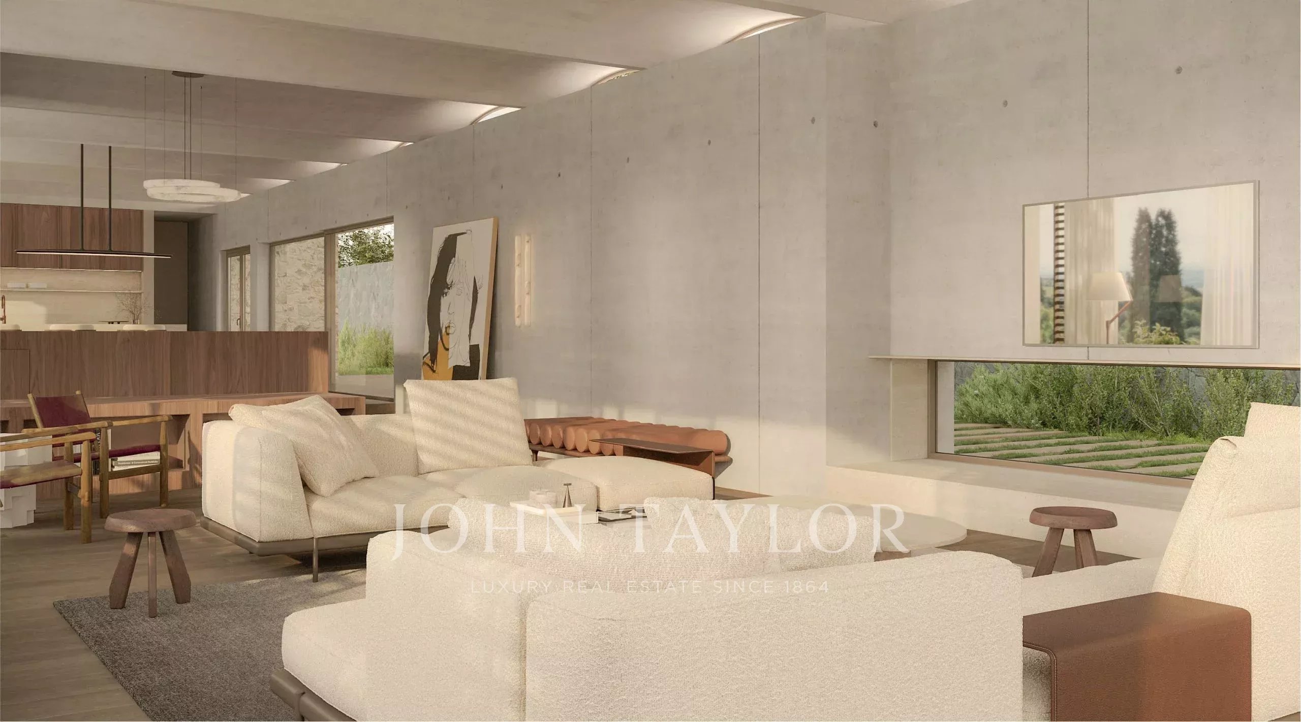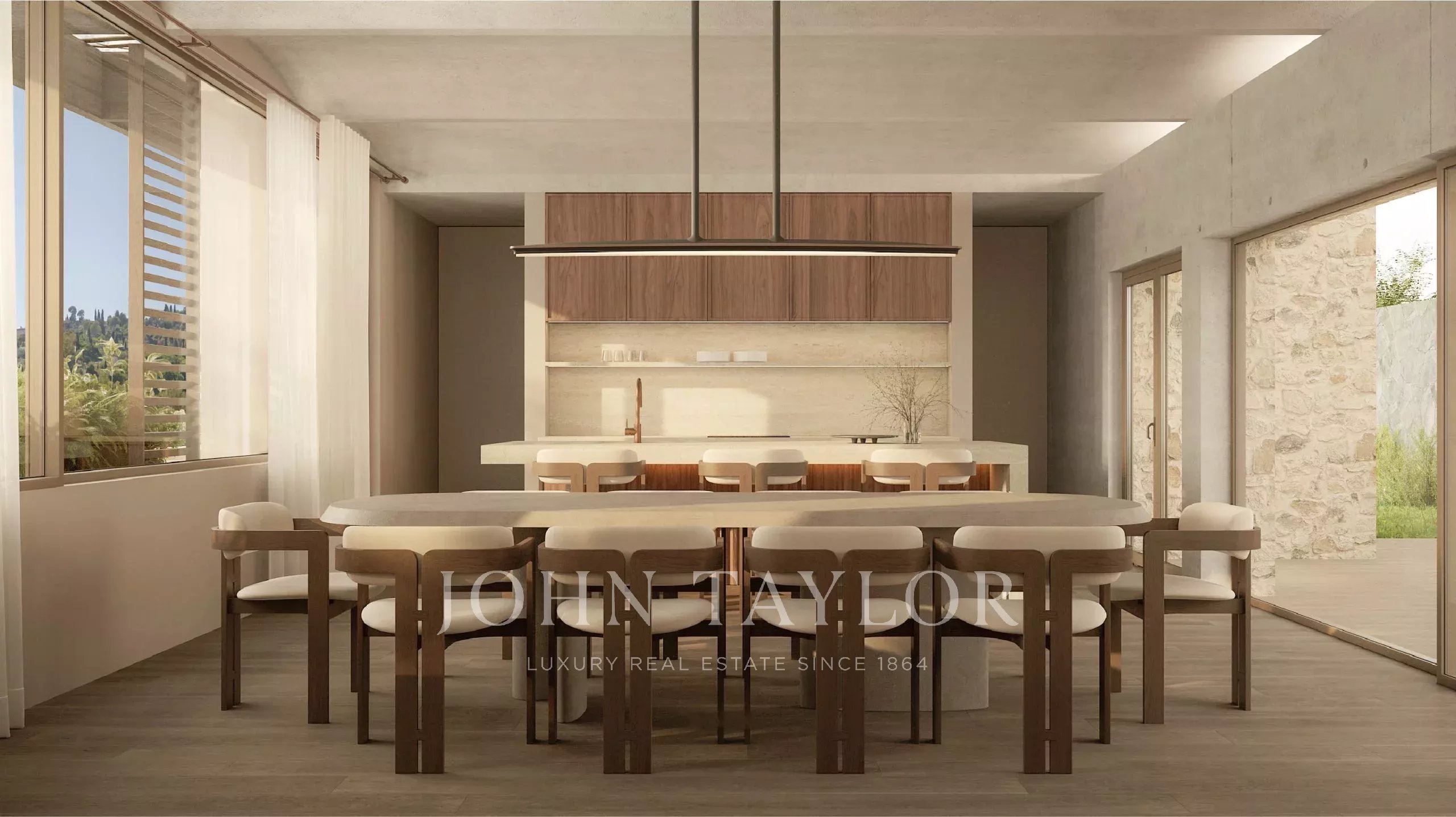 Eine zeitgenössische Villa im Bau, ideal gelegen in einer prestigeträchtigen Lage, nur wenige Schritte vom alten Dorf Mougins und dem glamourösen Cannes entfernt.