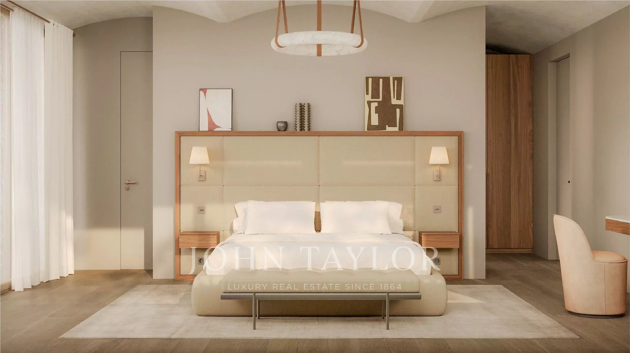 50 m² große Mastersuite mit Terrasse, Ankleidezimmer, Bad/Dusche und WC.