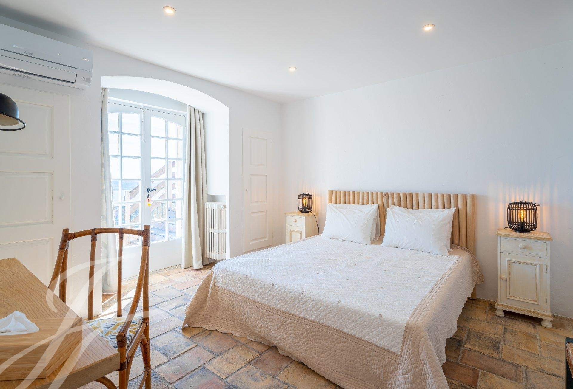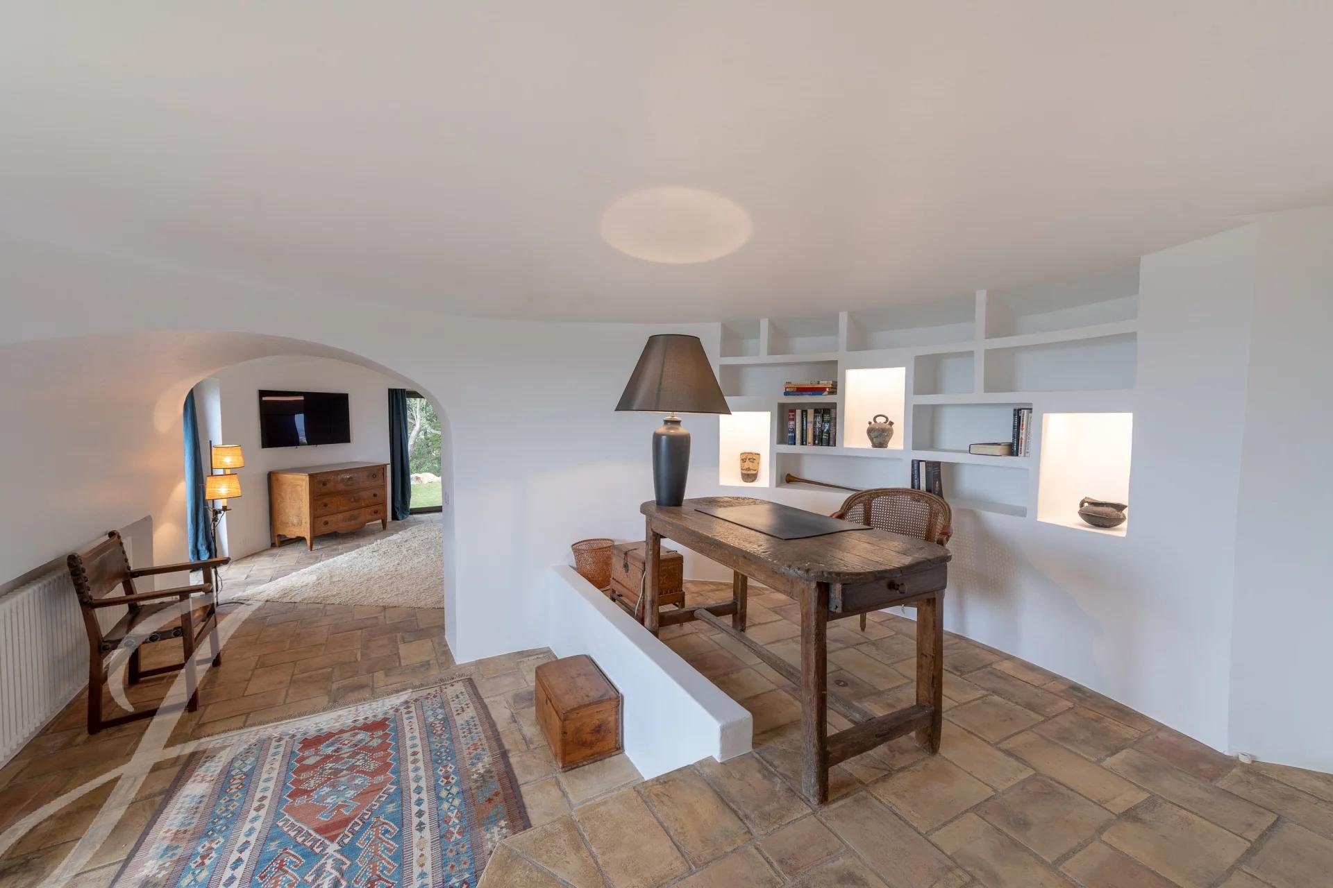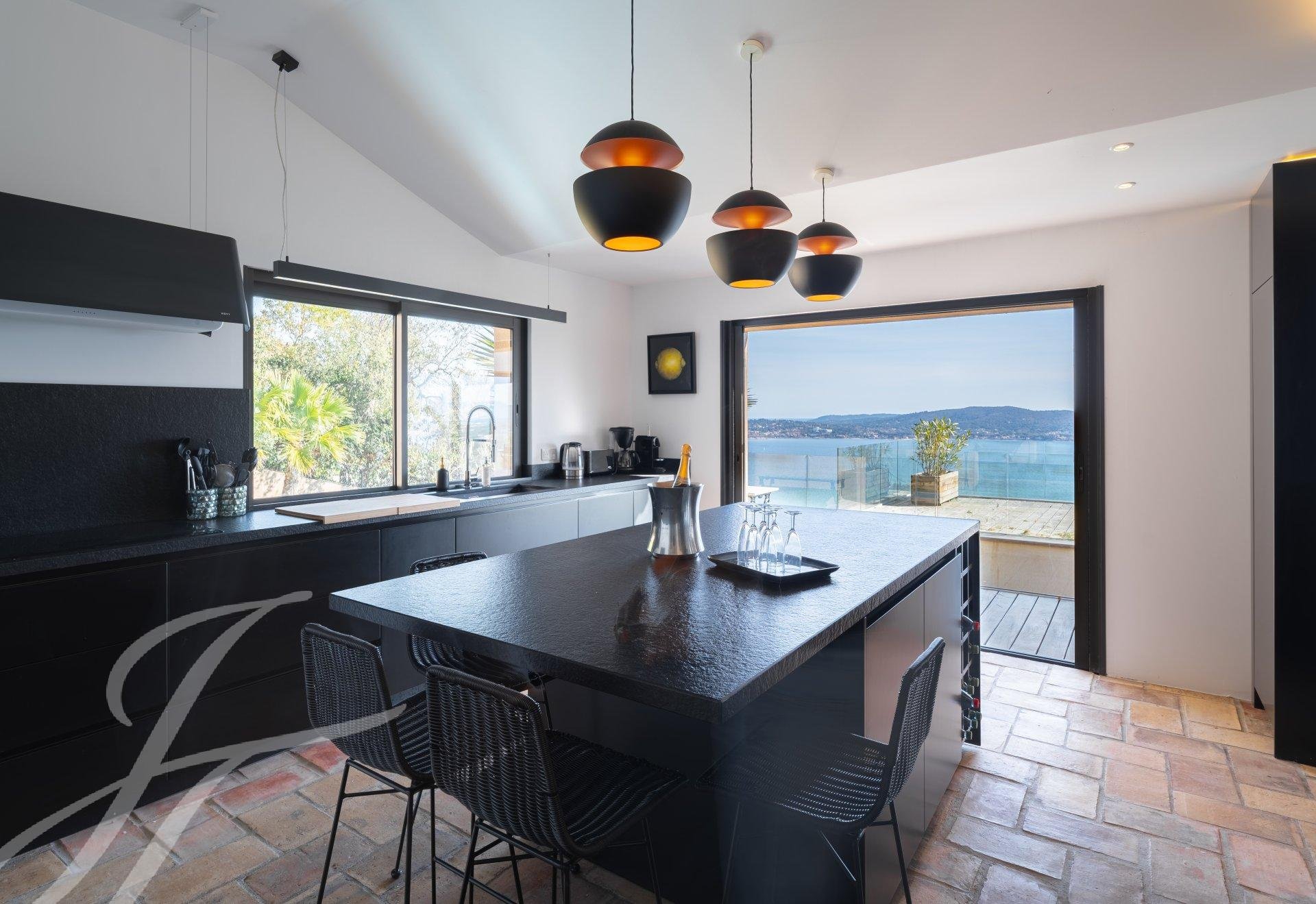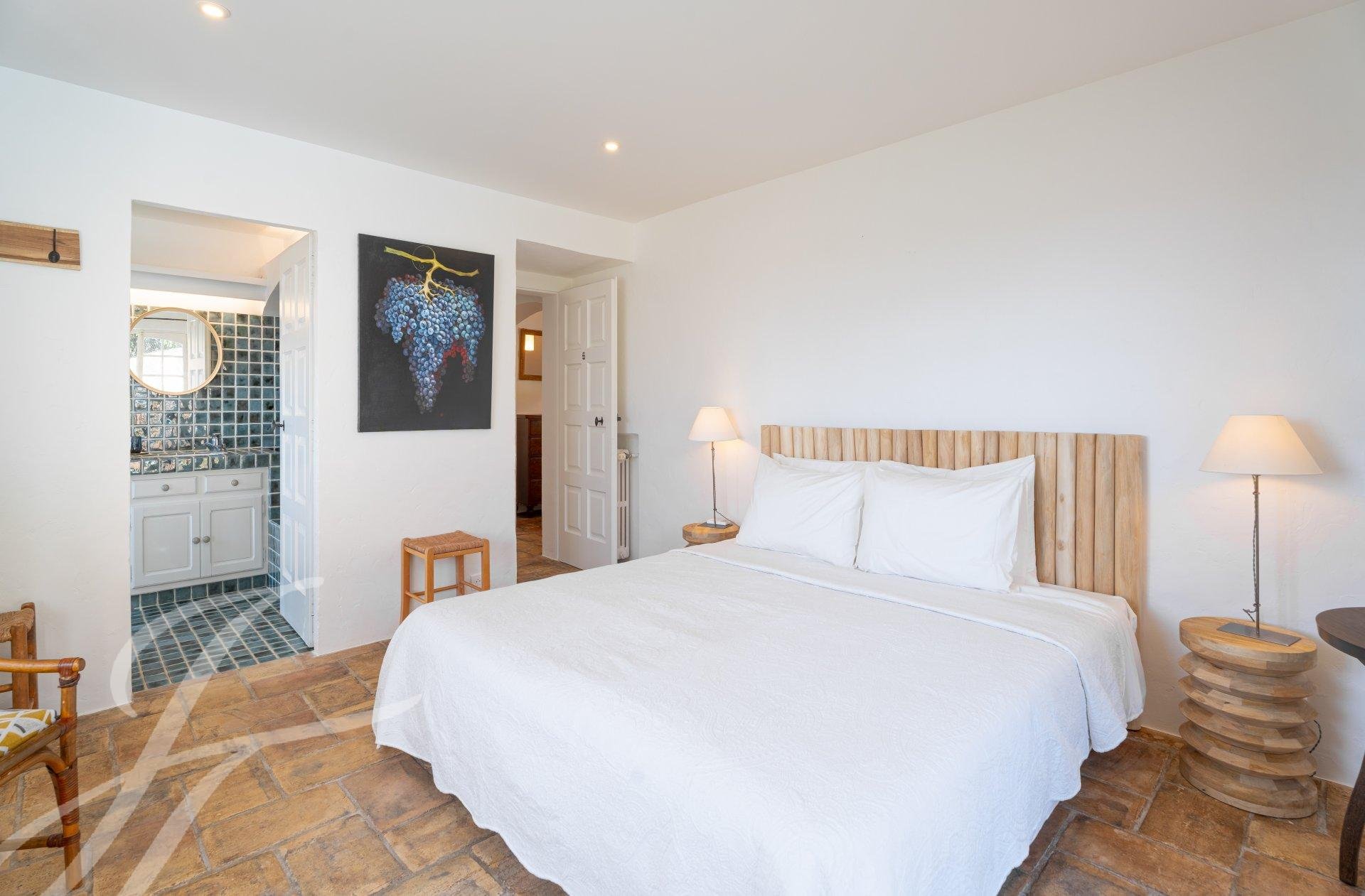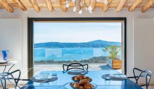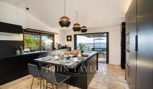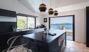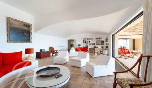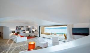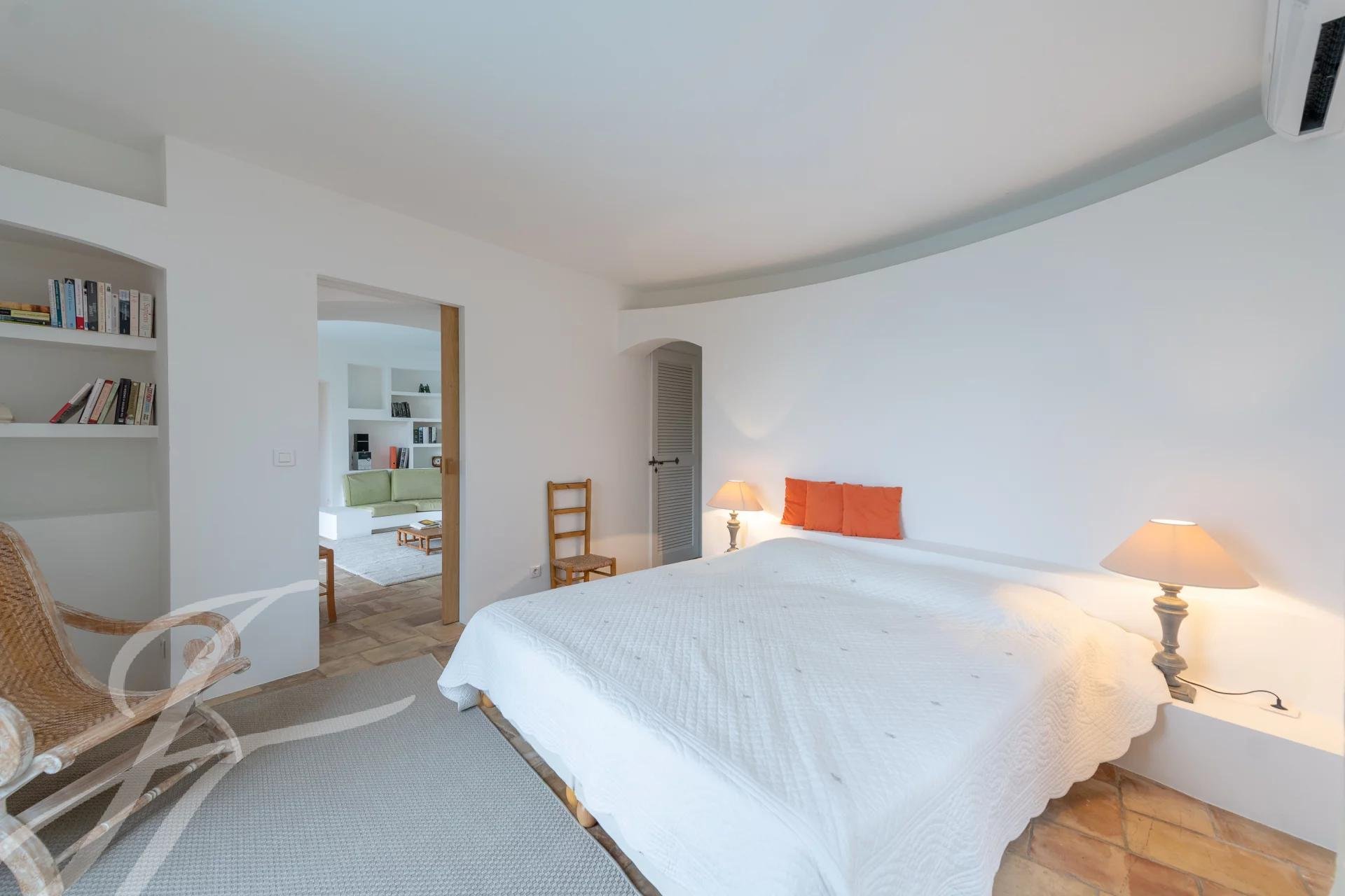 Die 660 m² große Innenfläche wurde von einer Innenarchitektin bis ins kleinste Detail durchdacht und bietet eine einzigartige und gepflegte Dekoration, deren Eleganz durch die fast durchgängige Verwendung von Weiß symbolisiert wird und von architektonischen Entscheidungen wie dem erhabenen Wohnzimmer und dem Master-Schlafzimmer mit abgerundeten Formen und einem außergewöhnlichen Postkartenblick auf den gesamten Golf von Saint-Tropez unterbrochen wird.