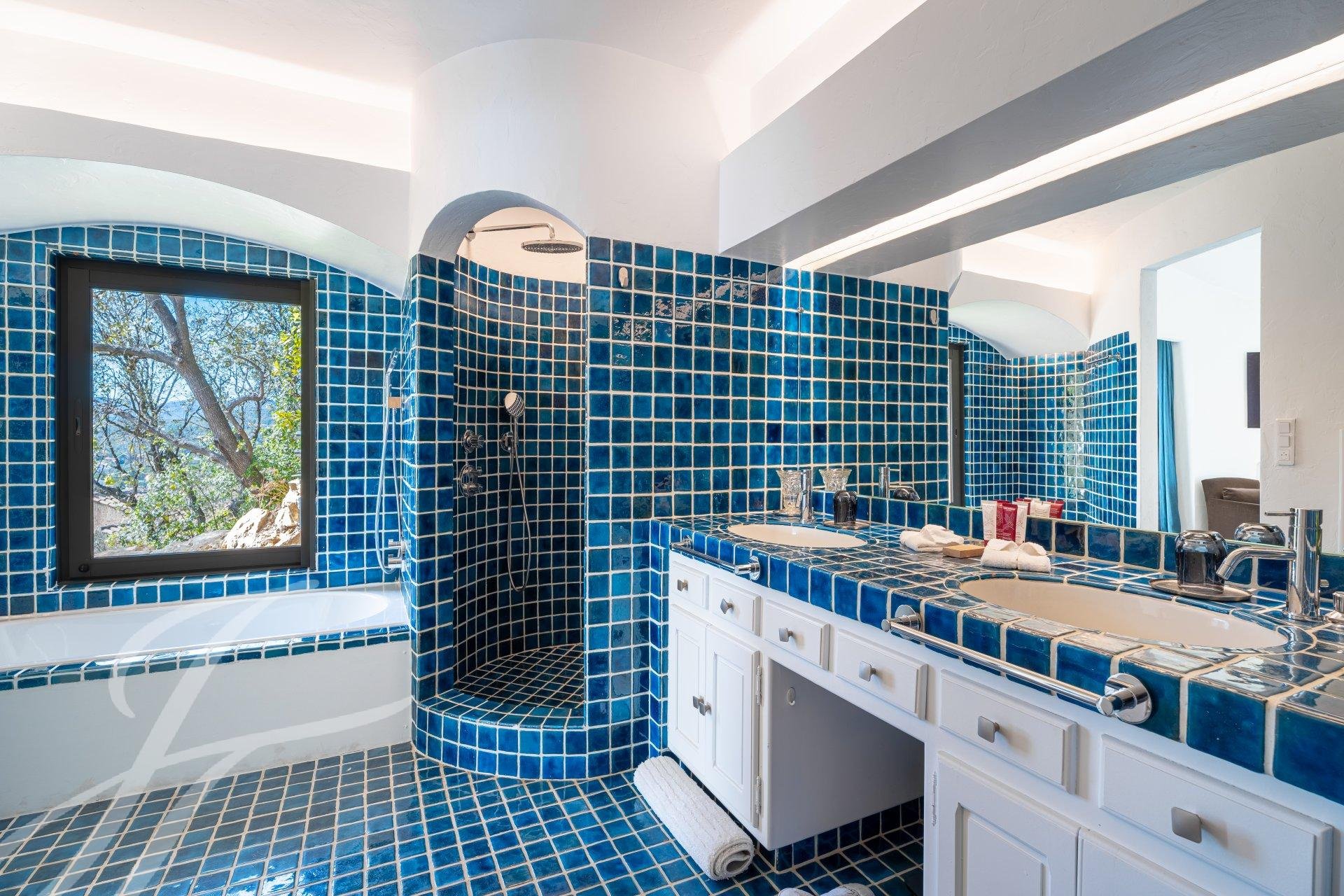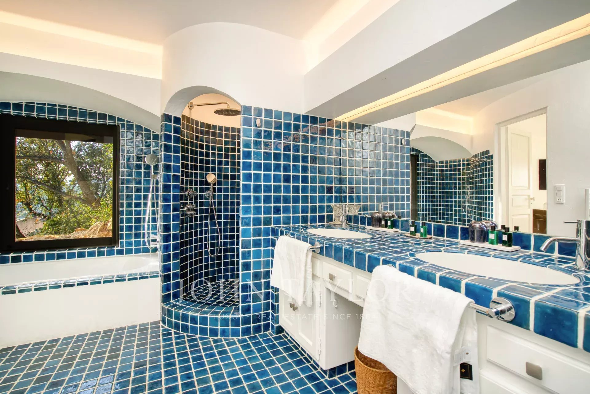 Die atemberaubende Aussicht ist von jedem Bereich der Villa aus zu genießen, aber es gibt auch zahlreiche Terrassen und intime, schattige Ecken, die auf das Mittelmeer blicken und für faule Tage und festliche Abende sorgen. Ein Jacuzzi auf der über 160 m² großen Hauptterrasse bietet einen einzigartigen Moment der Entspannung.