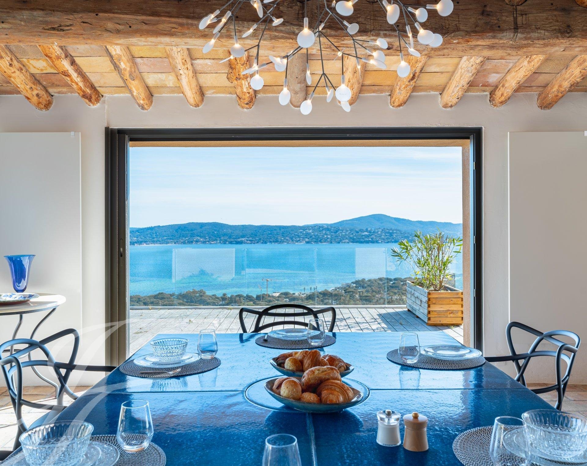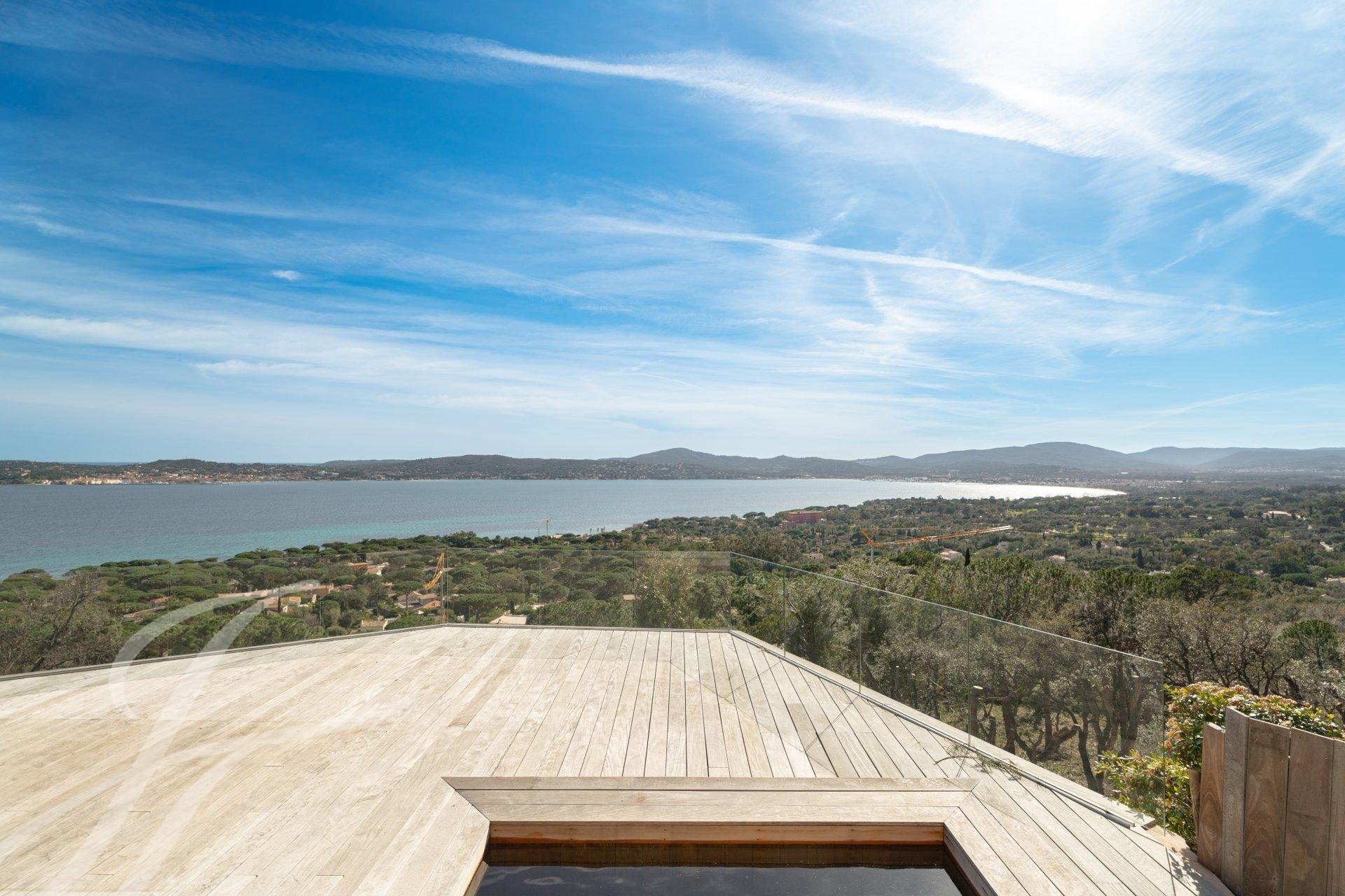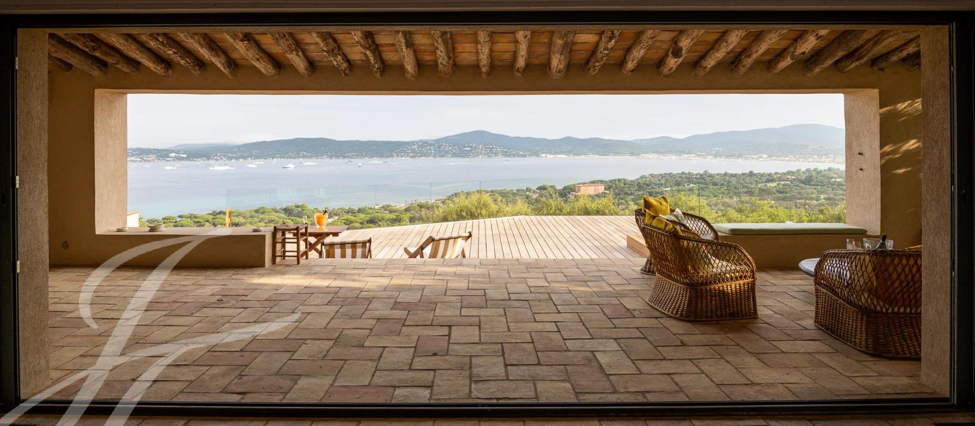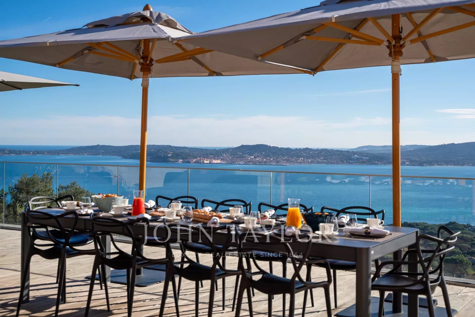 Die Villa überblickt den gesamten Golf von Saint-Tropez und enthüllt einen atemberaubenden Panoramablick auf das Meer, die umliegenden Hügel und das legendäre Dorf Saint-Tropez.