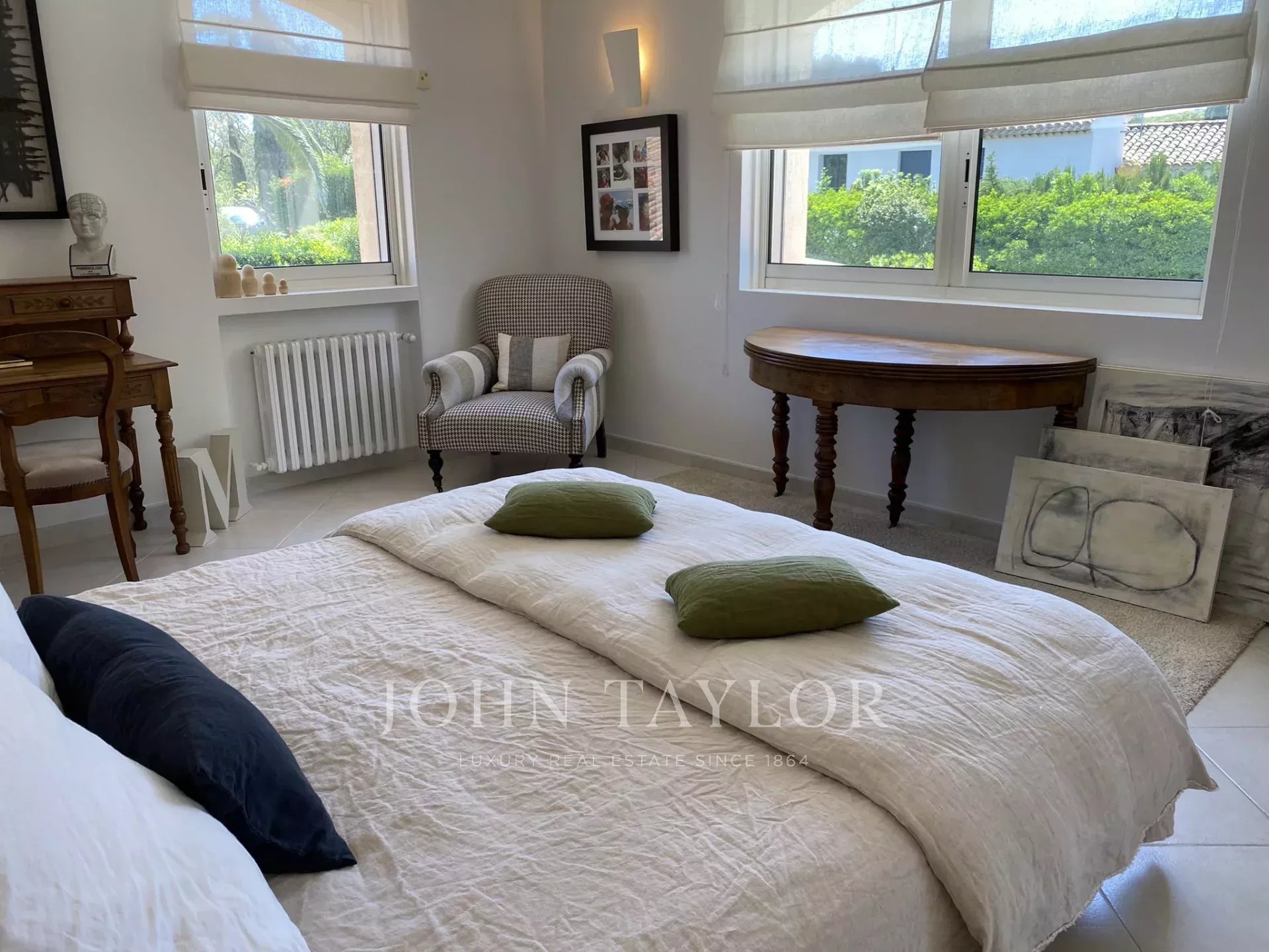 - Ein Hauptschlafzimmer mit Ankleide/Arbeitszimmer und komplettem Badezimmer.
